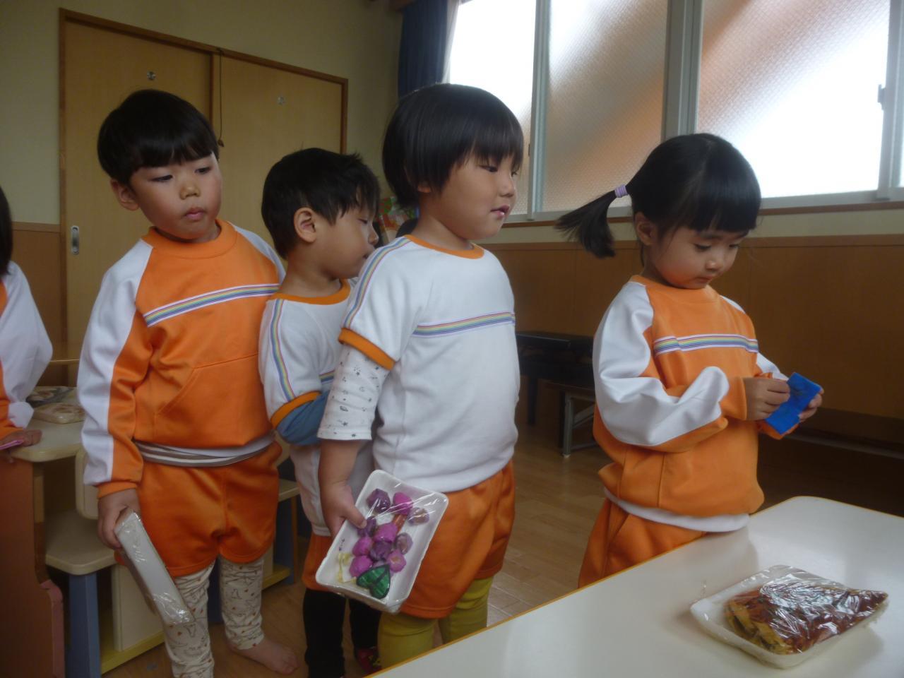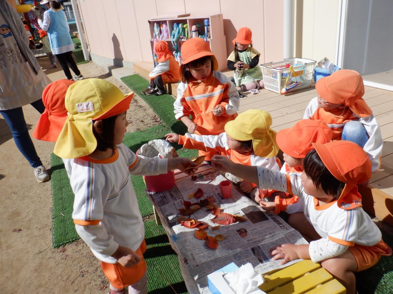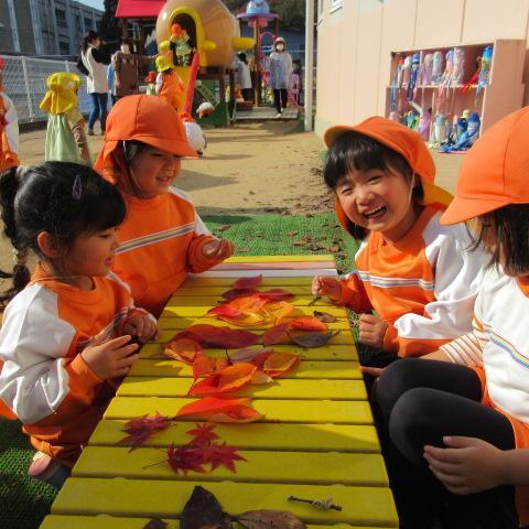 寒さに負けず、毎日元気に過ごしているつきぐみさん🙂秋には園庭の落ち葉でお店屋さんごっこをしていました🍂