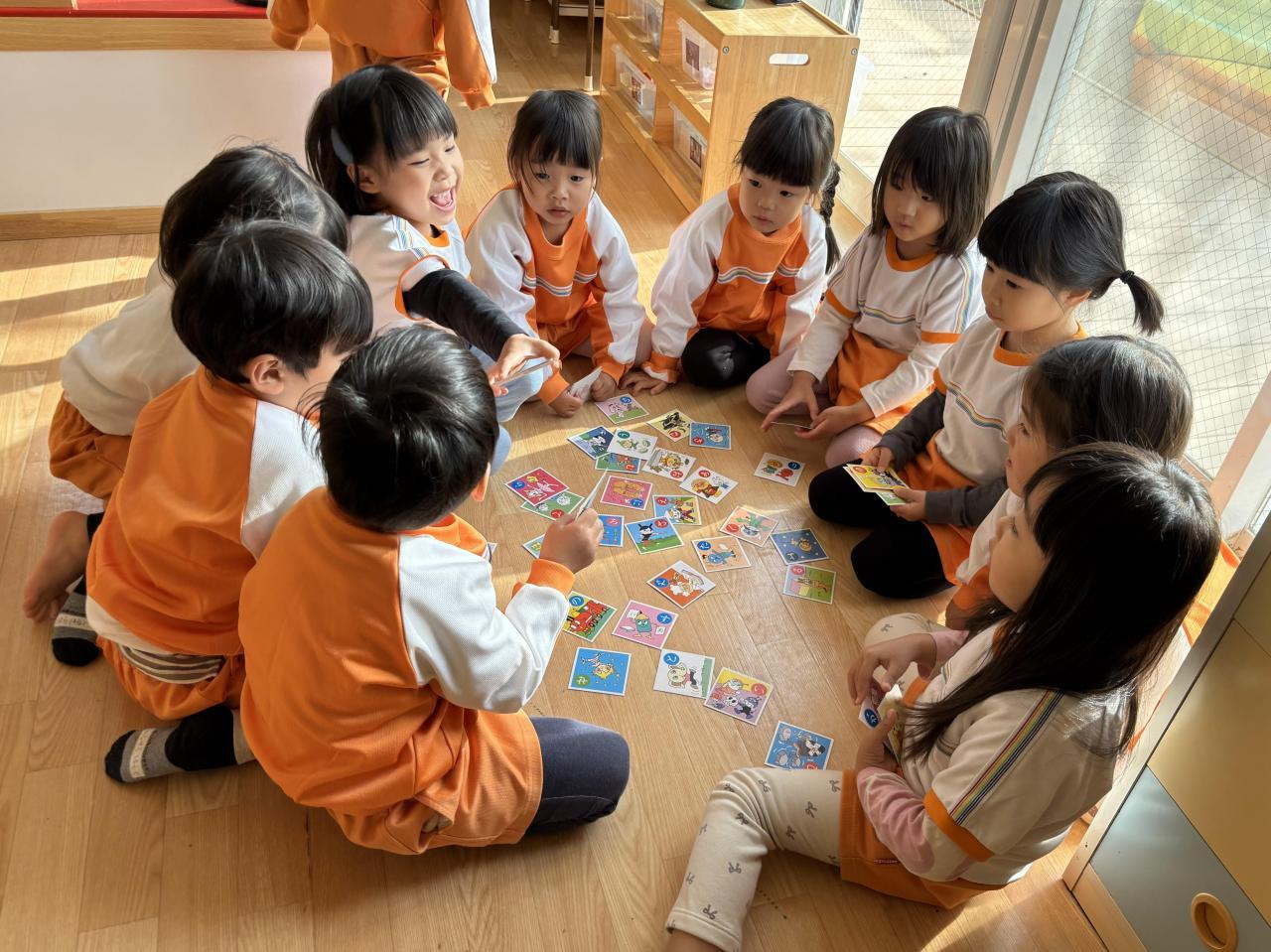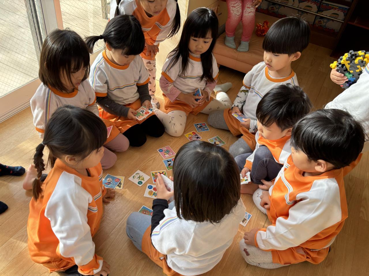 最近、数字や文字に興味を持ち始めたつきぐみさん👏かるたをしてみると、真剣に取り組む様子が見られました😀🌟