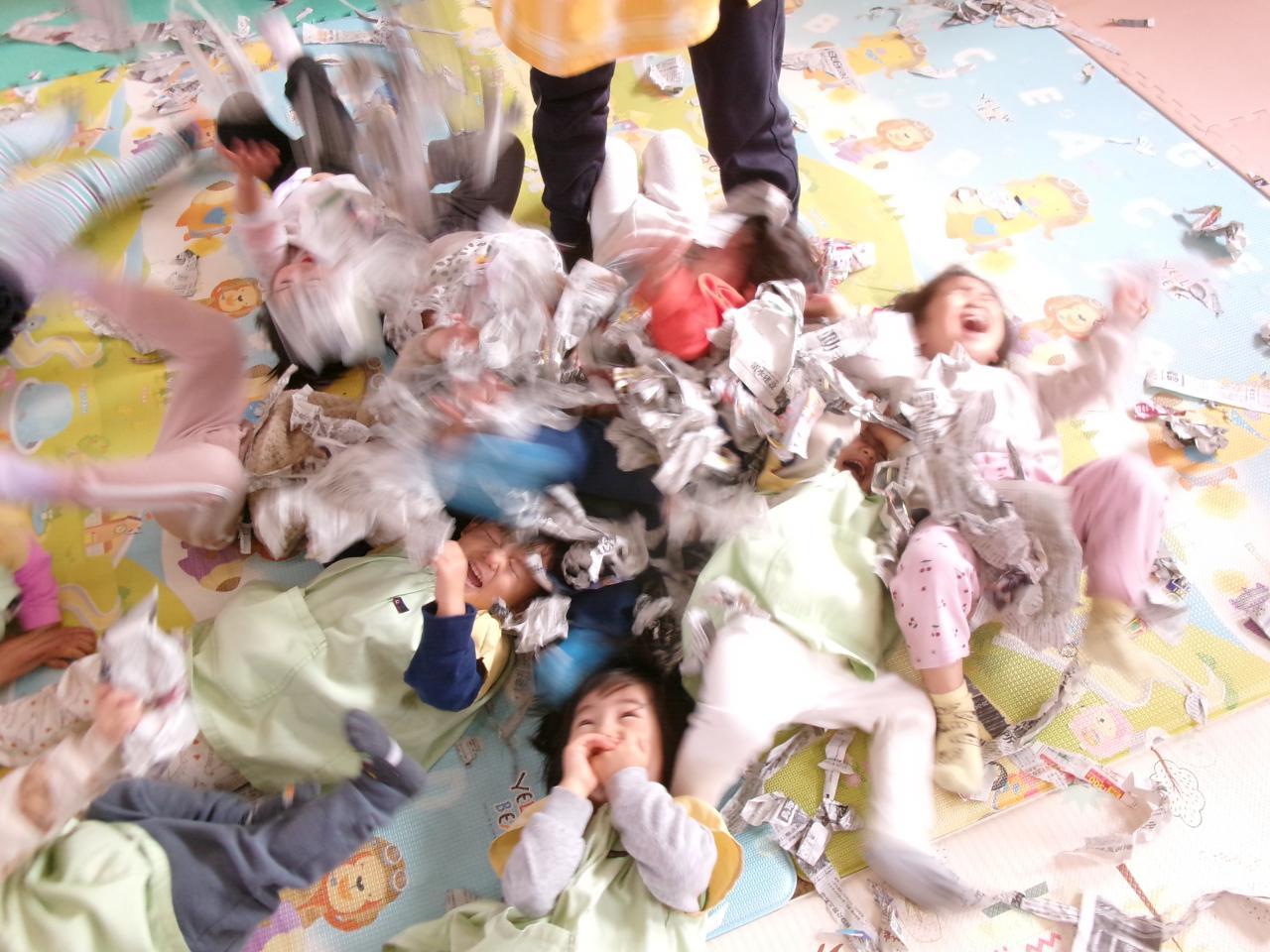 またゆり組さんと一緒に新聞遊びもしました。