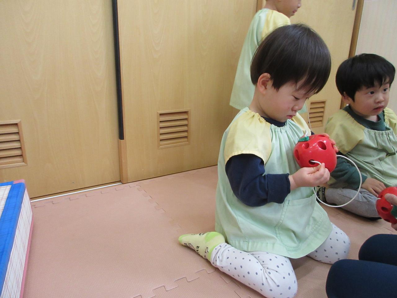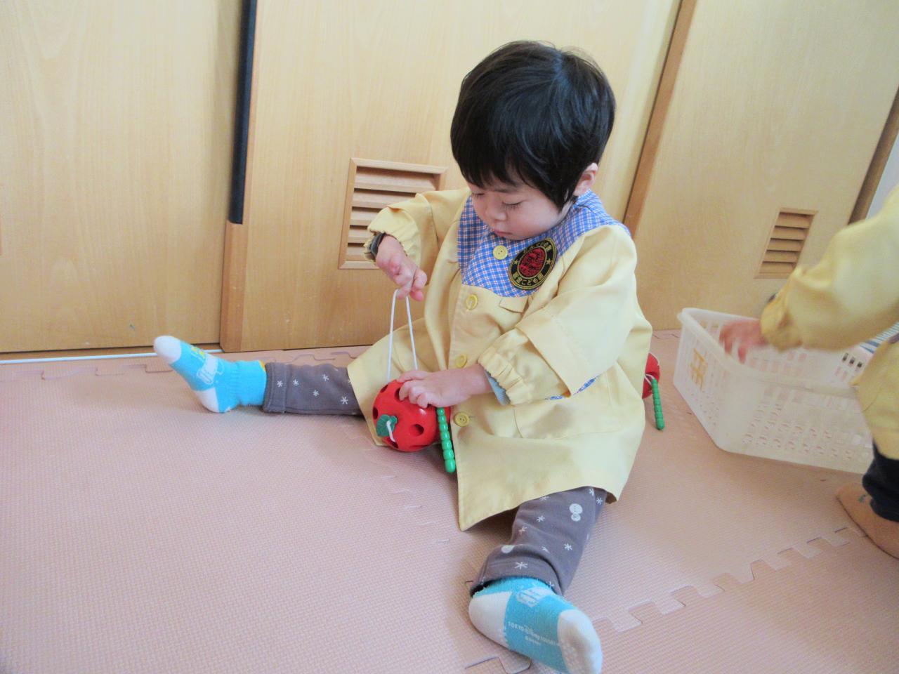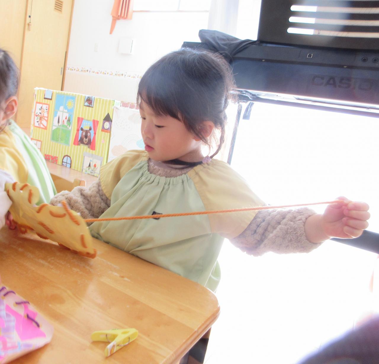 製作の少し前から、ひも通しの玩具を設置し、遊ぶ中で楽しみながら練習してきました🔥💕