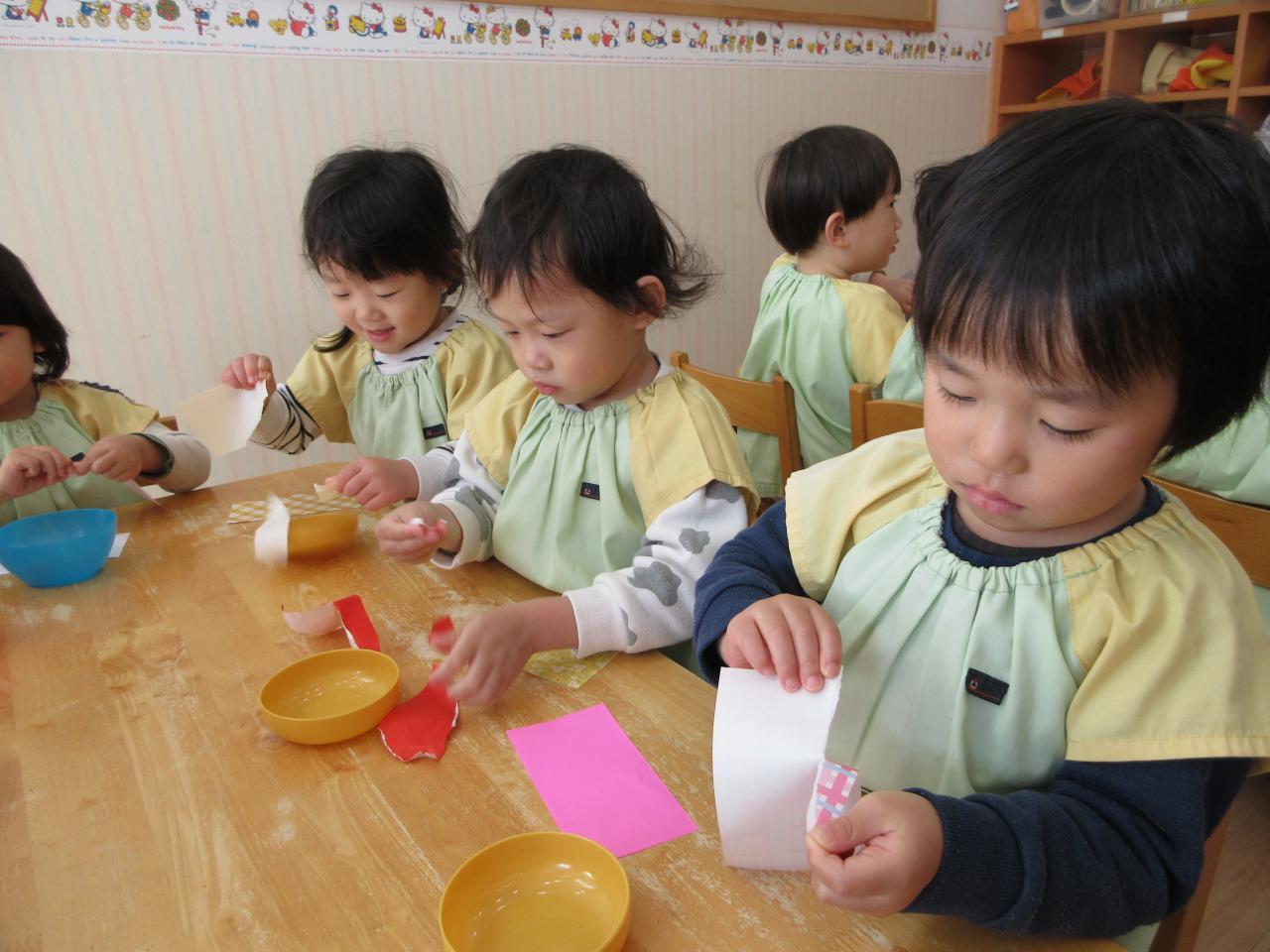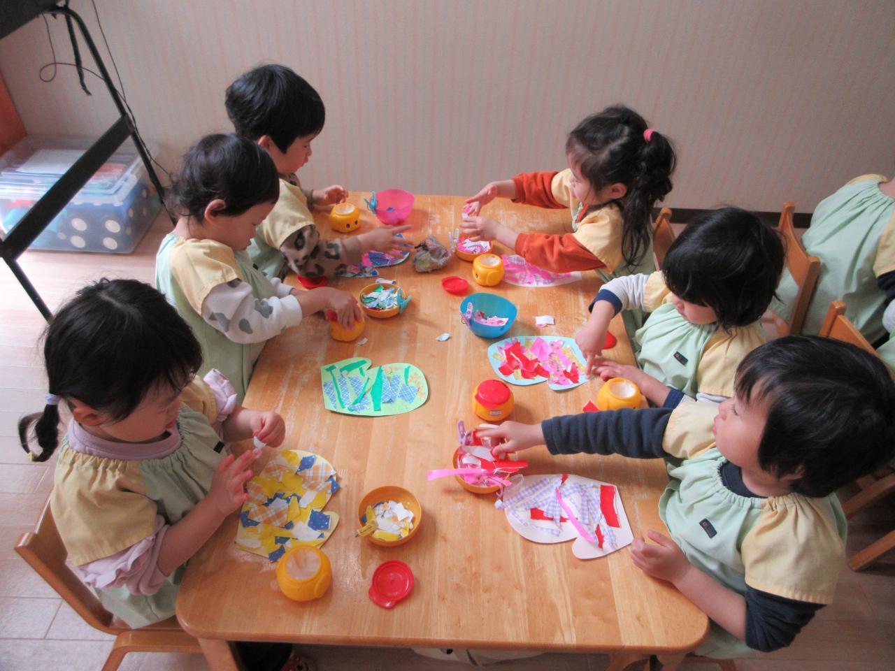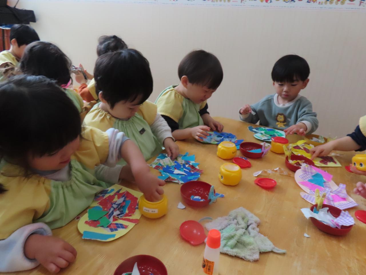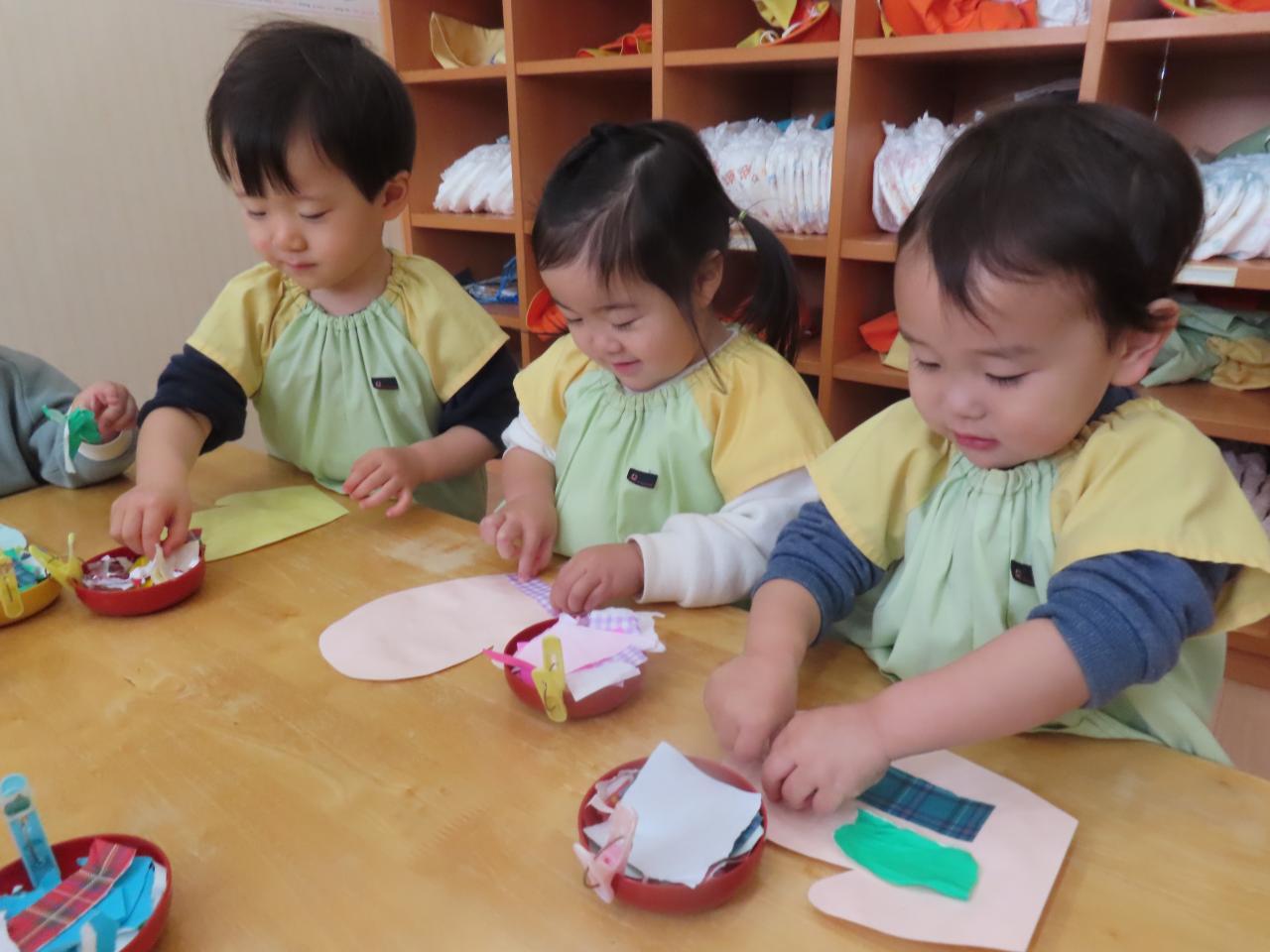 自分達で好きな色の画用紙や折り紙を選んだことで、それぞれ素敵な手袋の色合いになりました😄