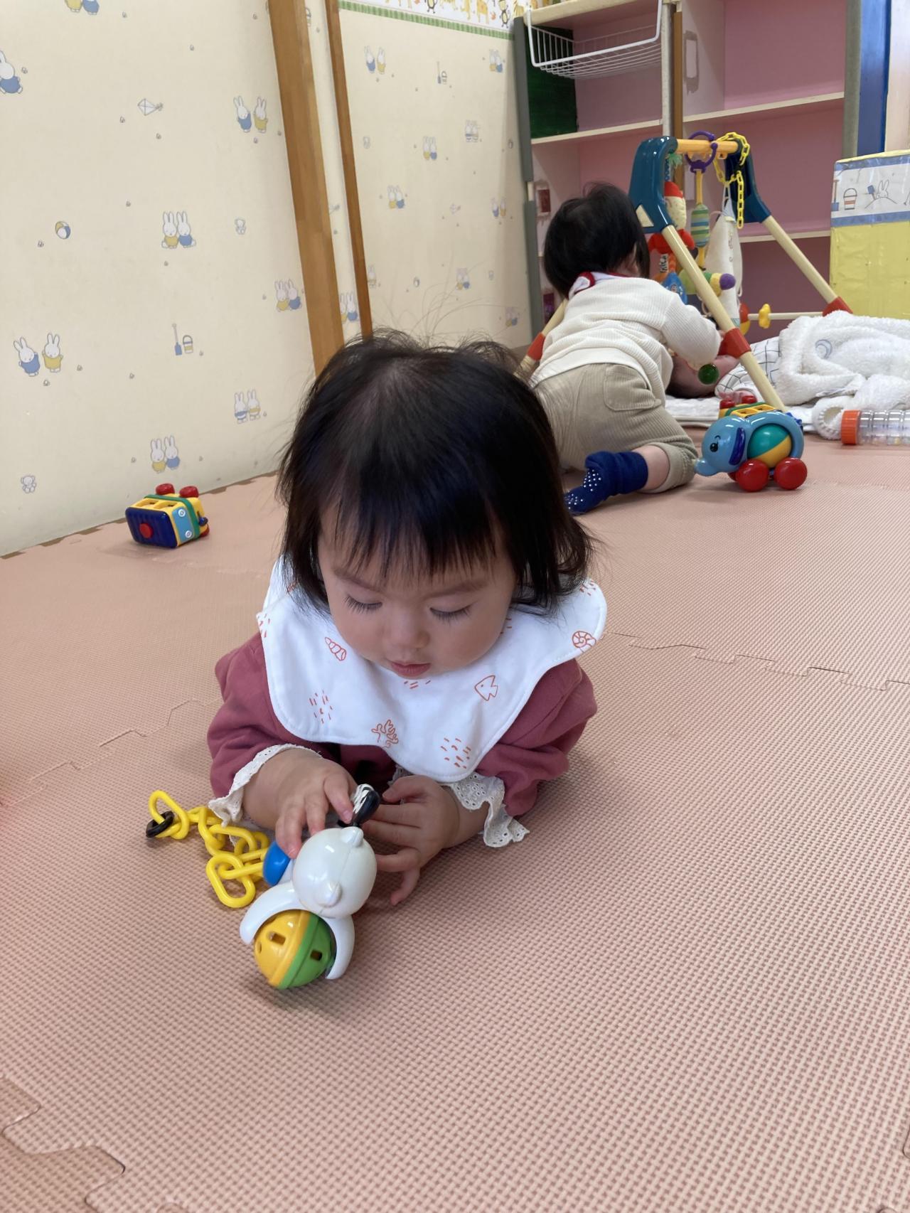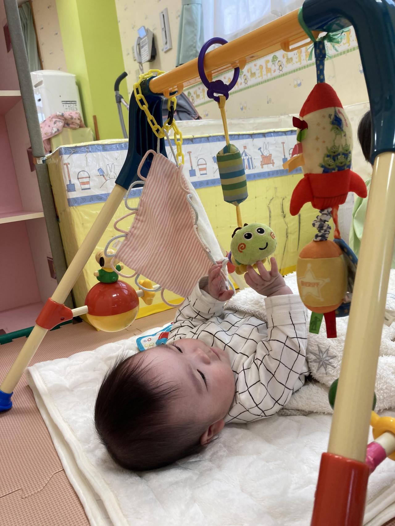 入園し、3週間が過ぎました🙂始めは泣いていたお友達もだんだんと慣れてきて笑顔が見られたり玩具に手が伸びるようになったりしてきました。