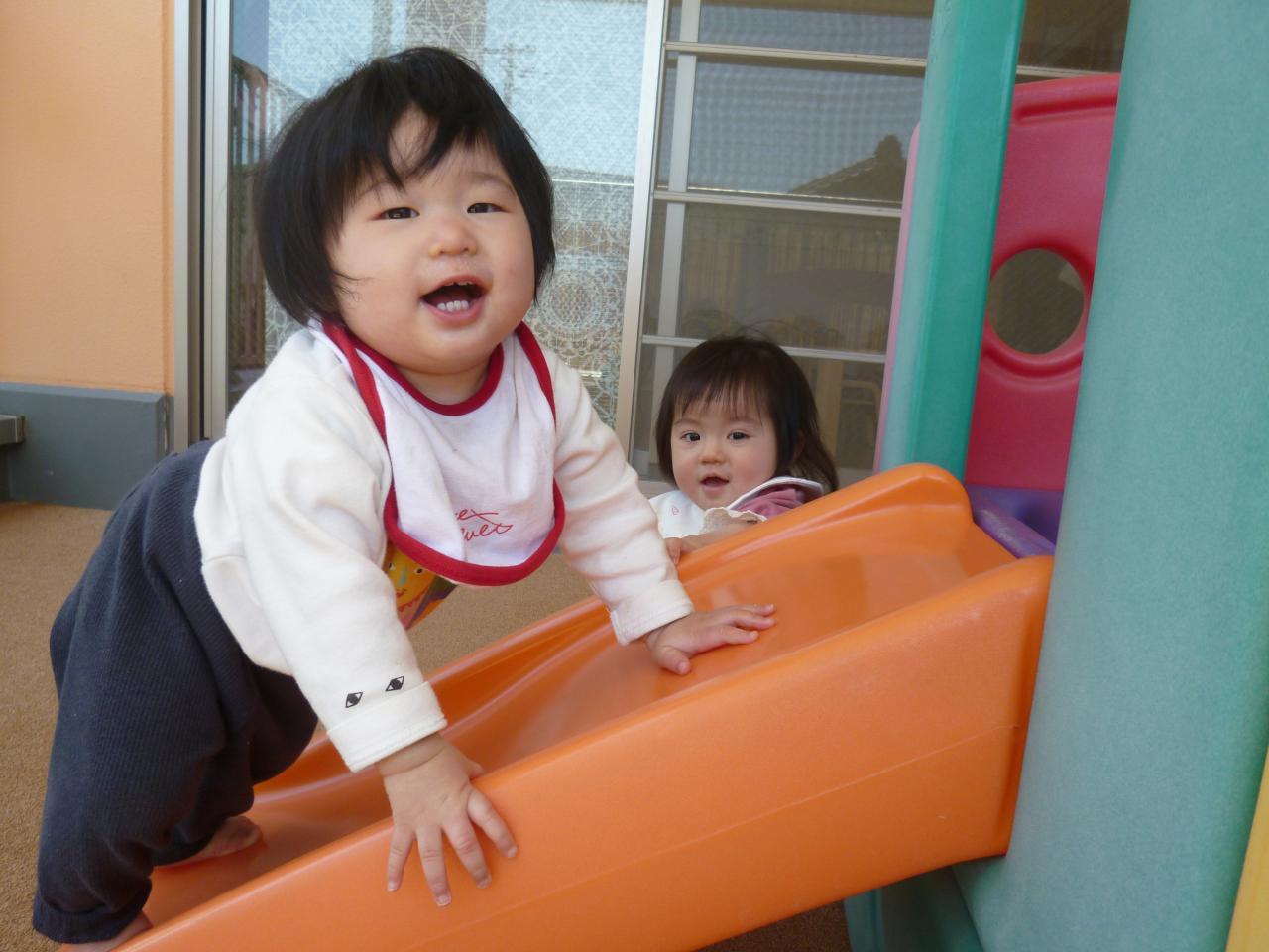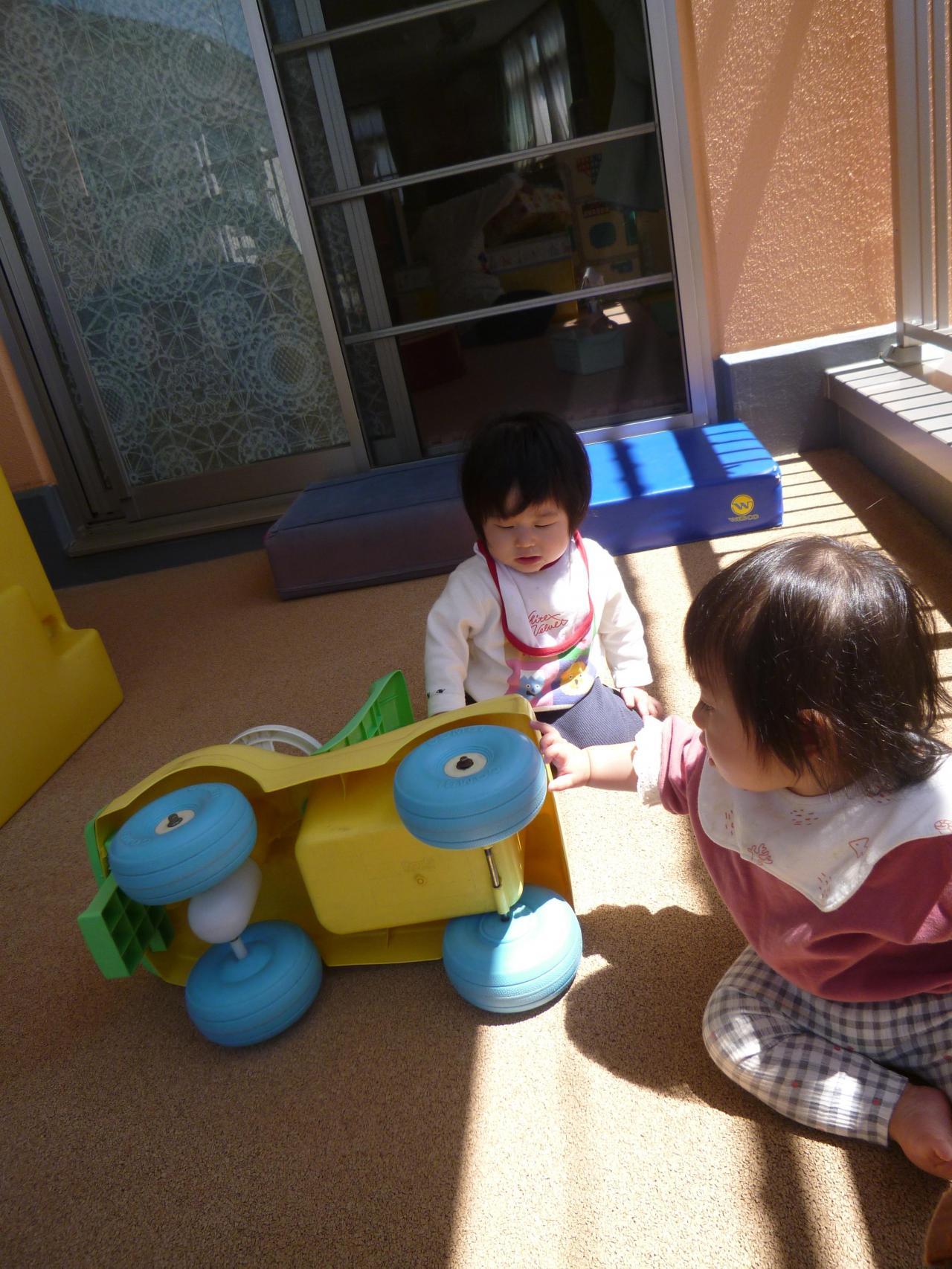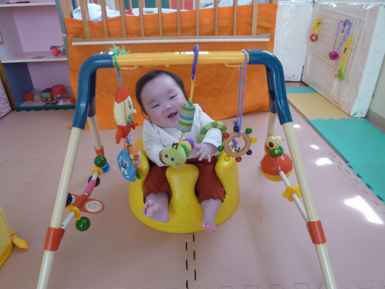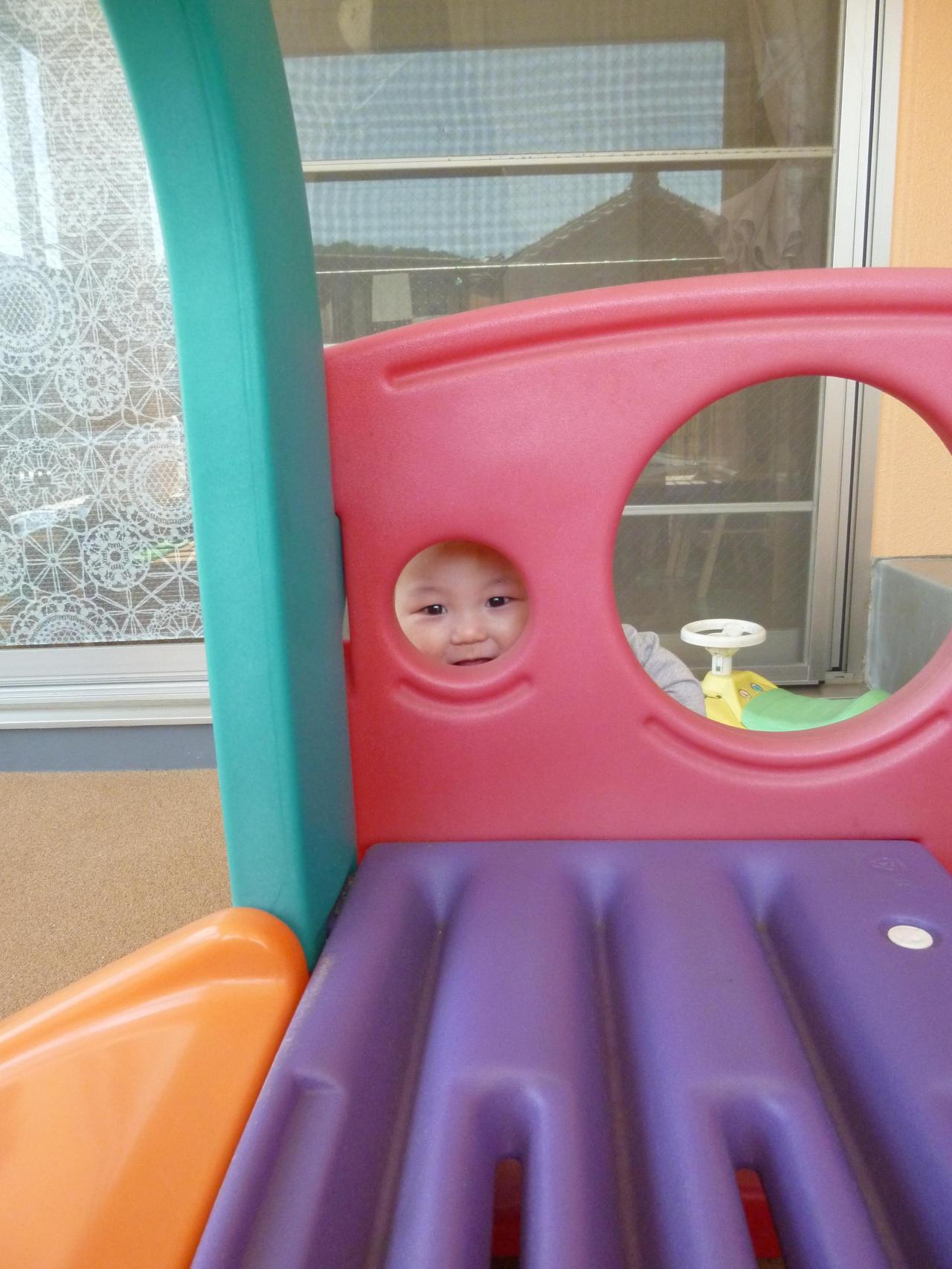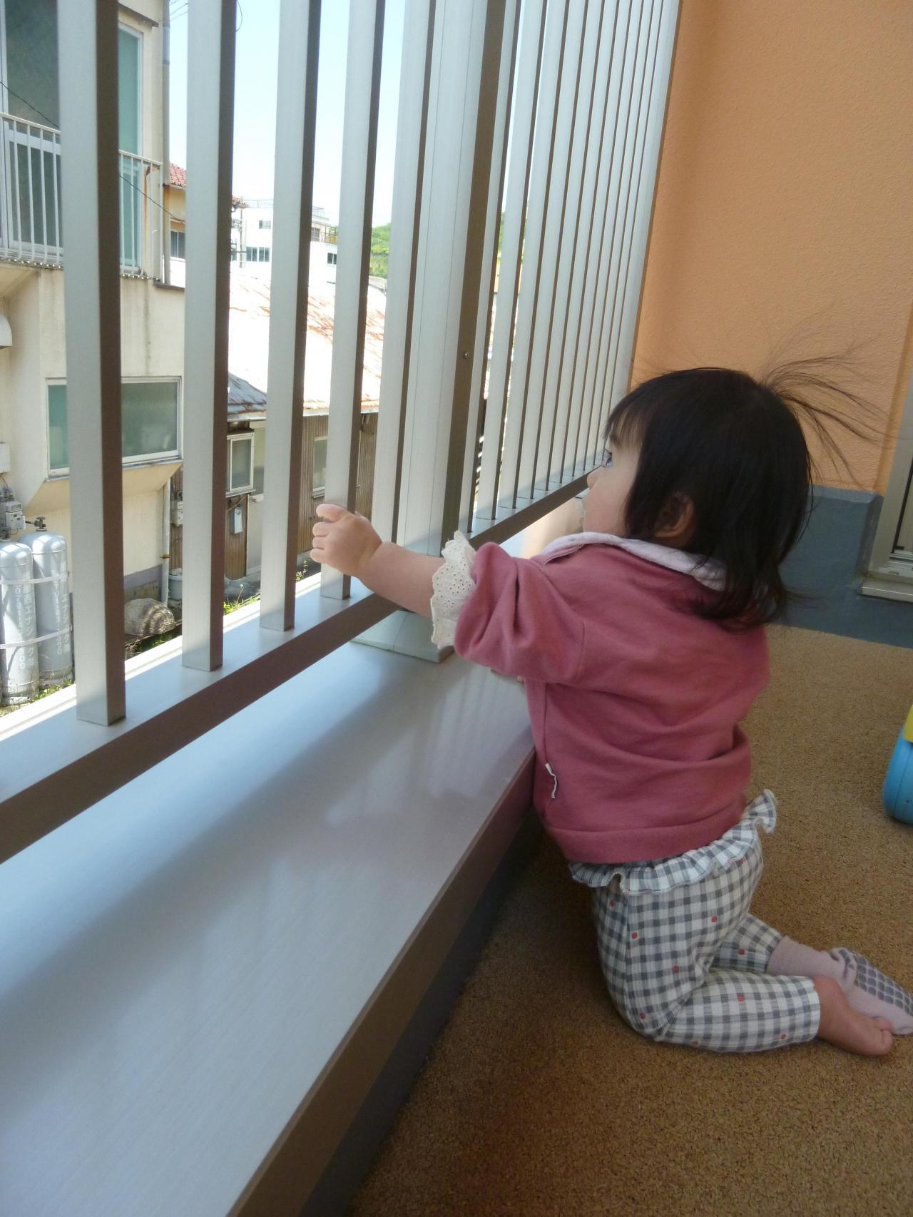 入園からもうじき2ヶ月がたちます。泣く子が少なくなり各々に自分の好きな玩具を探したり、部屋中を探索活動しはじめたさくら組さん🙂天気のいい日には部屋横にある小さなテラスにでてお外の風に当たったり外の景色をみたり遊具で遊んだりしました。