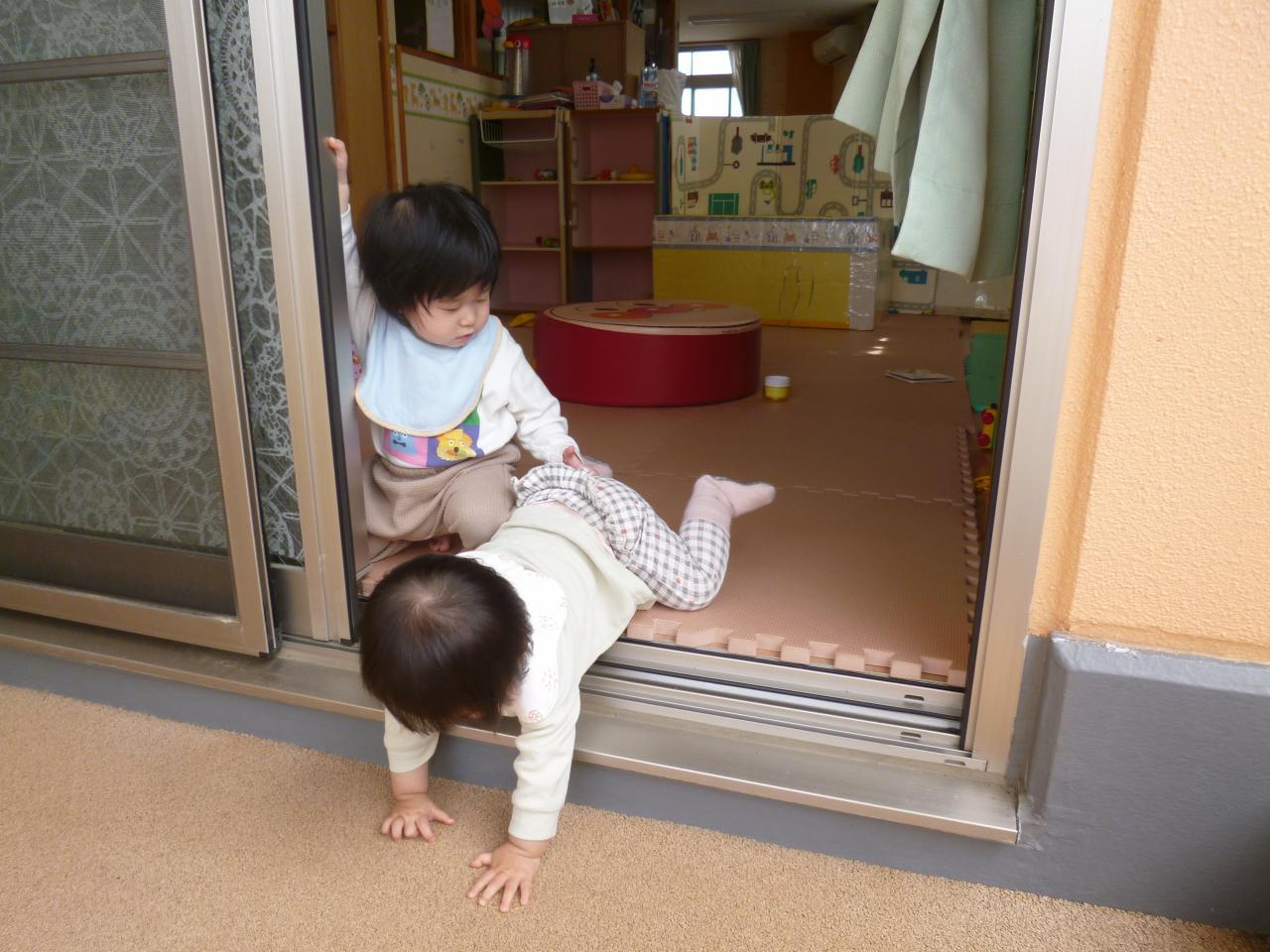 テラスに出るときにある段差に4月はマットがないと、おりにくかったさくら組さんですがいつのまにか自分達で段差も乗り越えられるようになってきました!