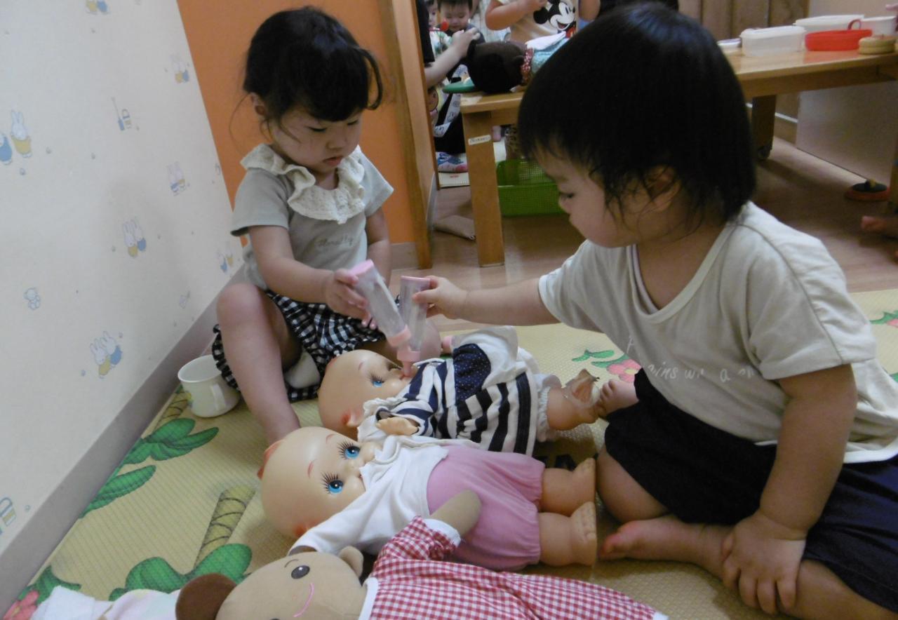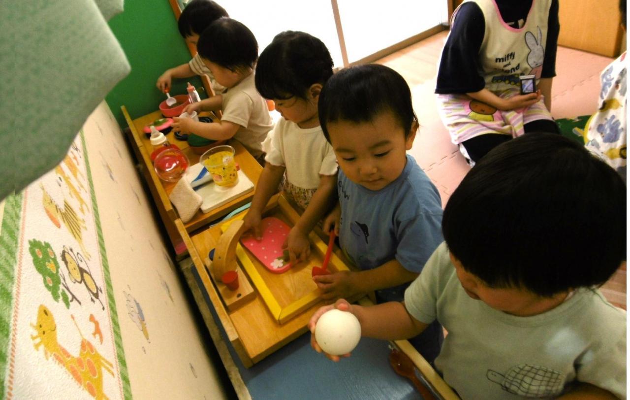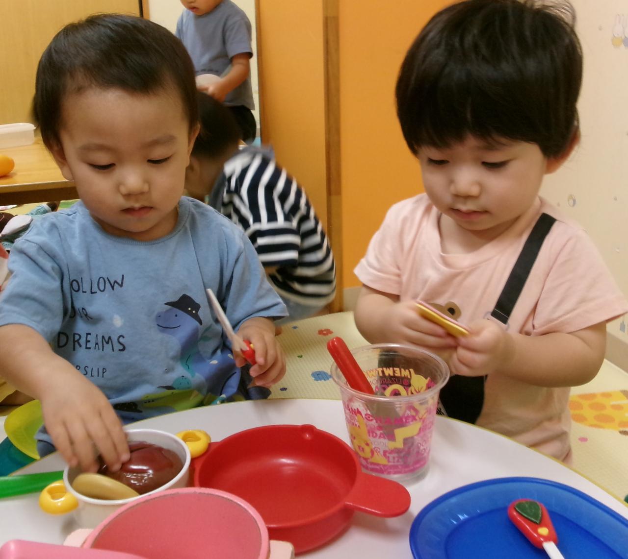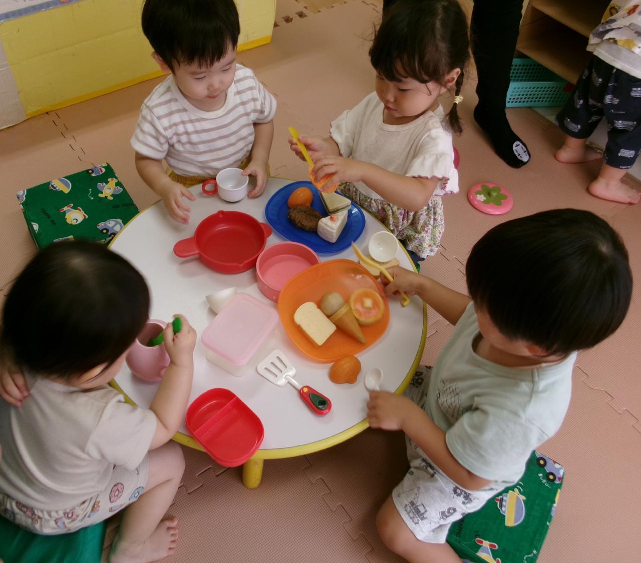 また、保育士に「はいどうぞ!」と言って、作ったご飯を渡してくれたり、お友達の名前を呼んで、「○○ちゃん!」「一緒にしよ~」と言って、子どもたち同士で一緒にご飯を作ったり、赤ちゃんのお世話をしており、とても可愛らしいです💕