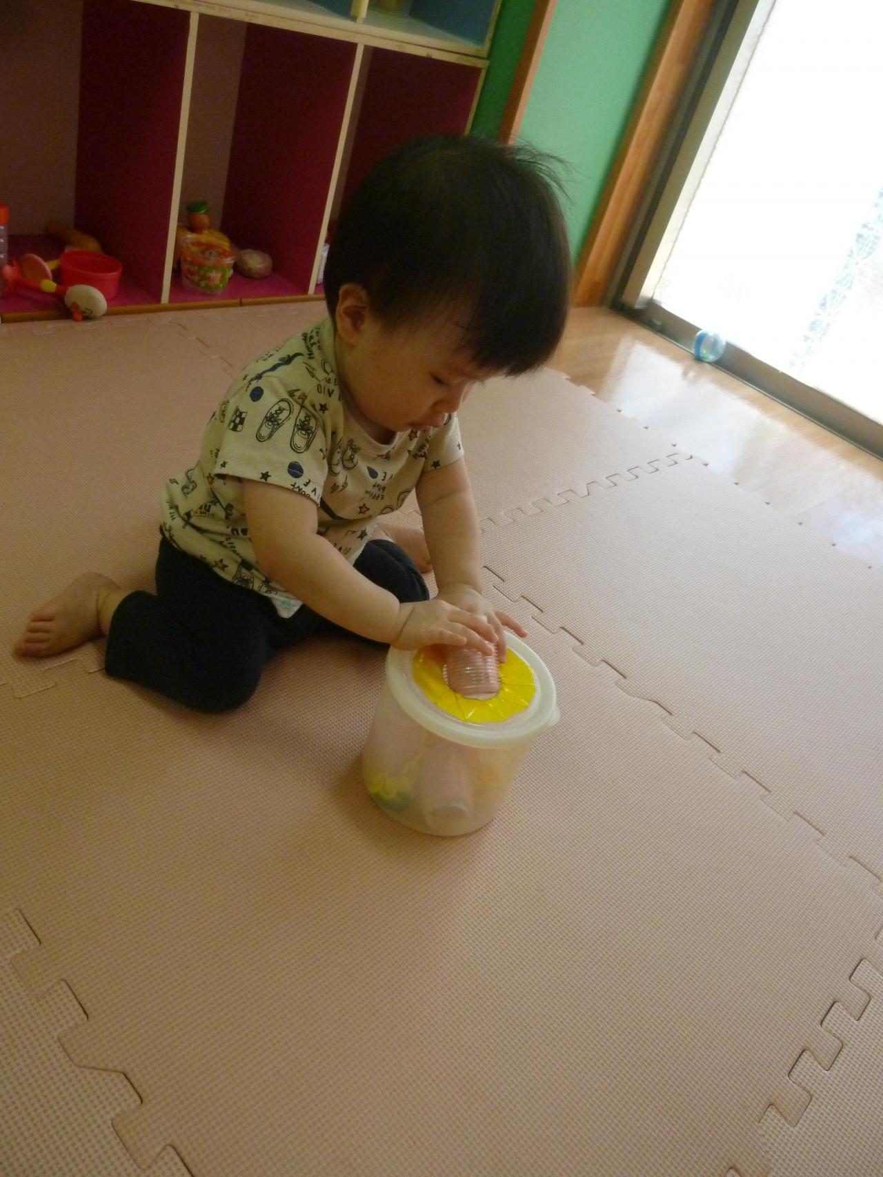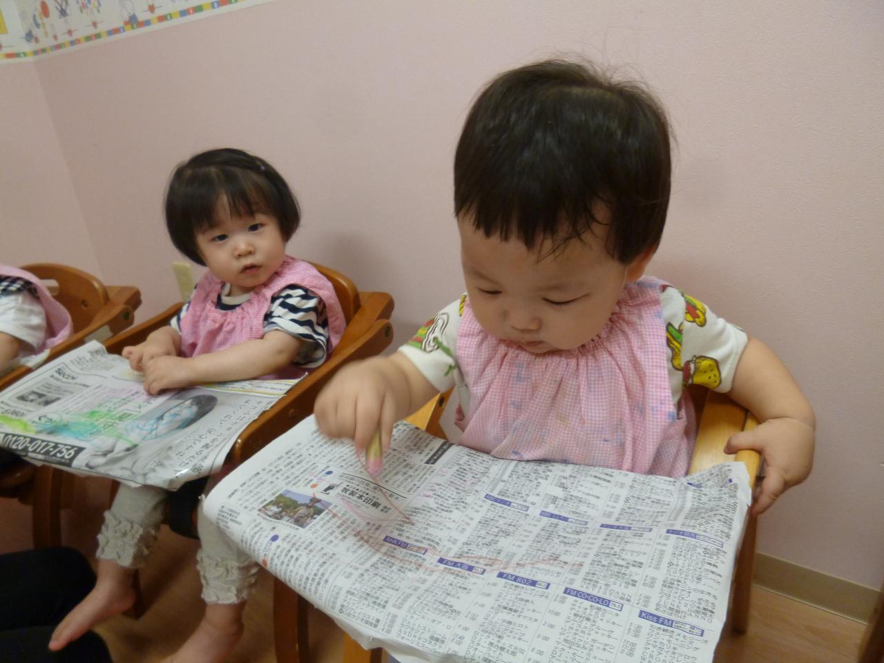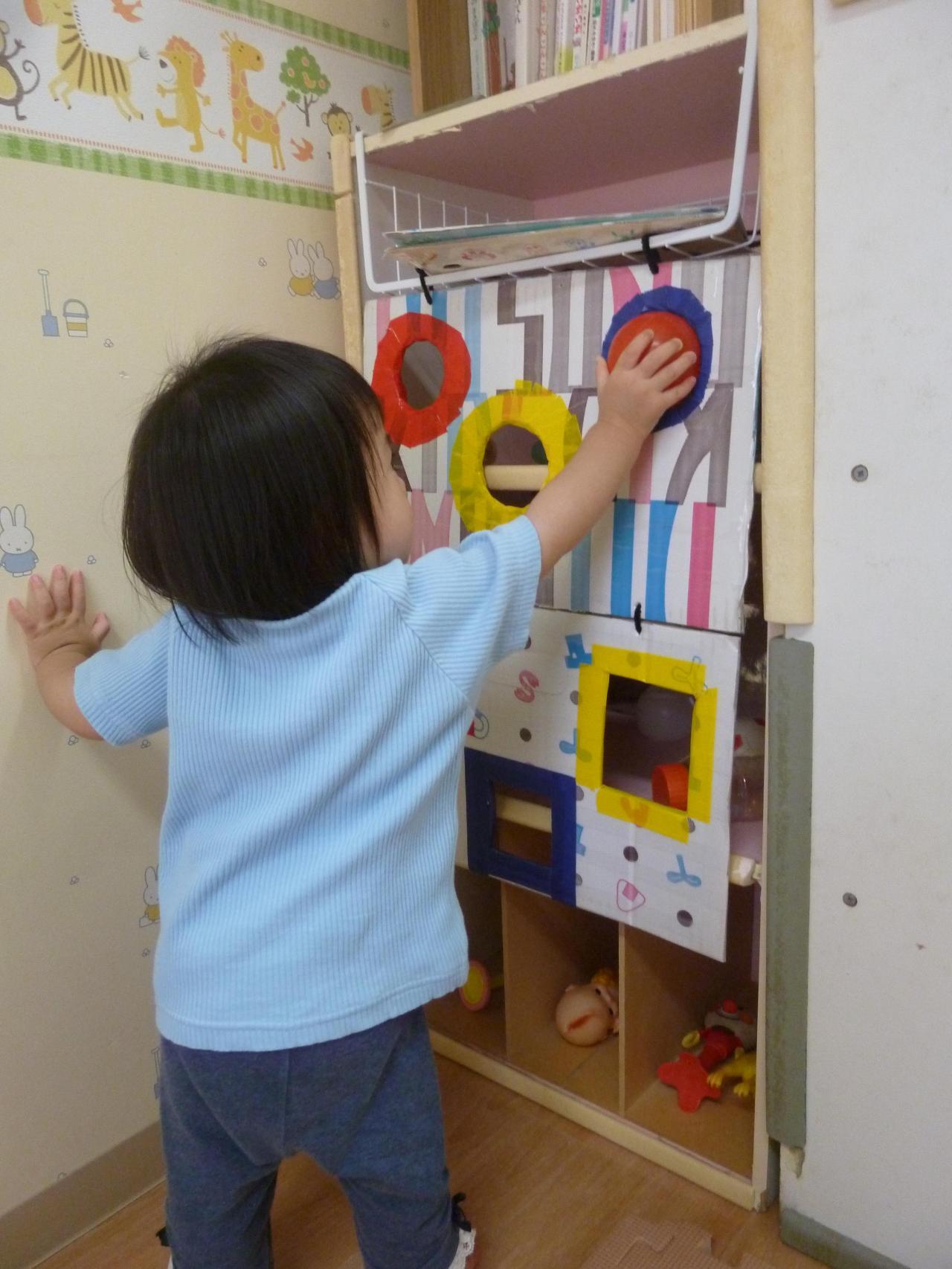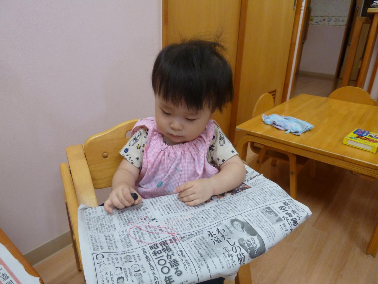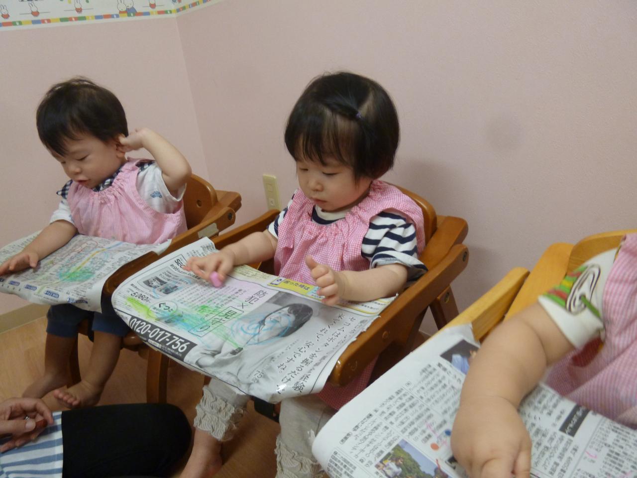 じっくりと遊べるようになっています。先日はお絵かきをしてみました。クレヨンを手に持ち トントントンと喜んで描いていました。