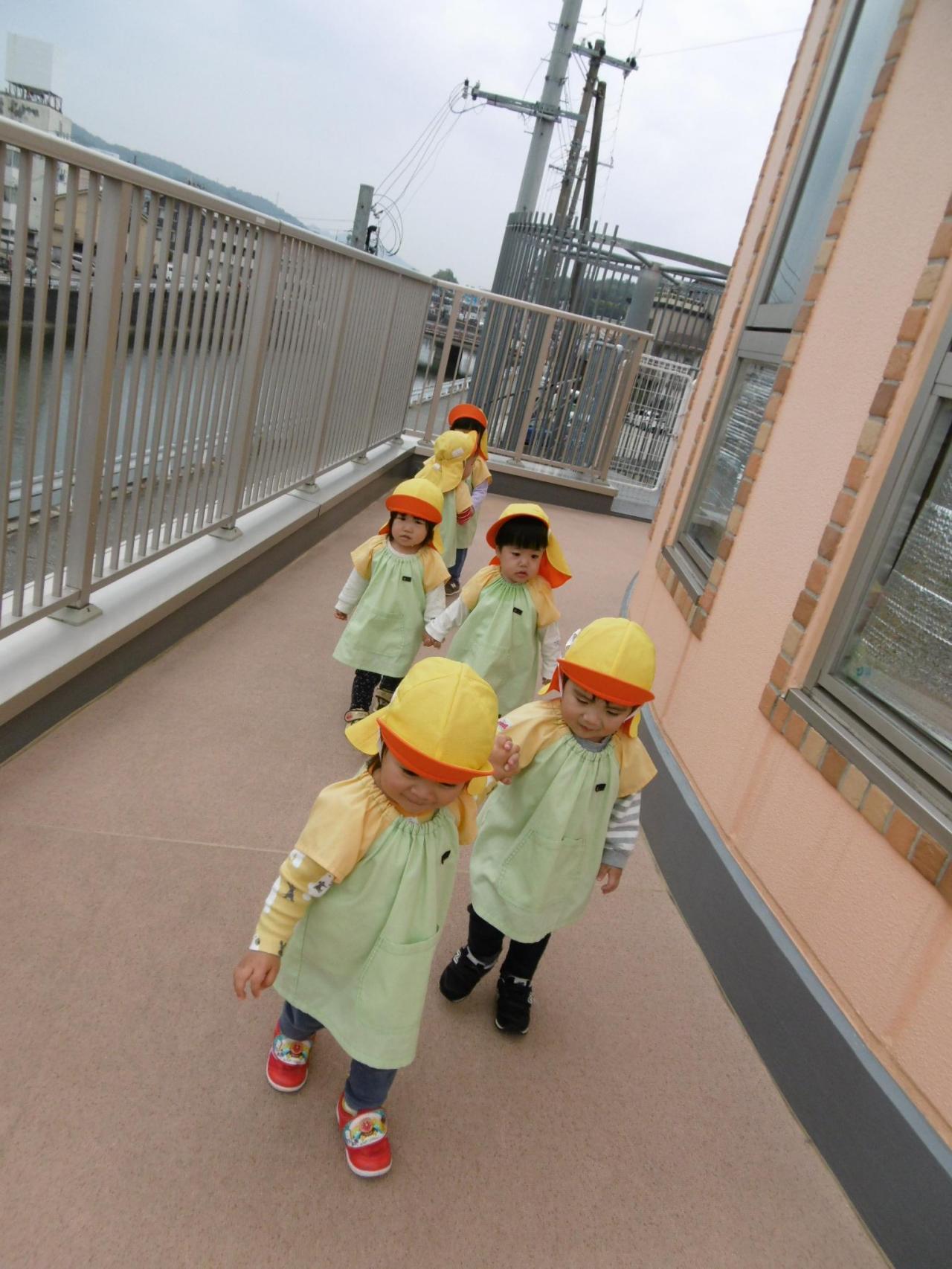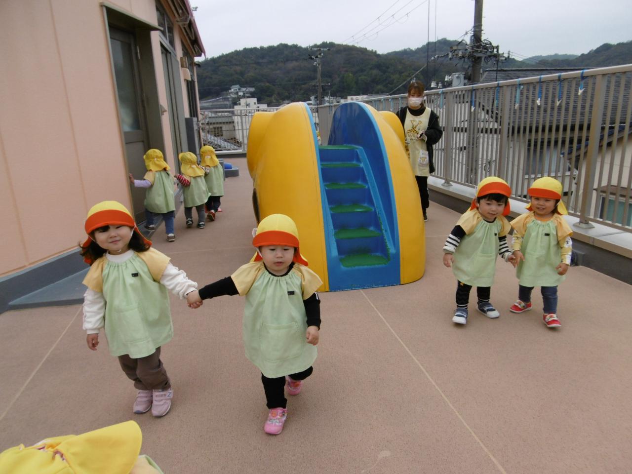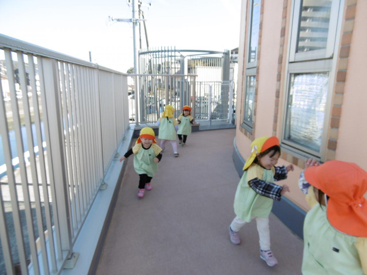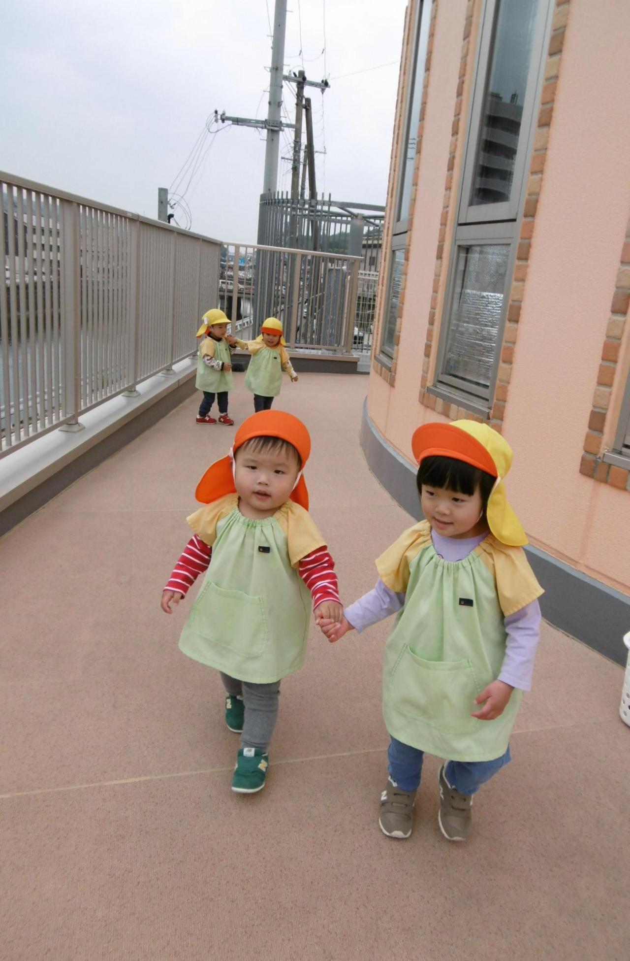 テラスでも保育士が歌を歌うと、「おてて!」と言いながら近くに居るお友達と手を繋いで仲良く歩いたりとても微笑ましいです😌