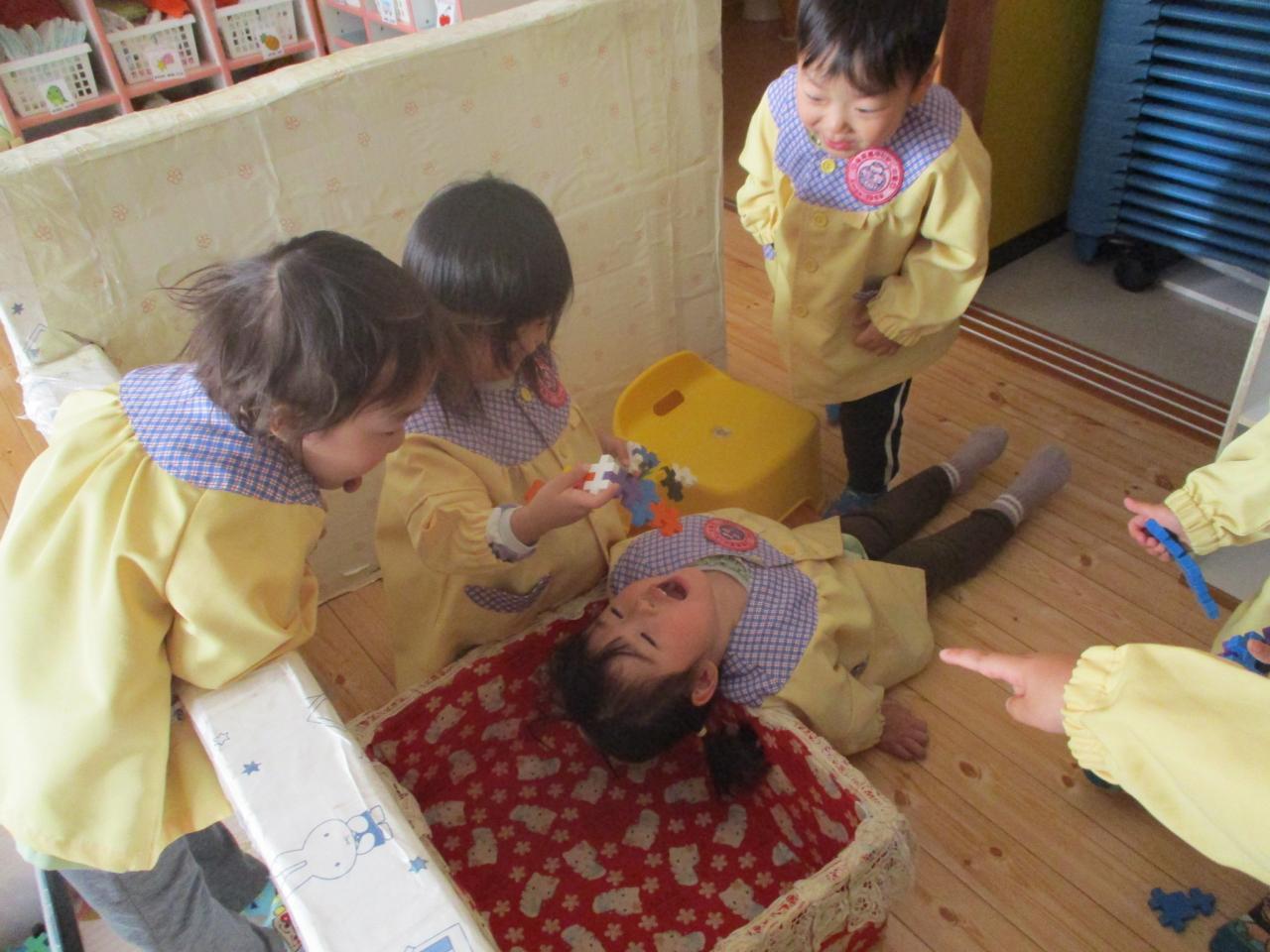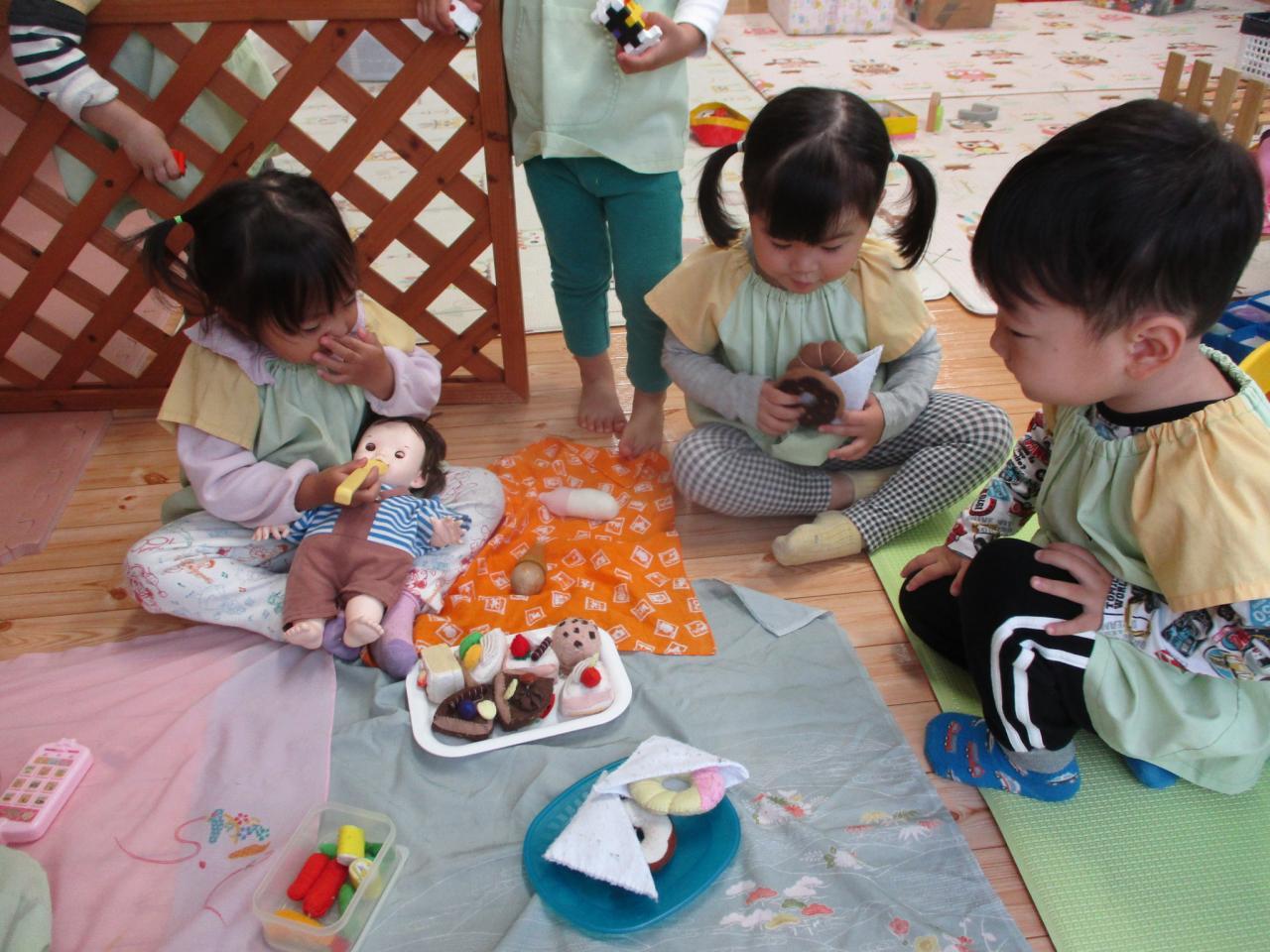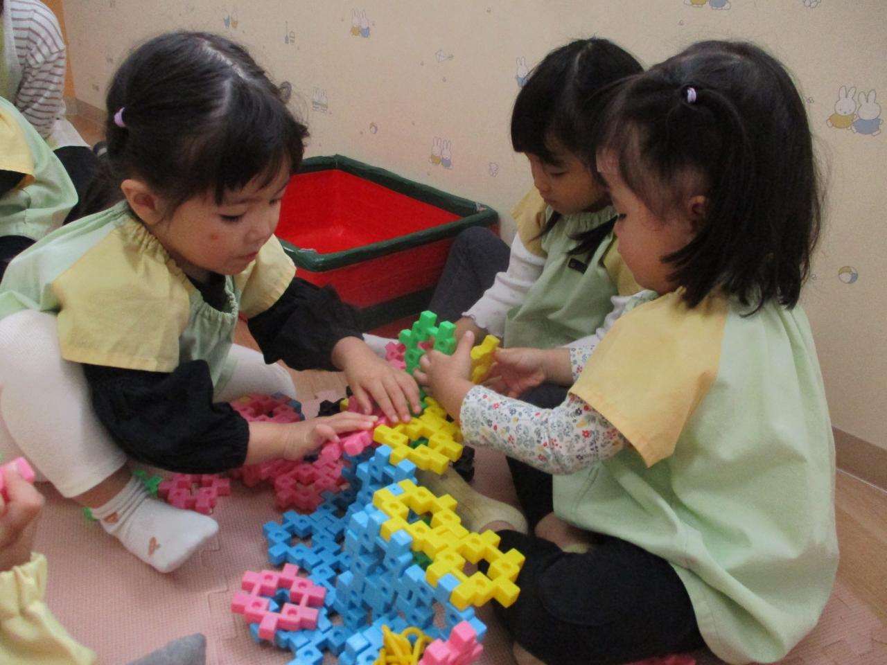 お部屋でも、ブロックや積み木を自分達で考えて組み立てたり、様々なごっこ遊びをしたり絵本を読んだりと、お友達と一緒に遊んでいます!