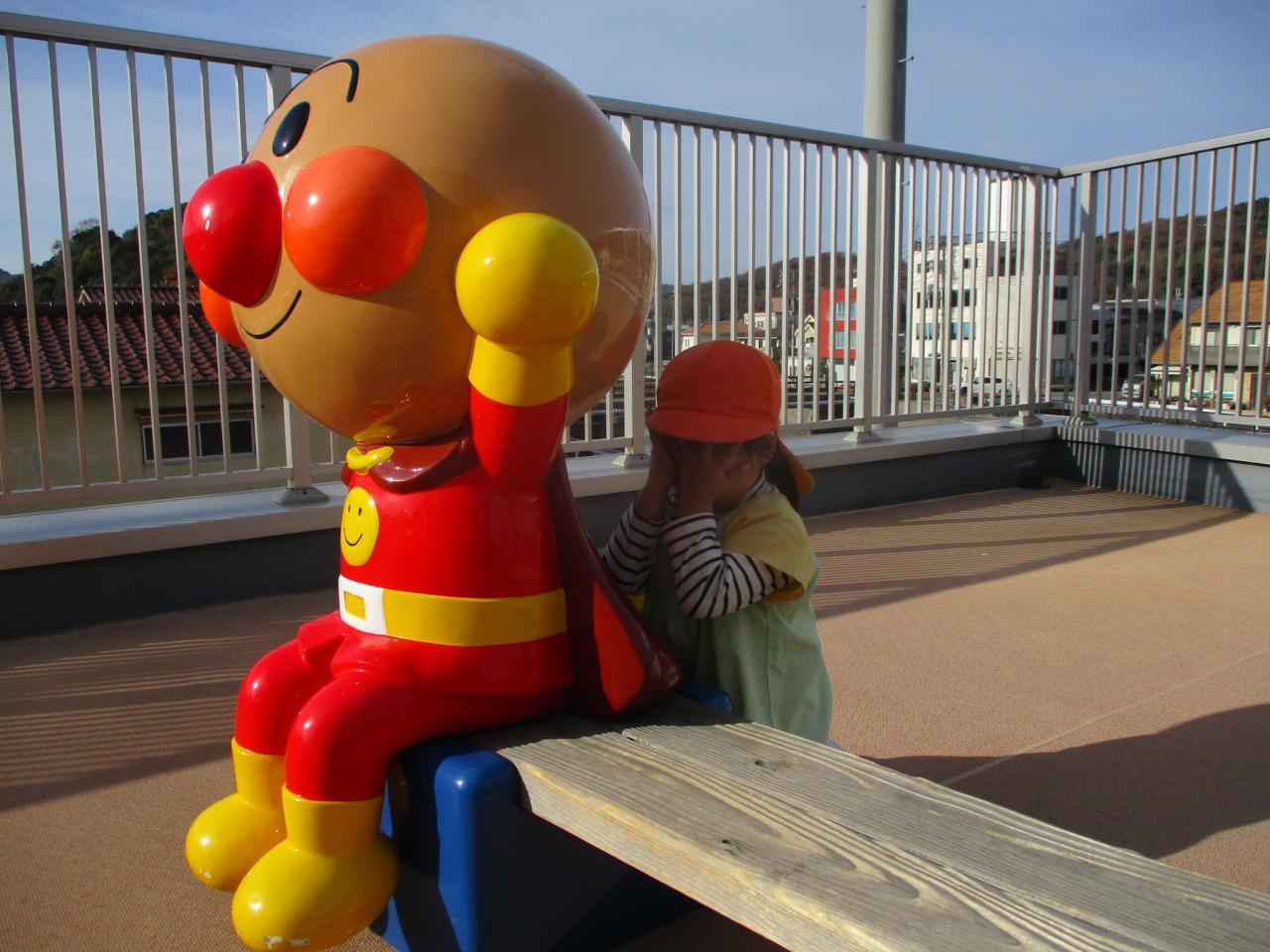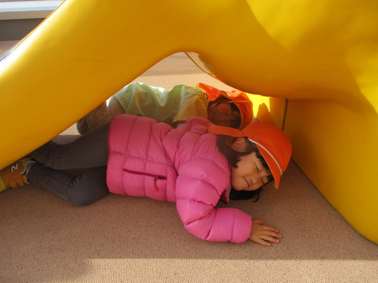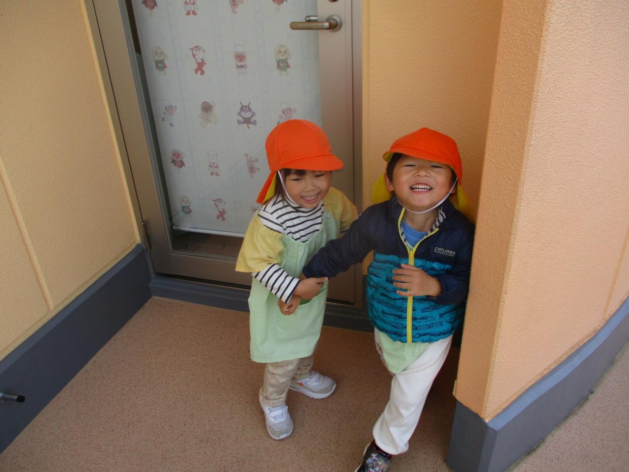テラスではかくれんぼが人気で、お友達と一緒に隠れる場所を探して、隠れています💨