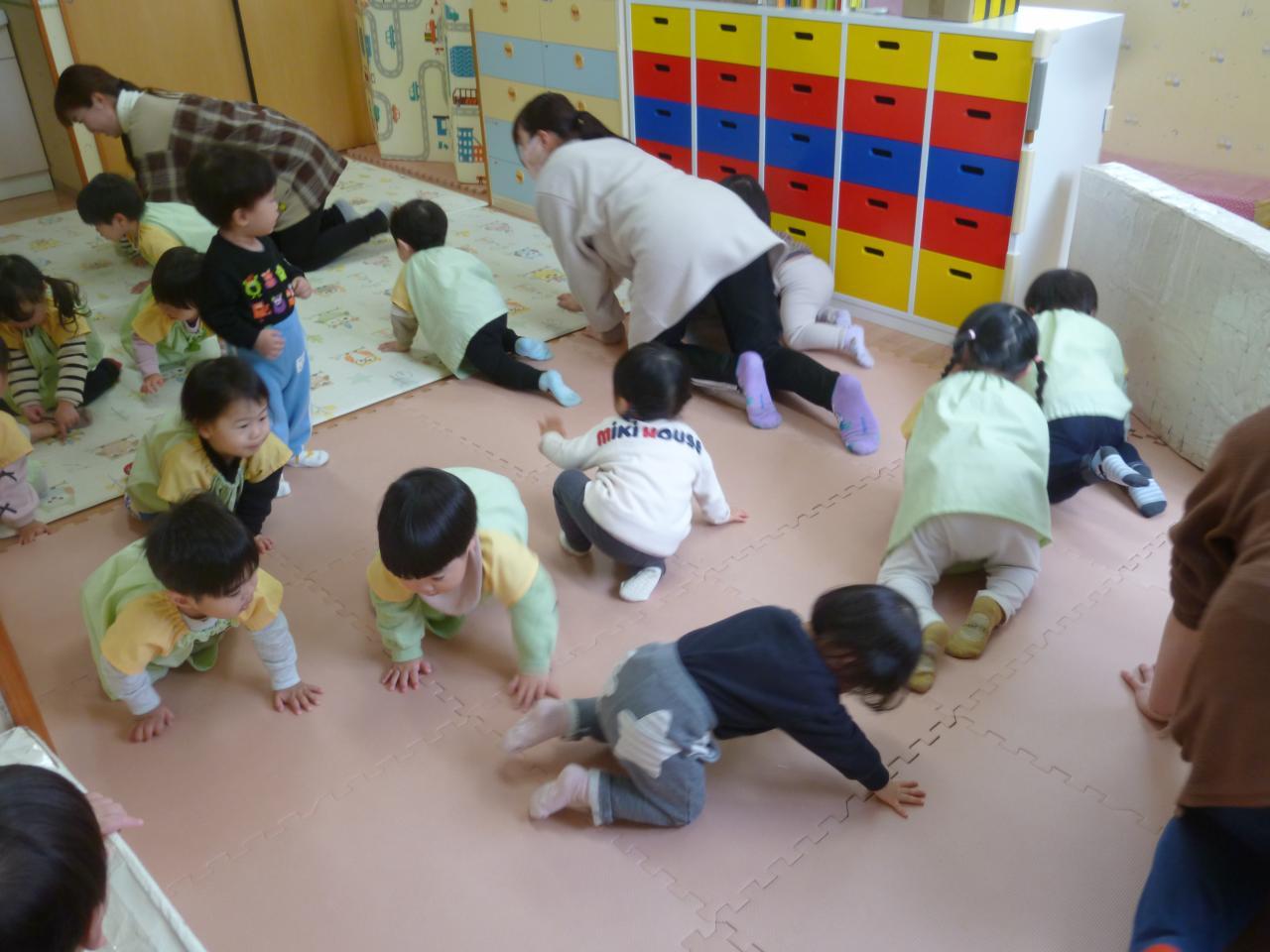 いろいろな動物になりきったりまねしたりして楽しみました!また1歳児のお兄ちゃんお姉ちゃんがリードしてくれてたのもしかったです。