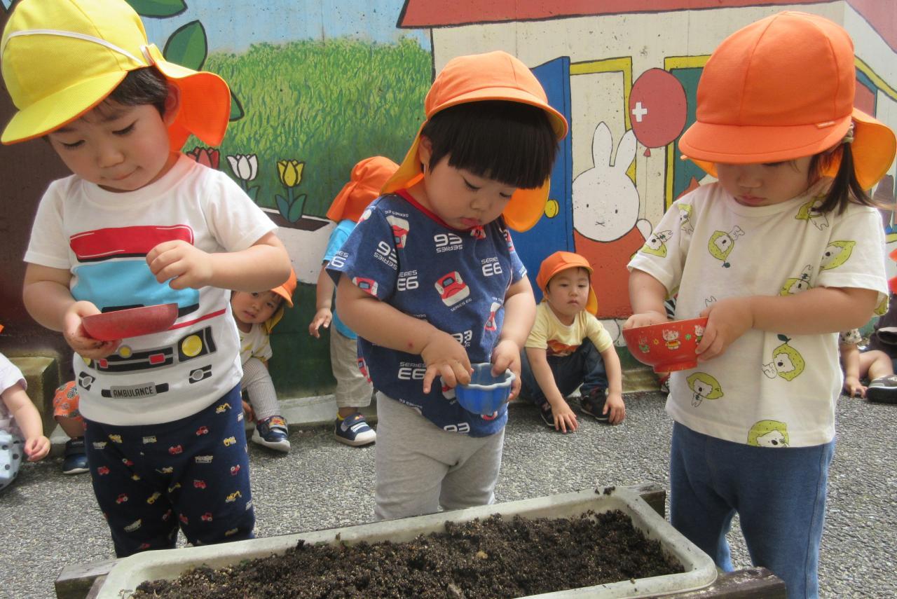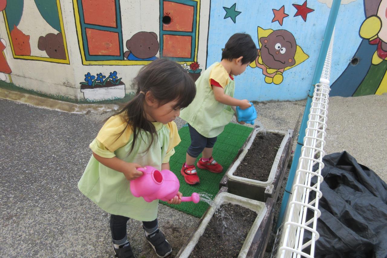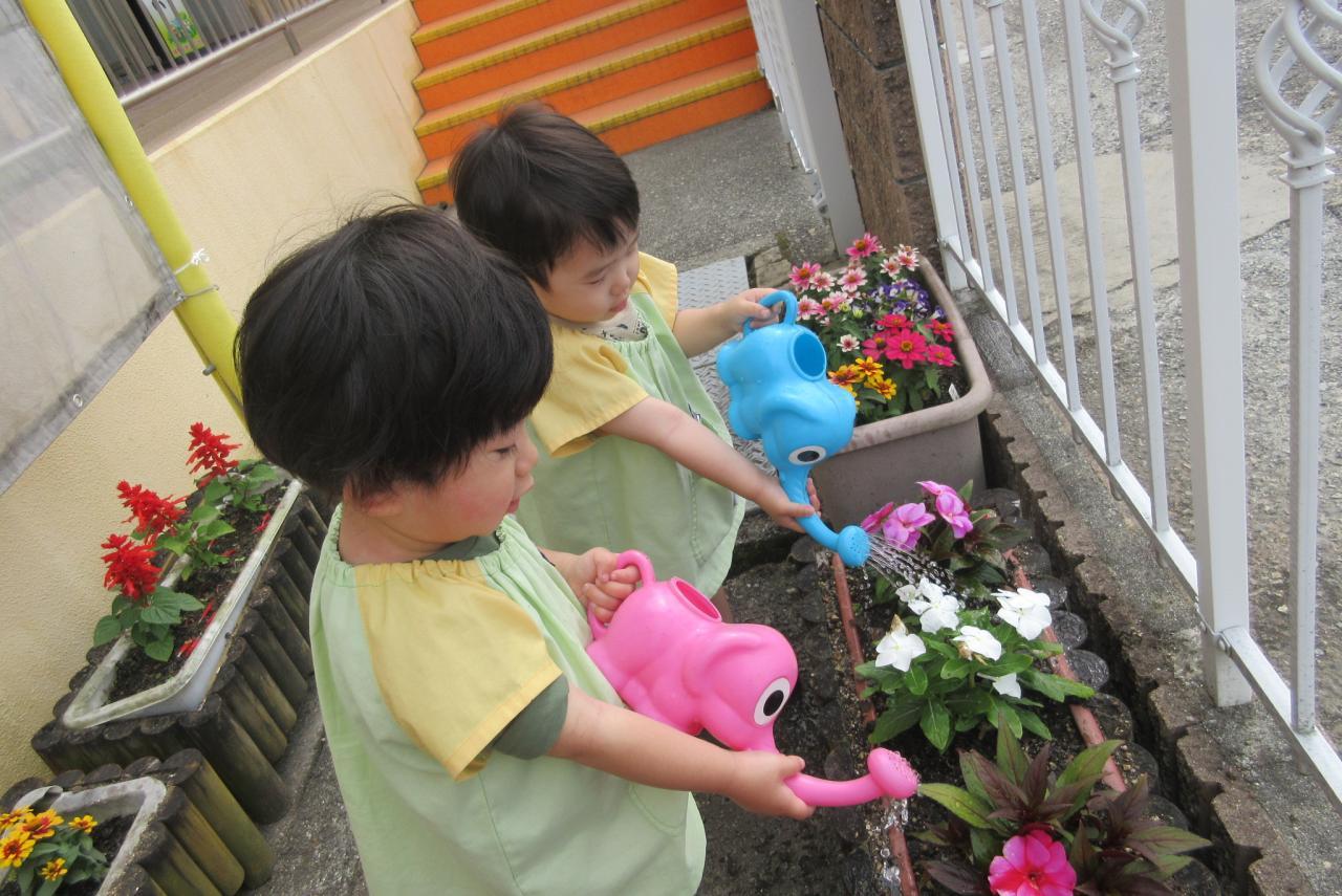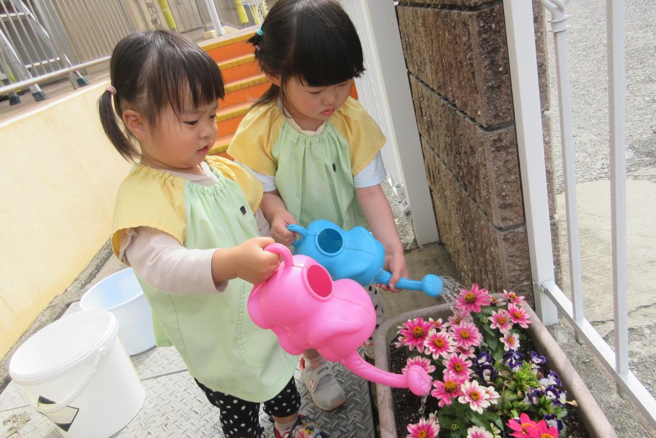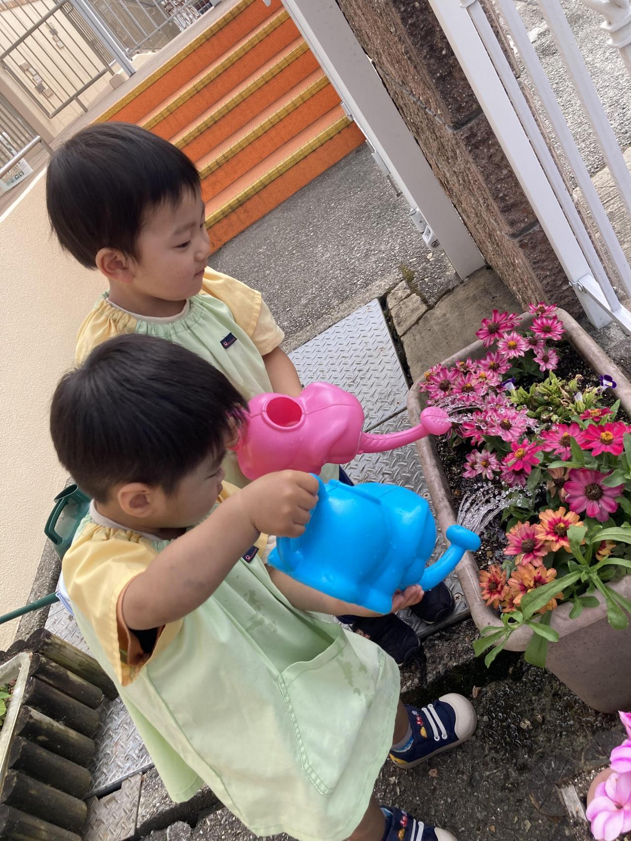 「おおきくなあれ」「お水飲んでくれるかな?」などお花に話しかけながらお世話を楽しむ子もおり、とても可愛らしく心が温かくなりました😆これからも、身近な植物や虫などにたくさん触れられる機会を作っていきたいと思います。