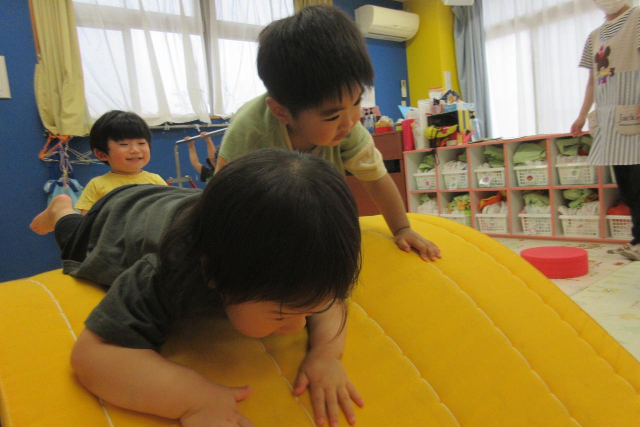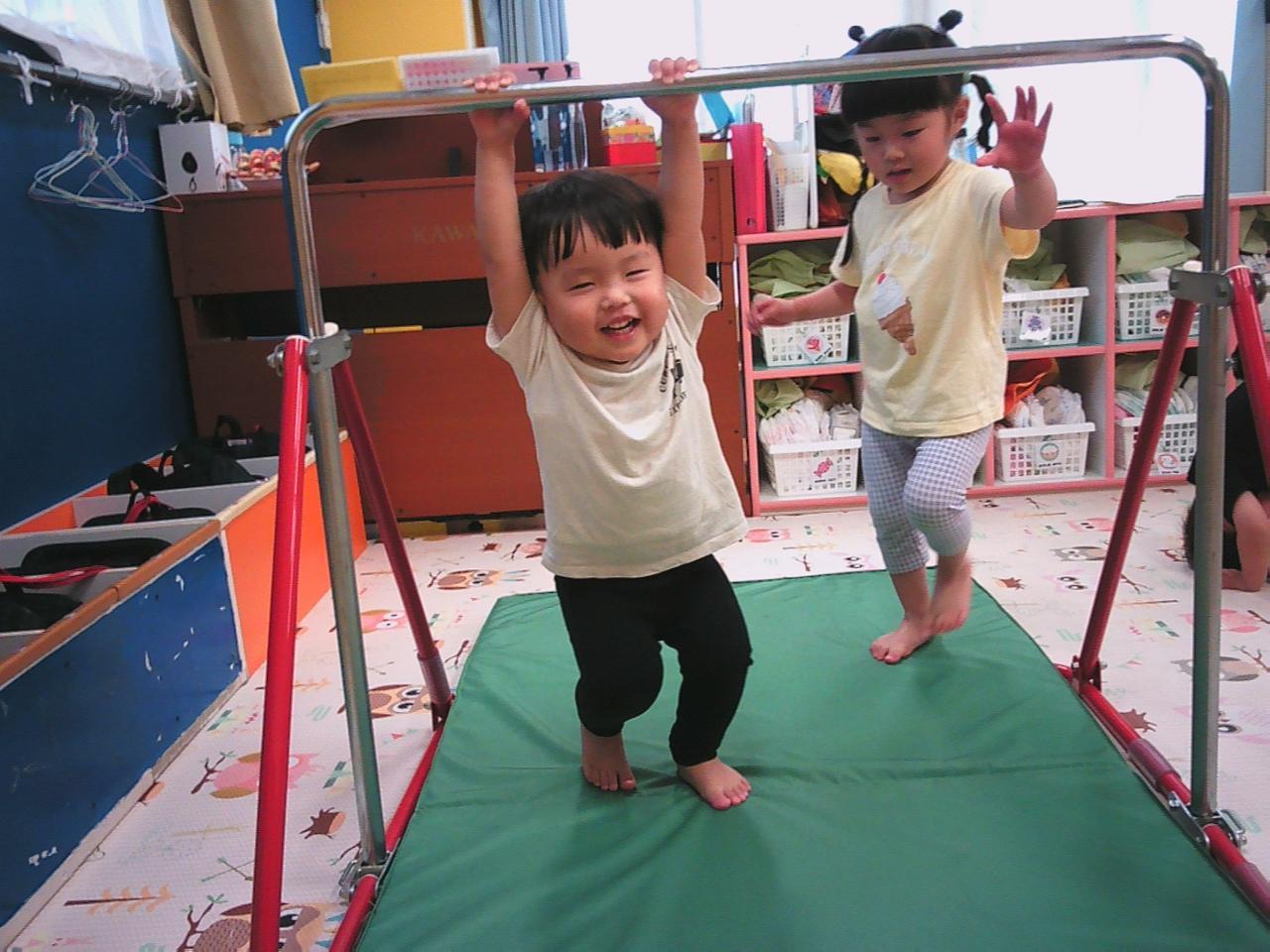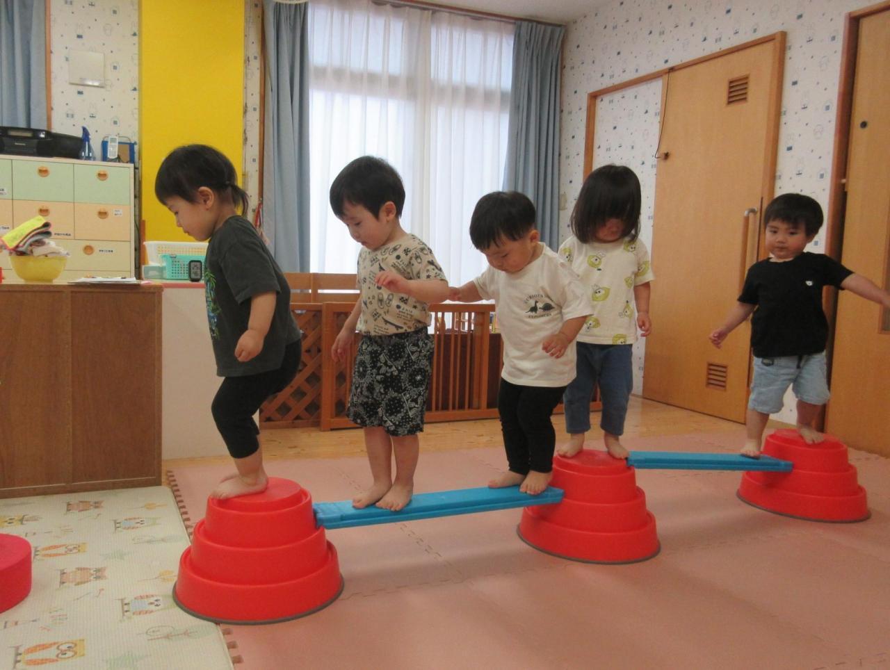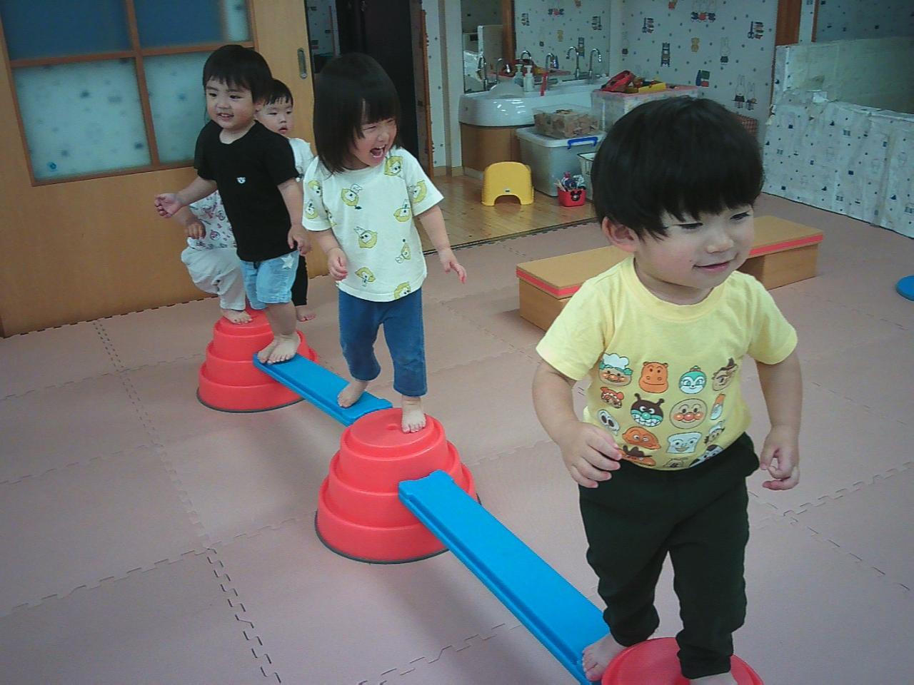 跳ぶ、くぐる、渡るなど様々な動きを楽しめるようにサーキットを作り楽しんでいます💕サーキット遊びでは思う存分身体を動かす事はもちろん、順番を守ってグルグル回ったり待つこと、安全に遊ぶ約束を一つ一つ知らせていっています✨