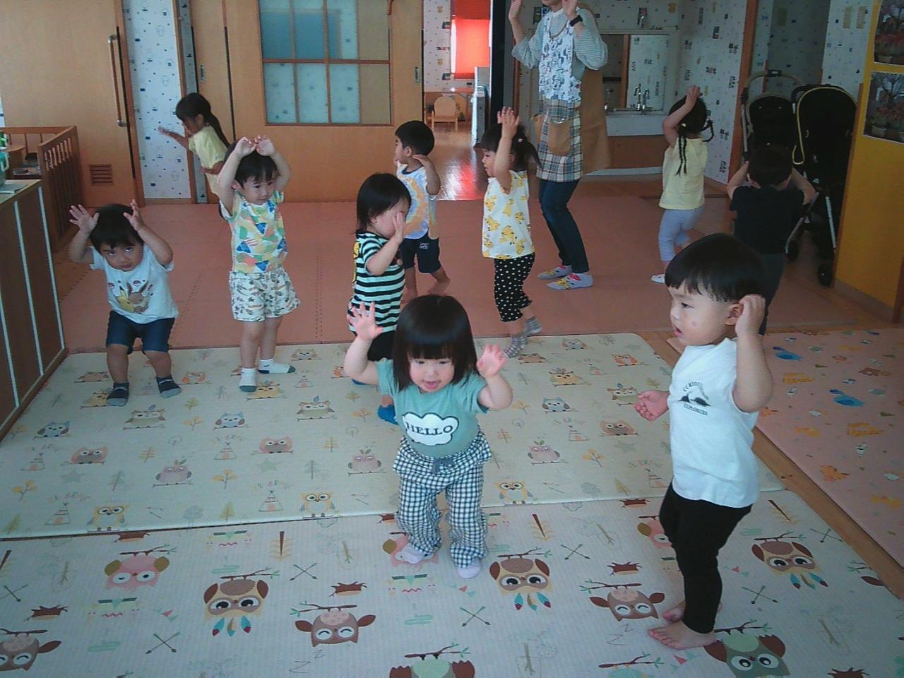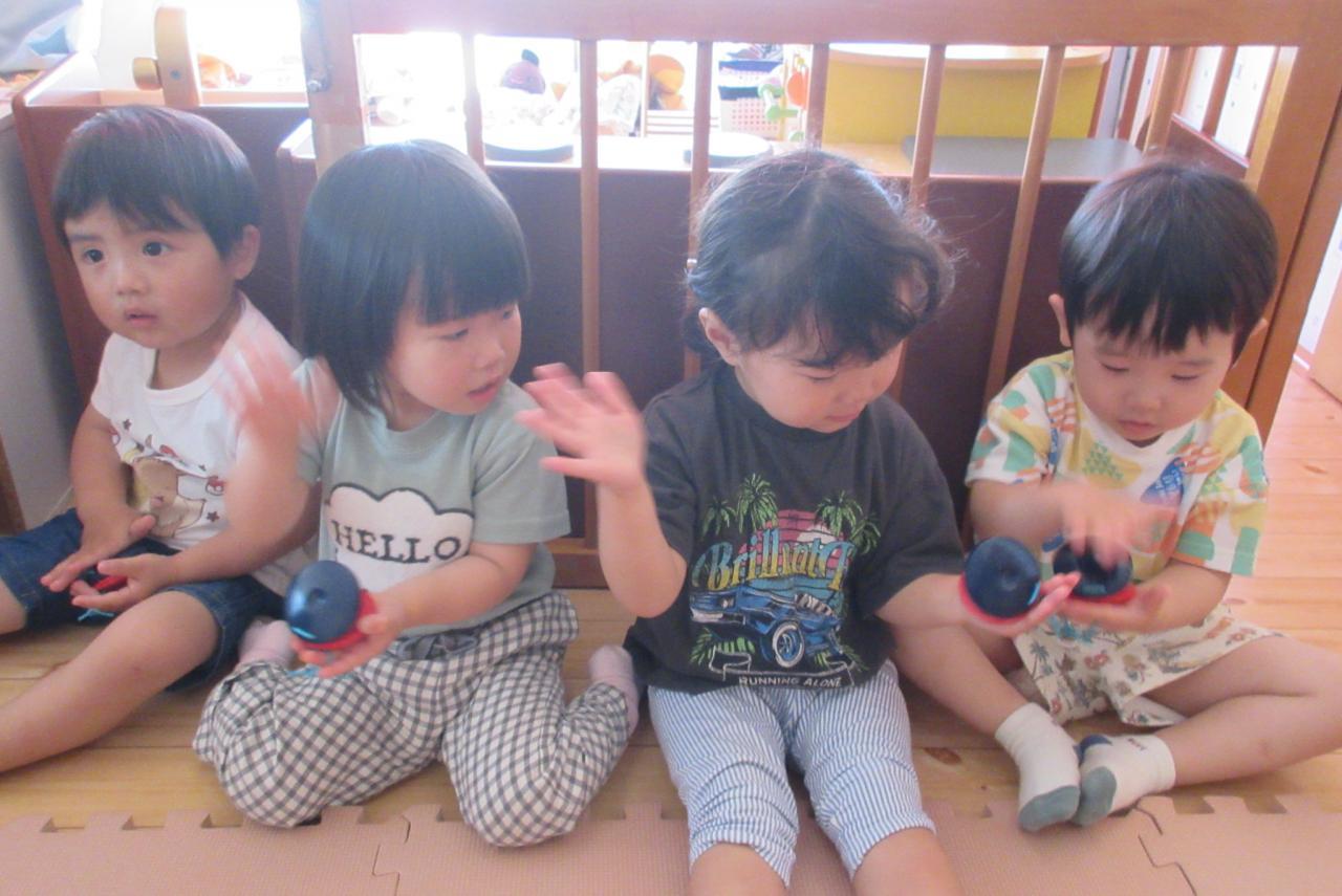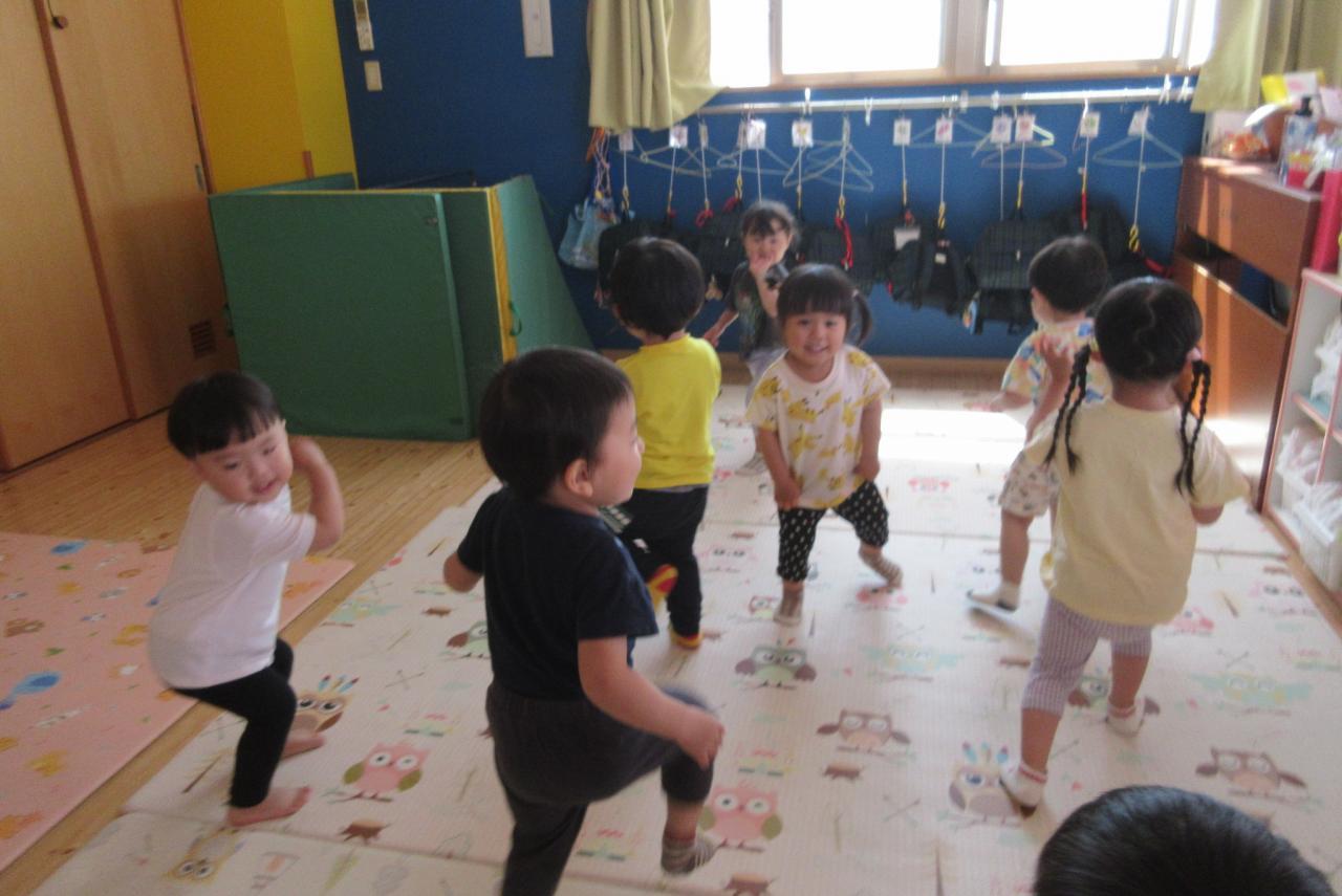 リズム遊びでは皆ピアノに合わせて自分なりに身体を動かしたり止まったりカスタネットを使ってリズム打ちにも挑戦しました!!
