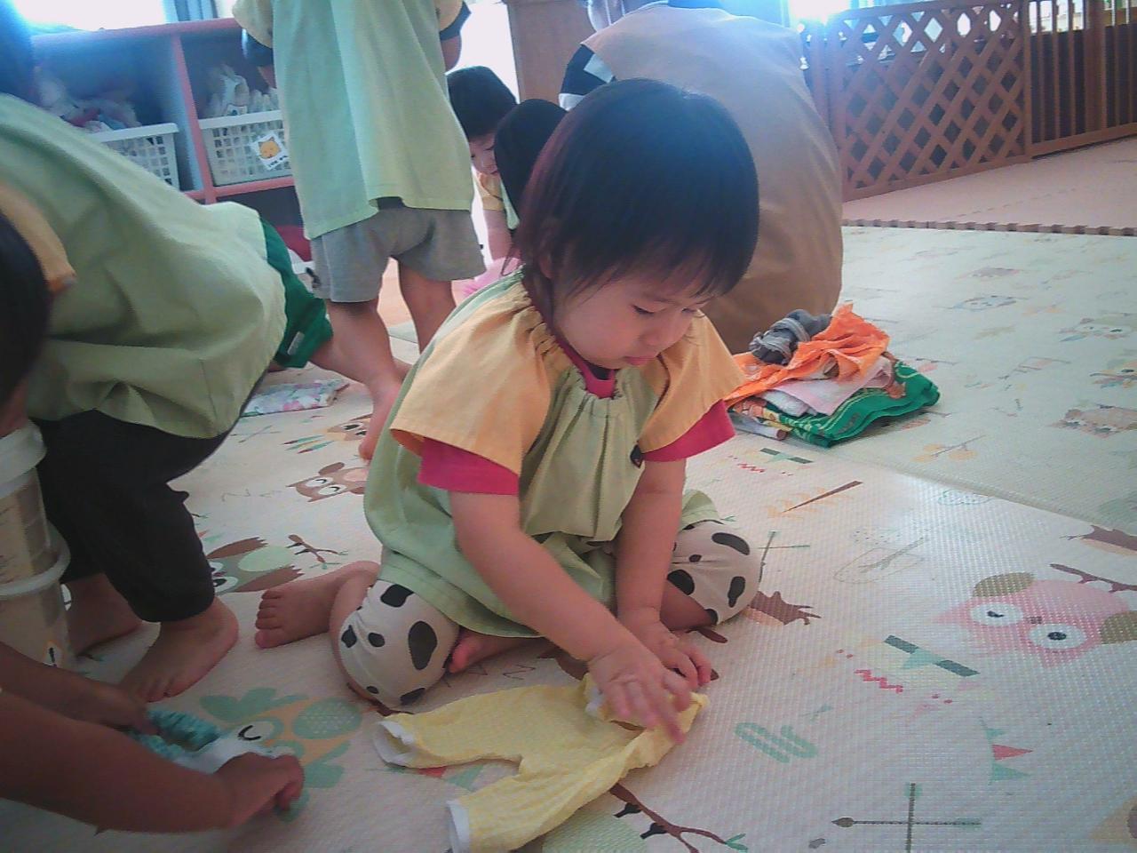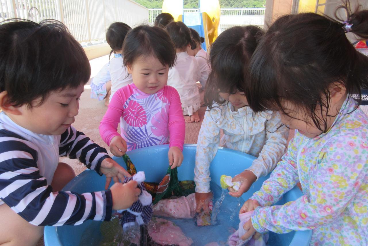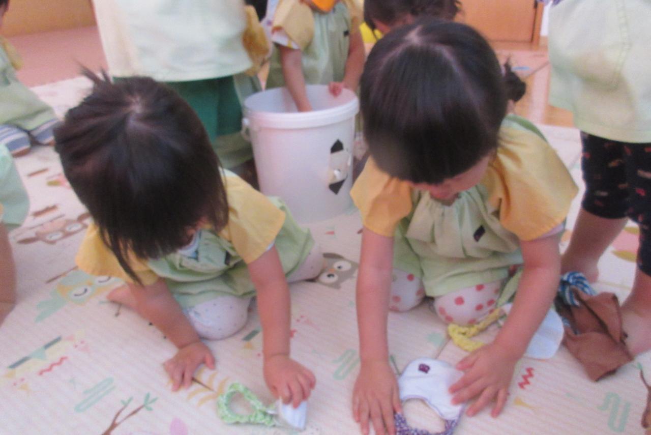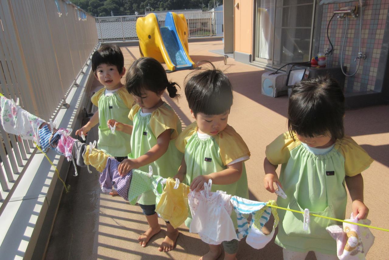 洗濯ごっこの最後には「いつもお家の人がみんなの服を洗ってくれているんだよ」