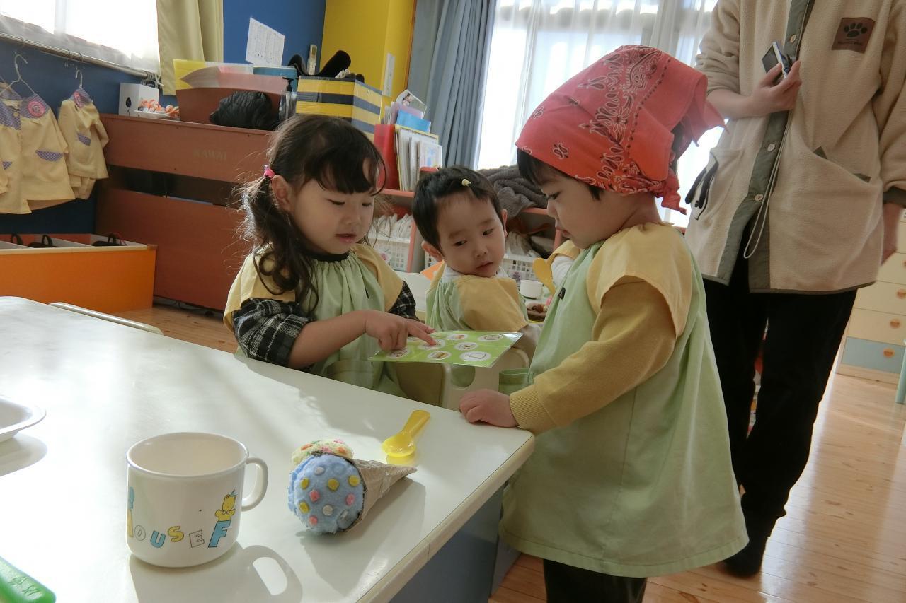 お店屋さん、お客さんに分かれてごっこ遊びをしました✩