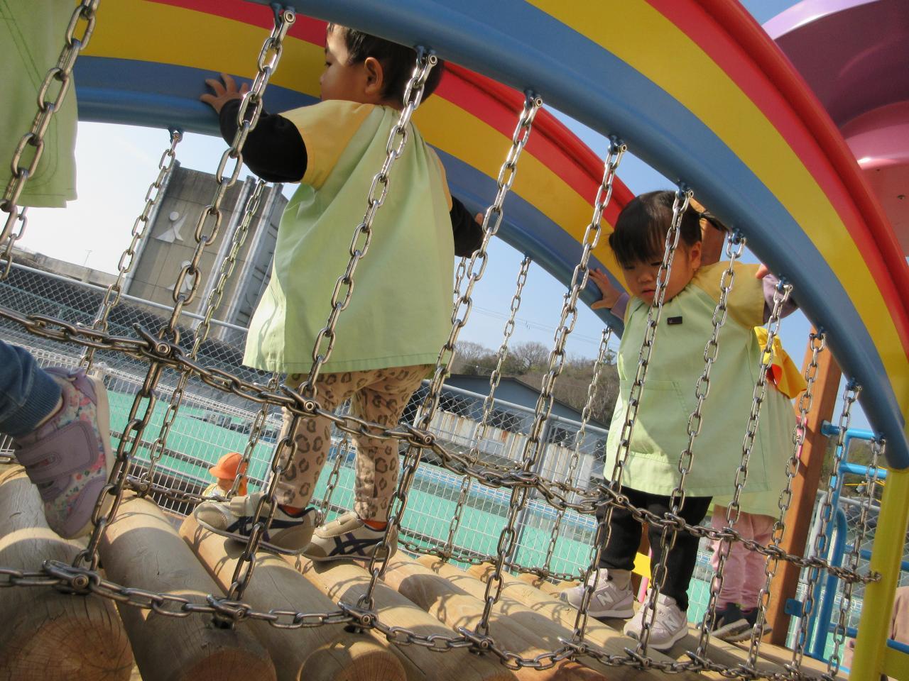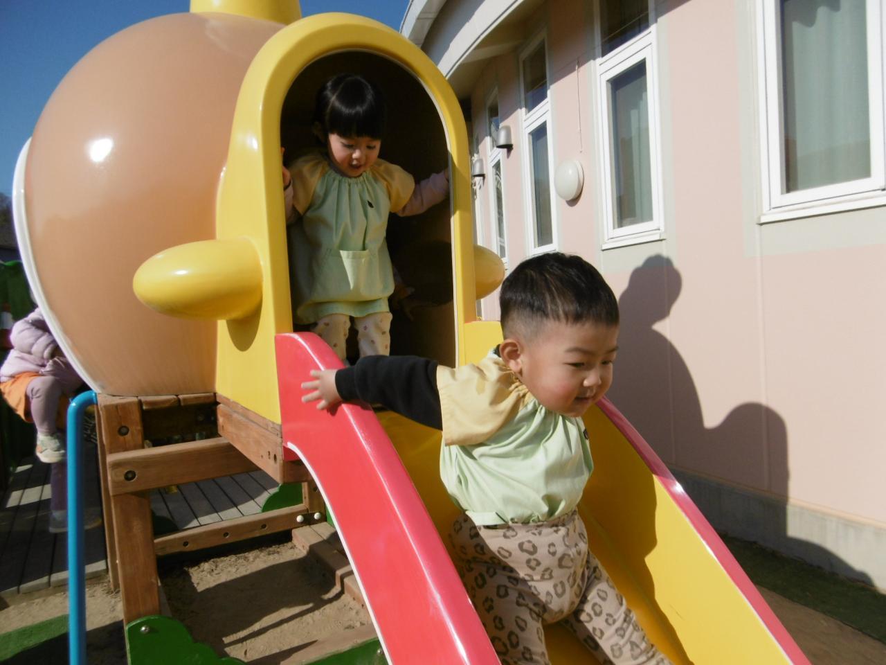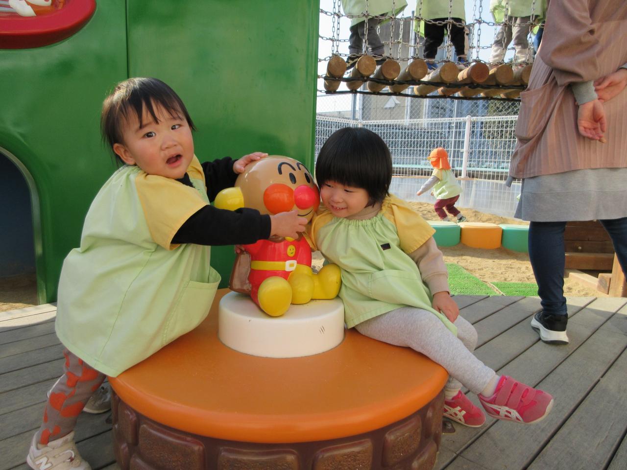 練習を頑張った後は、園庭に出てたくさん遊びました!園庭に出てすぐアンパンマンを見つけ「アンパンマン!!」ととても嬉しそうにしていました😆
