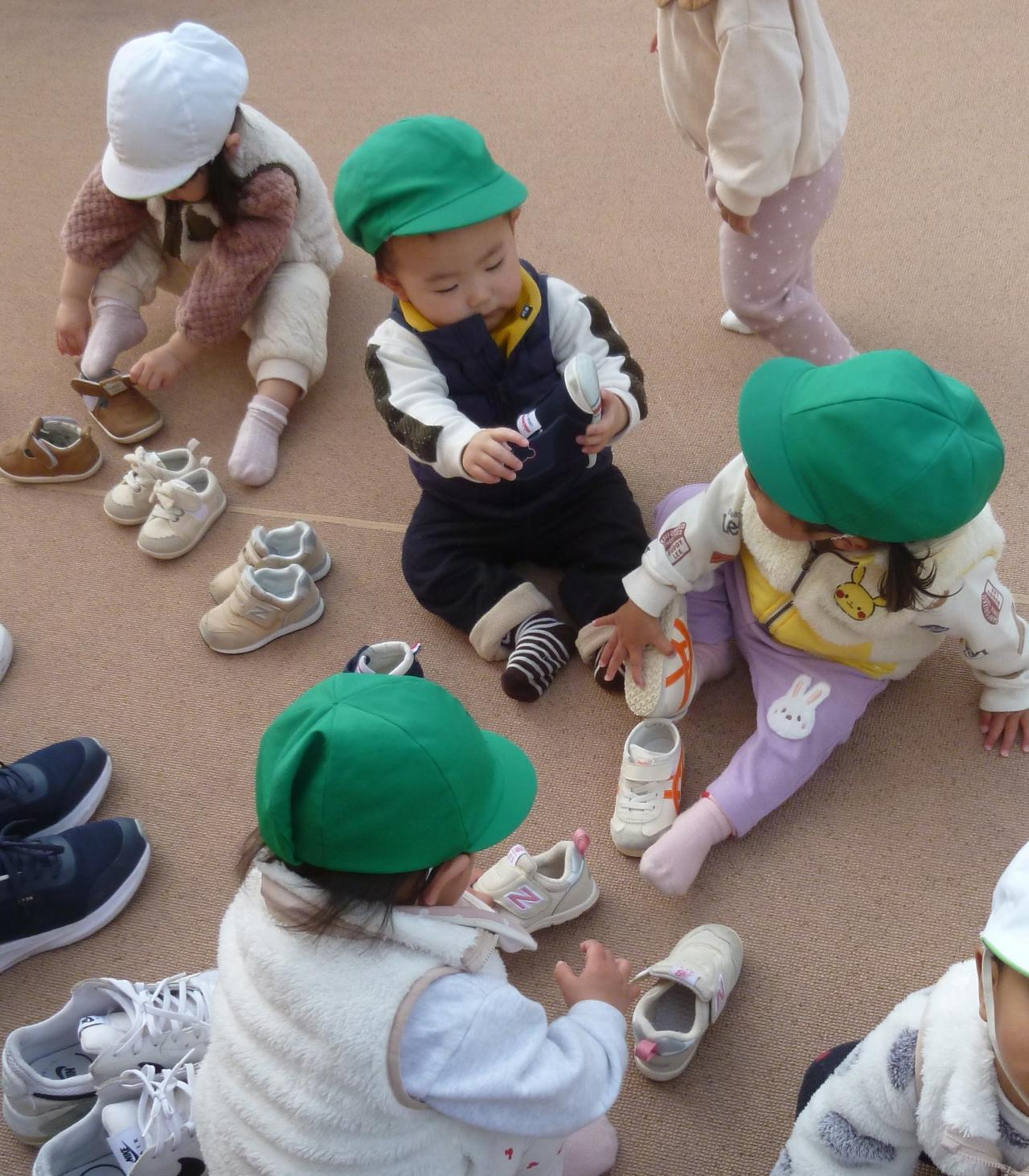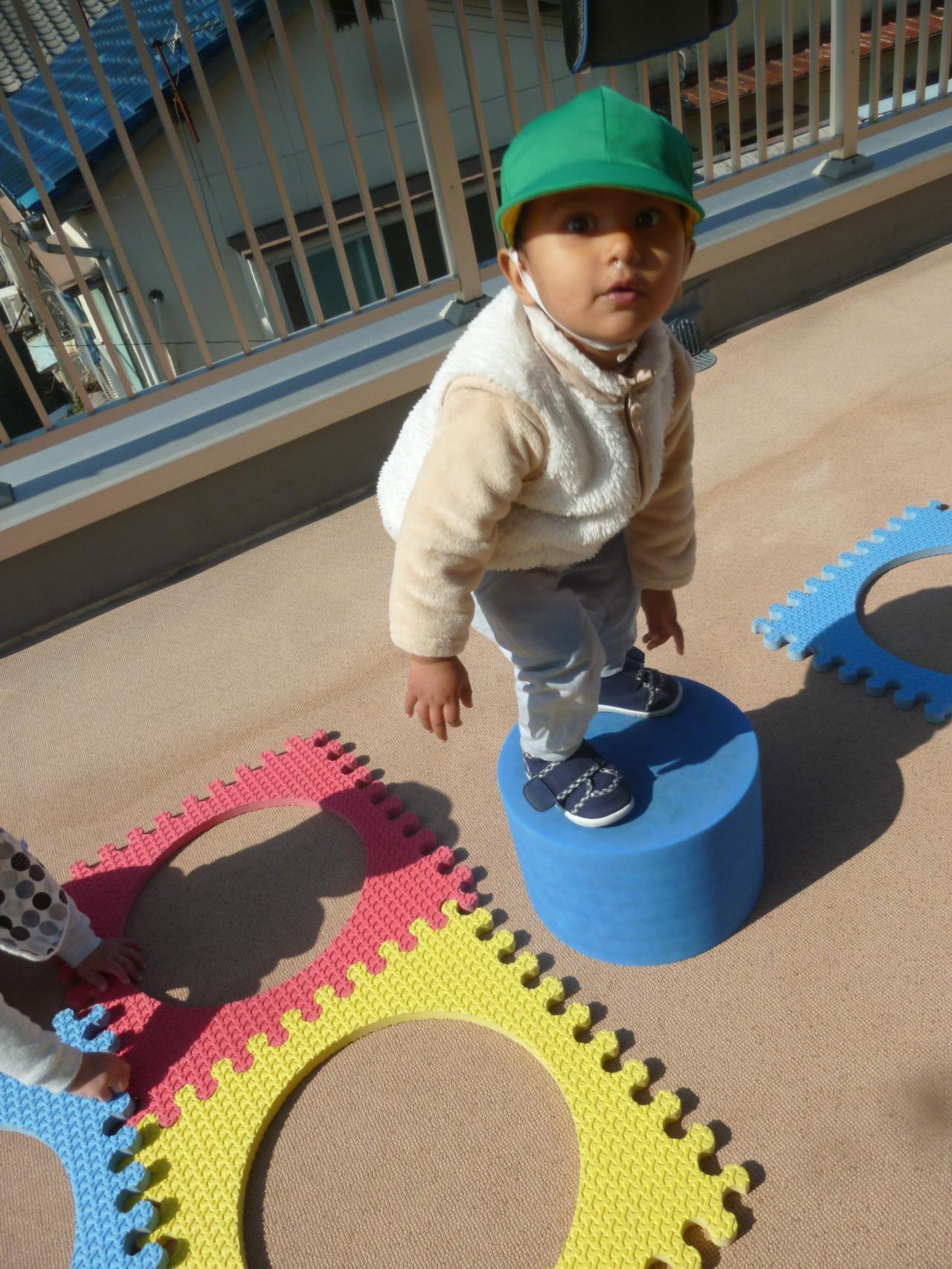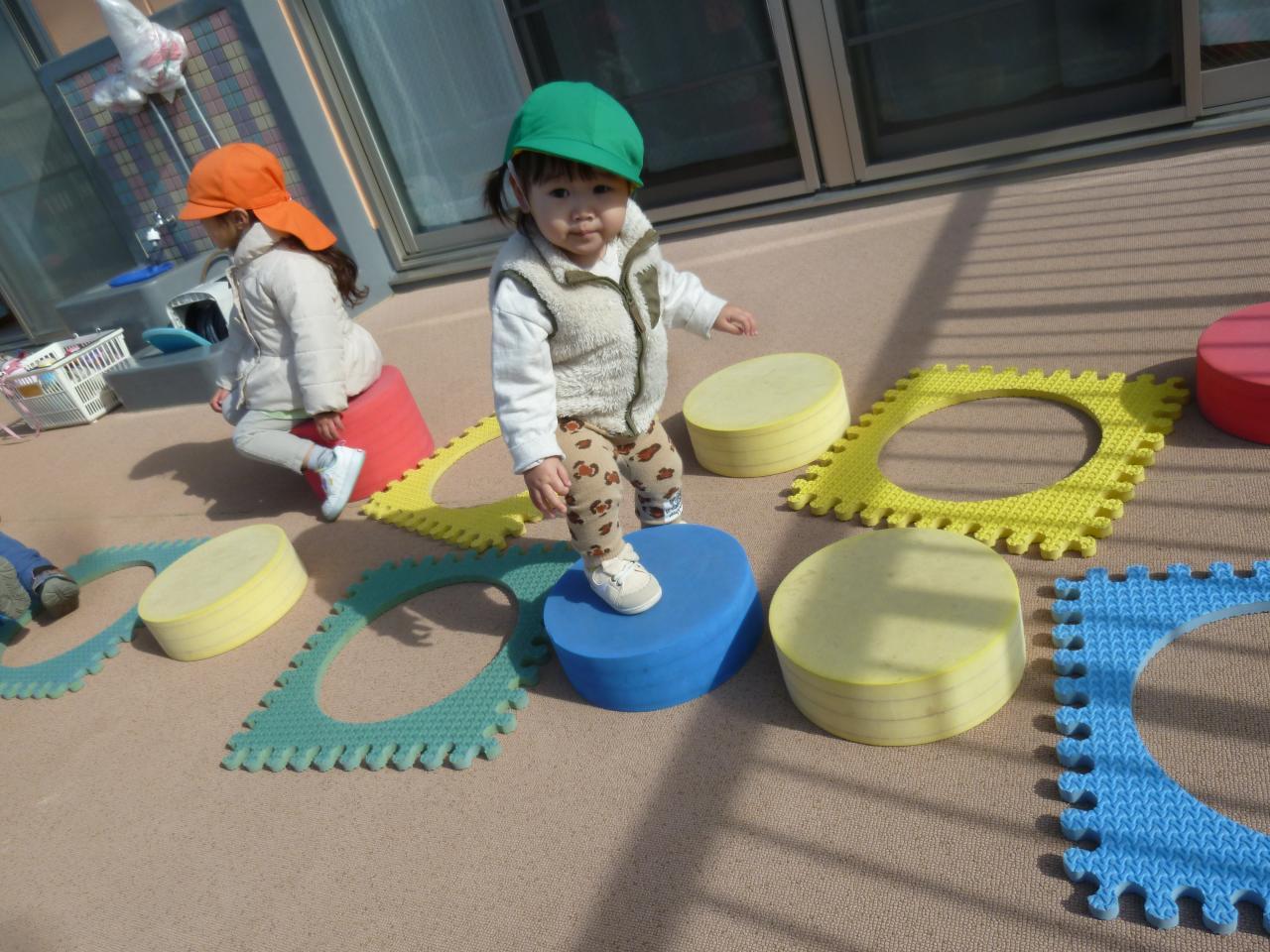 少しずつあたたかくなりさくら組さんはテラスにでて存分に身体を動かしています🙂身の回りのことに少しずつ興味を持ち始め、自分で帽子や靴を被ったりはいたりしようと頑張っています❗