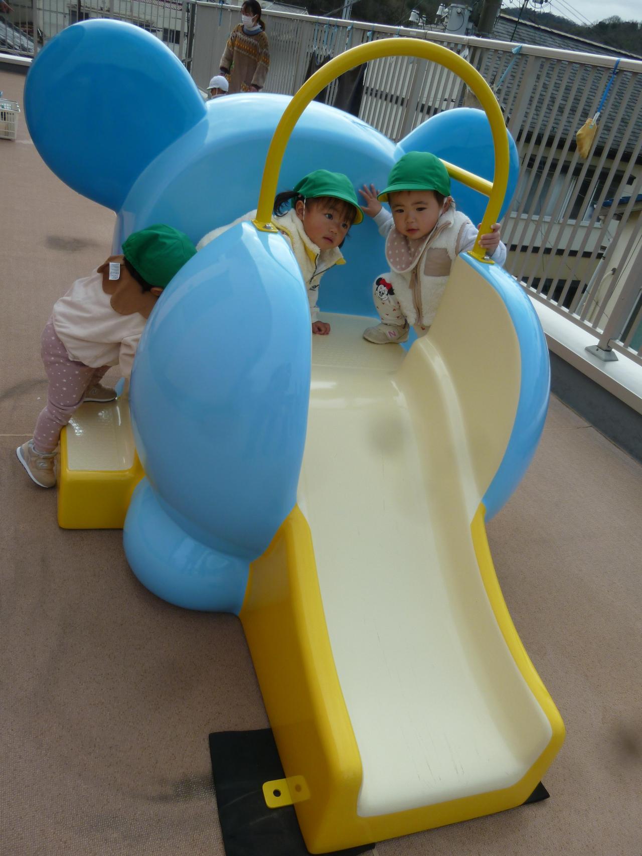 ぞうさんすべり台が新しくなり、大喜びの子ども達です😝