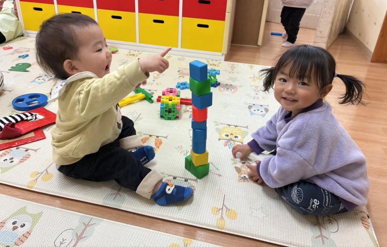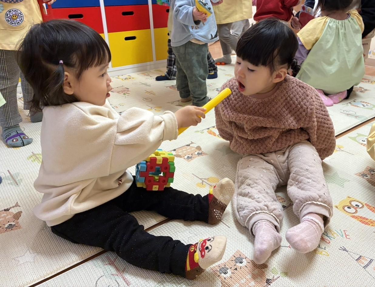 さくら組さんはここ最近で友だちの存在に気付き関わろうとする姿が各々にたくさん見られるようになりました🙌一緒に1つの遊びをしたり玩具を共有したりできるようになりました。