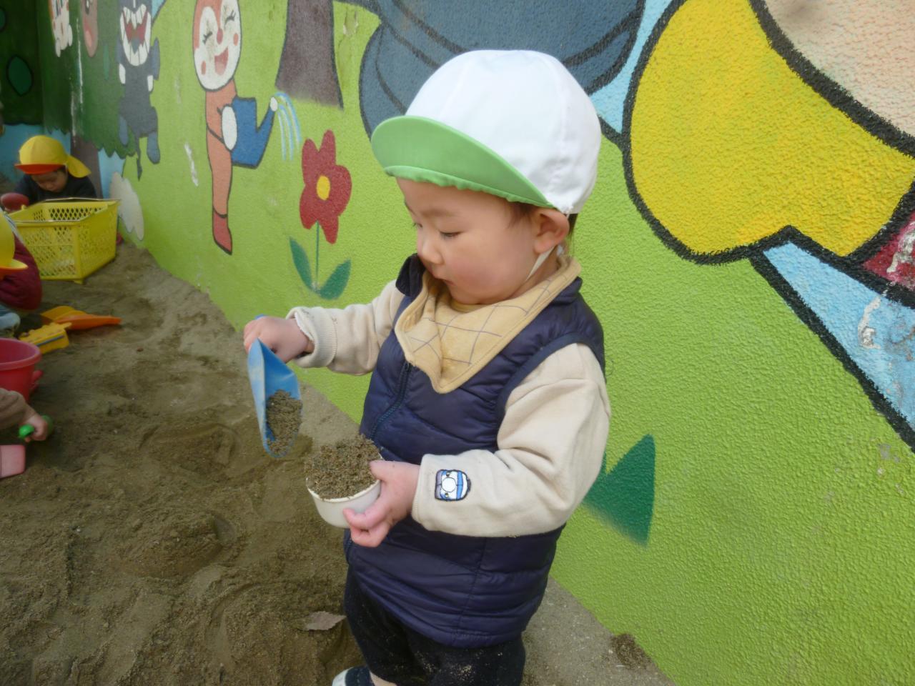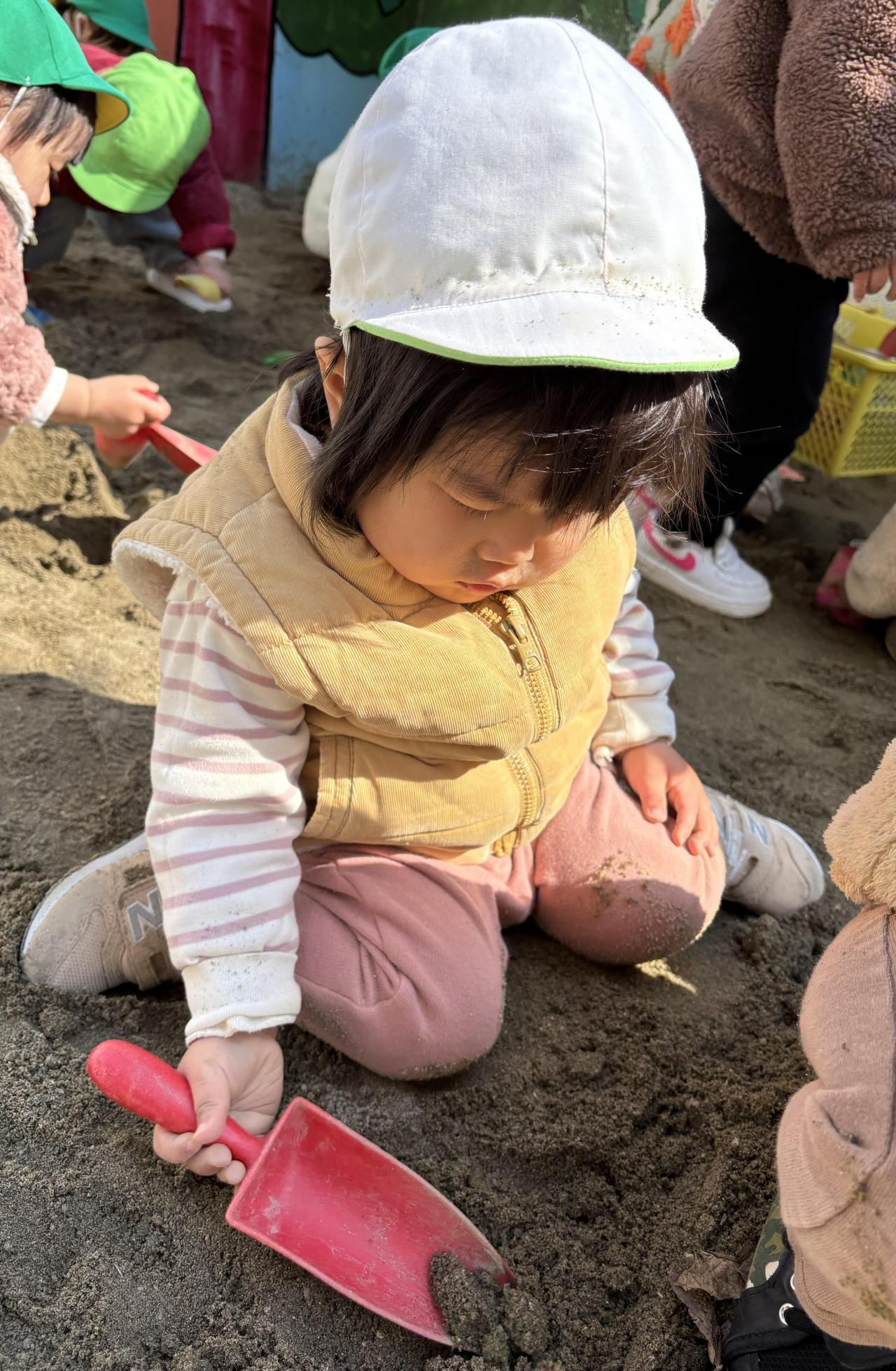 先日初めての砂場にいきました😄初めて砂を触る子もいて嬉しそうな姿が印象的でした‼両手で砂の感触を楽しんでいました😀