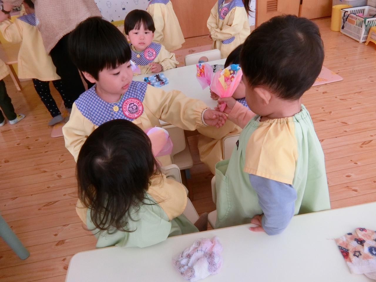 その後は、たんぽぽ組さんに手作りの花束をプレゼントしました🌷