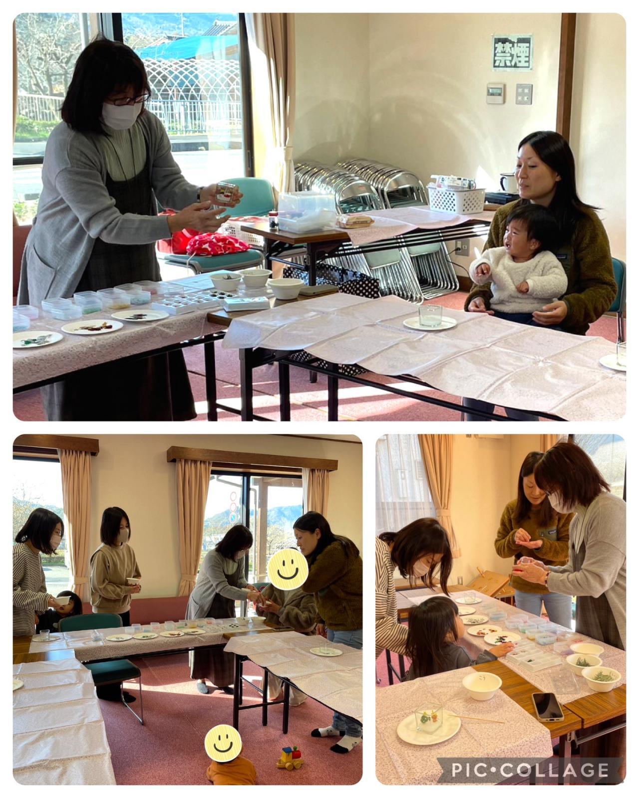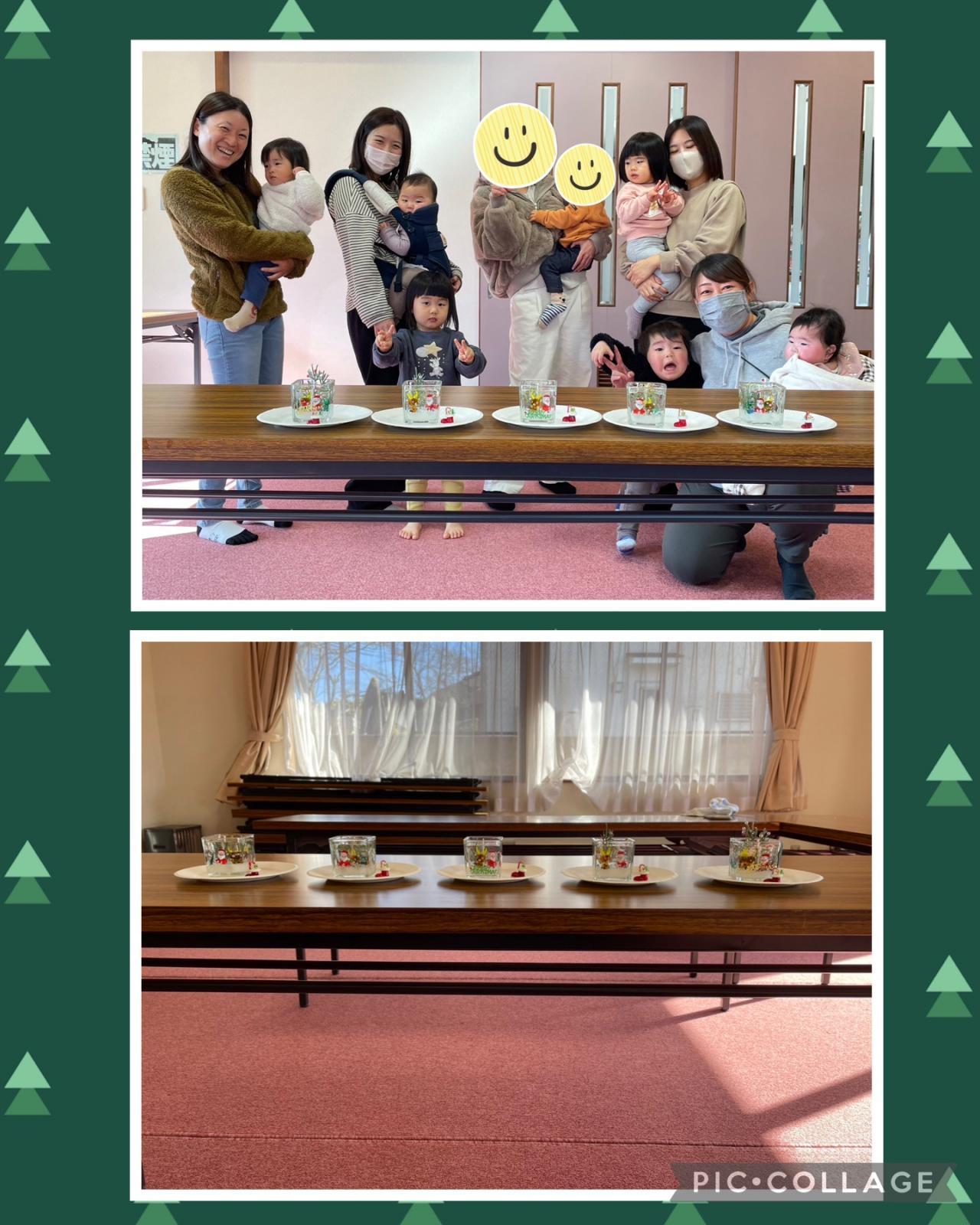 『mimiと灯り』の足立洋子さんに来ていただき、可愛いサンタクロースやトナカイをグラスの中に入れ、ビーズやスパンコールで飾りました。飾りが出来上がったところへ熱く熱したジュレを流し込んで固めました。
