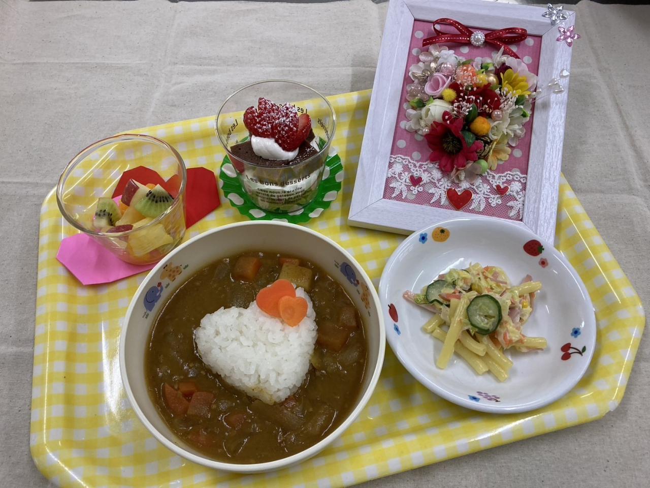 チョコレートは入っていないけど、バレンタイン気分を味わった給食とおやつでした♡