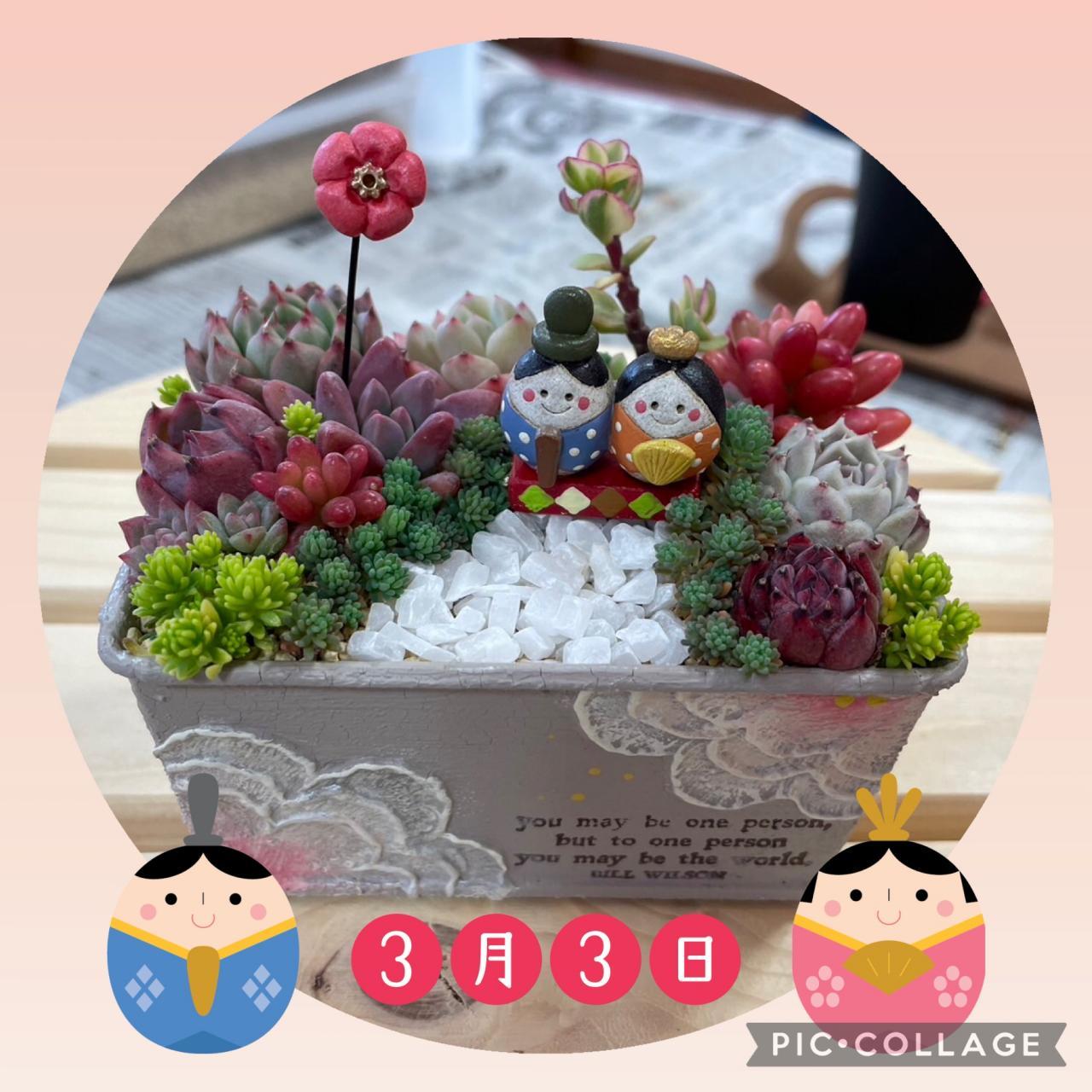 今日は多肉植物を使って、おひなさまの寄せ植えをしました。