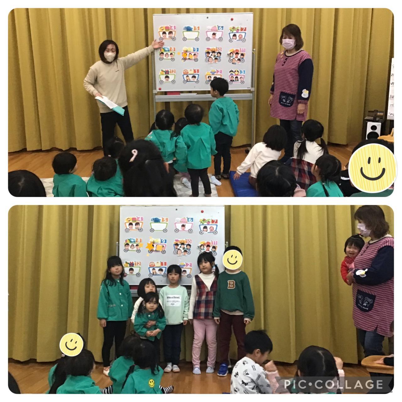 年度最後のお誕生日会ということで、一年間を振り返りながら、「この月は誰のお誕生日だったかな〜?」と一人ひとり顔写真を貼りながらみんなで盛り上がりました⭐︎