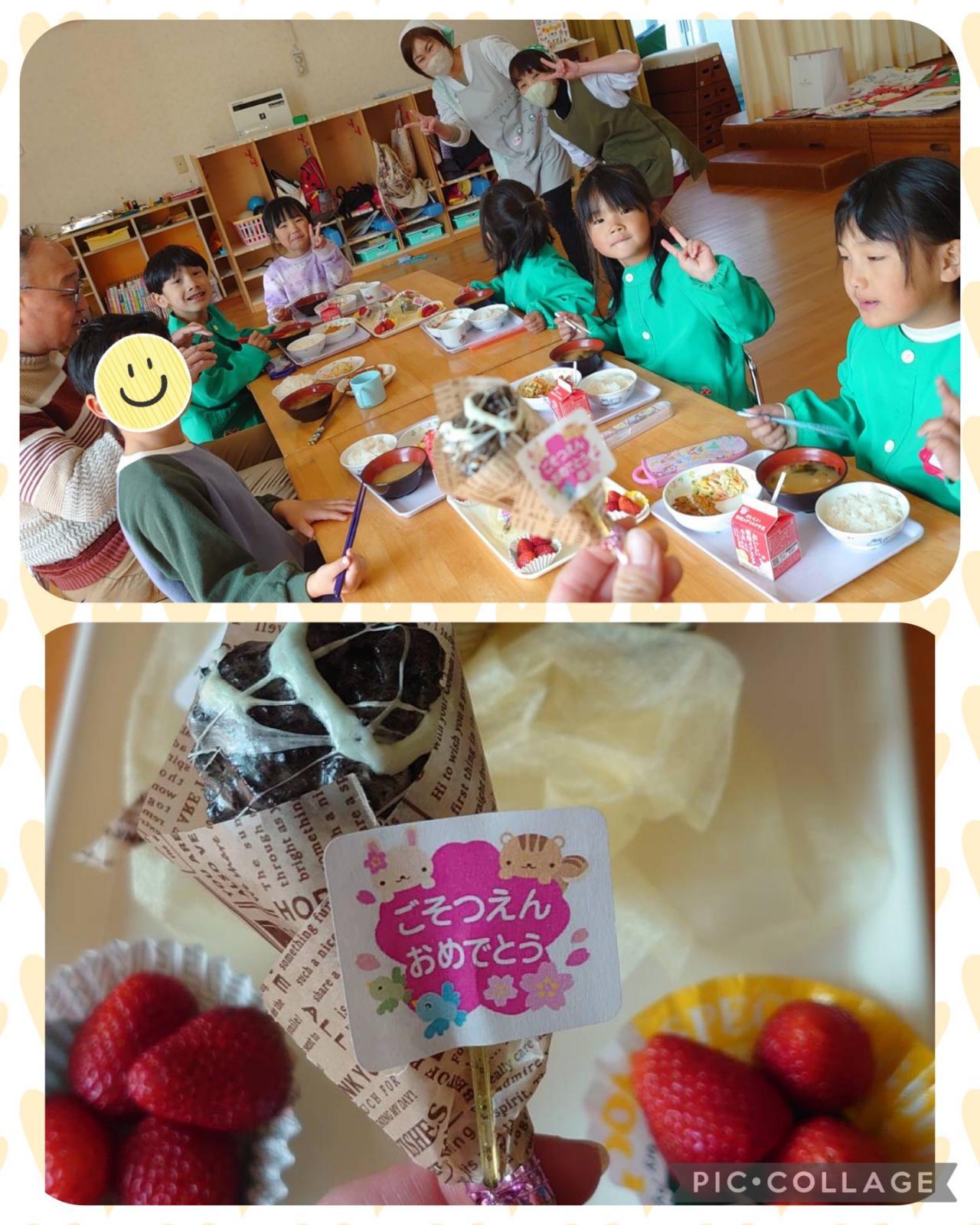 給食の時間には、くま組のみんなが「もう一回食べたい!」と言っていたお菓子を衣巻先生・古田先生が特別に作ってくれました。
