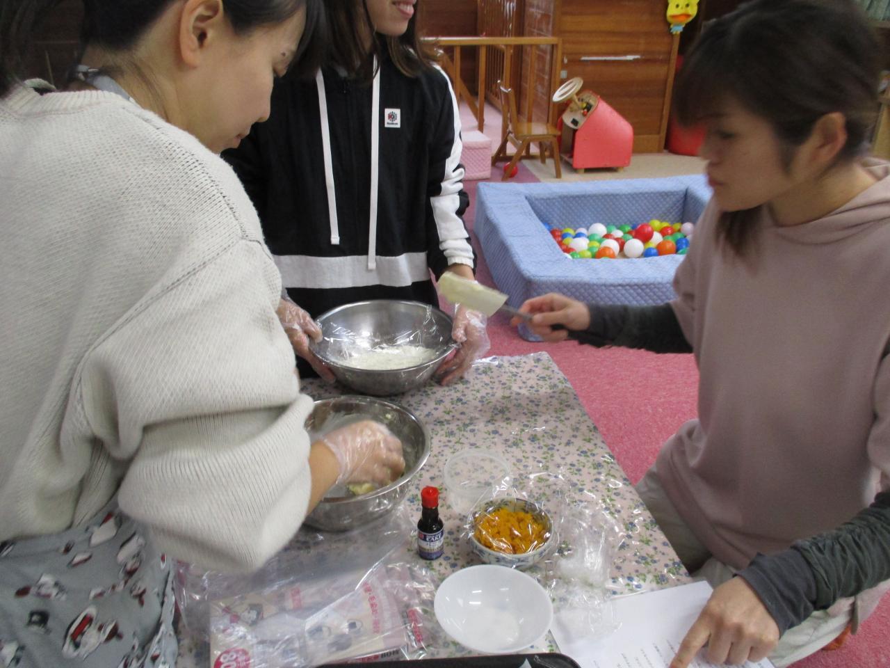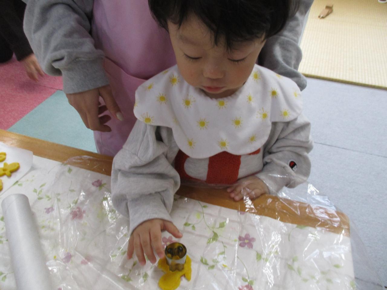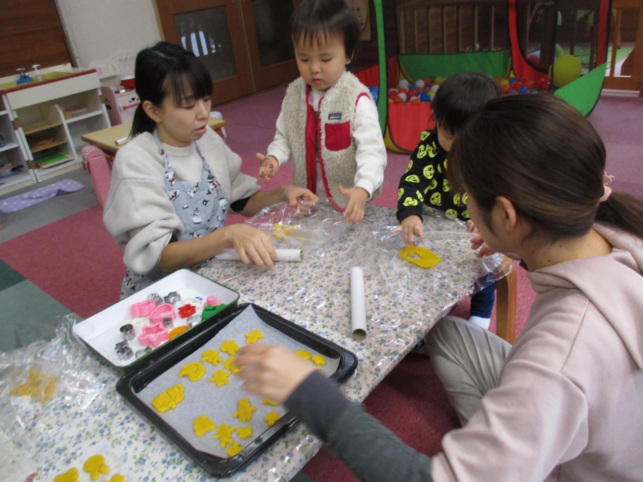 こどもたちもお手伝い!好きな型で型抜きにも挑戦です😀