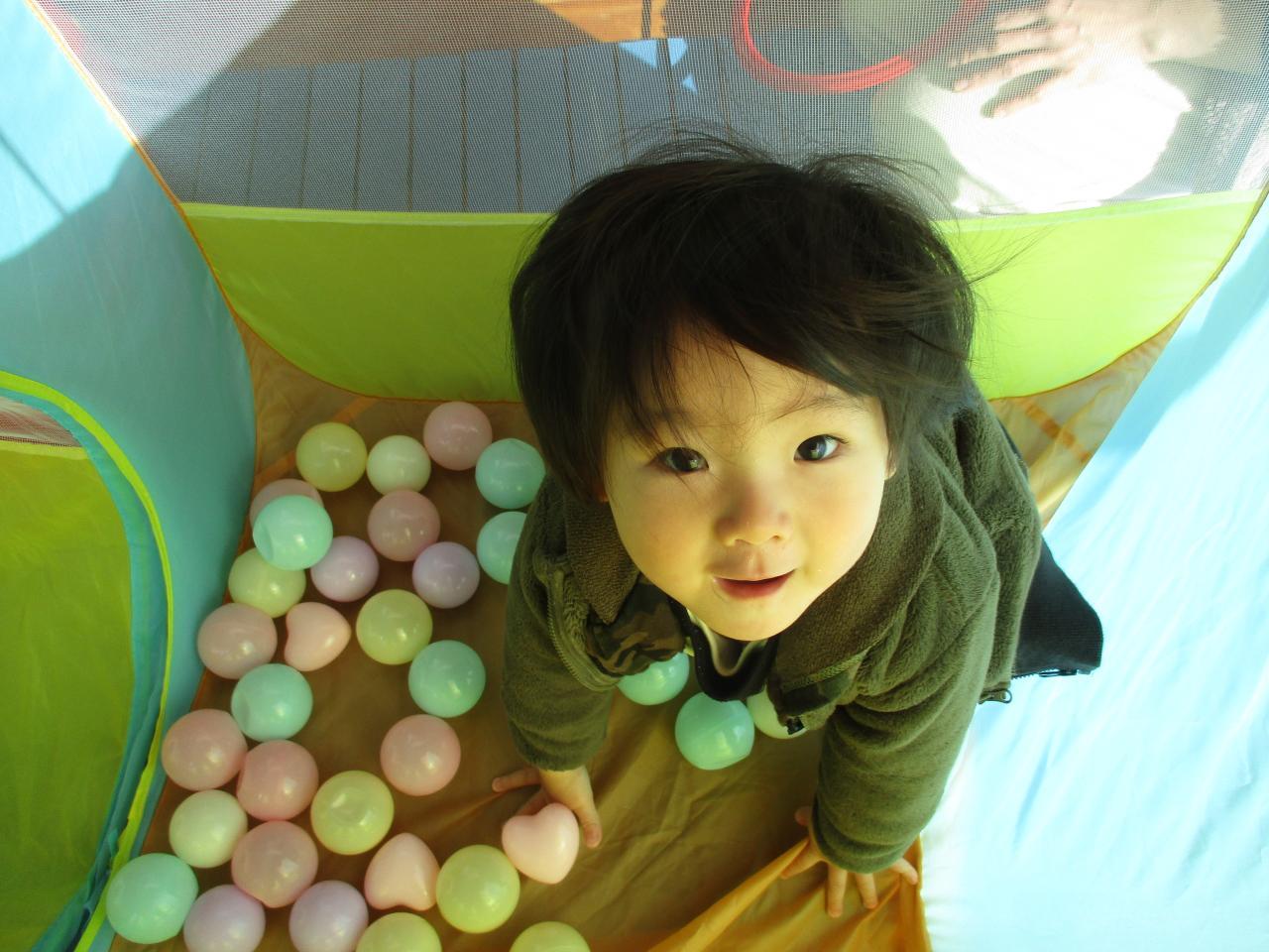 あれ~っ!いい穴見つけボールをどんどん入れてます😀