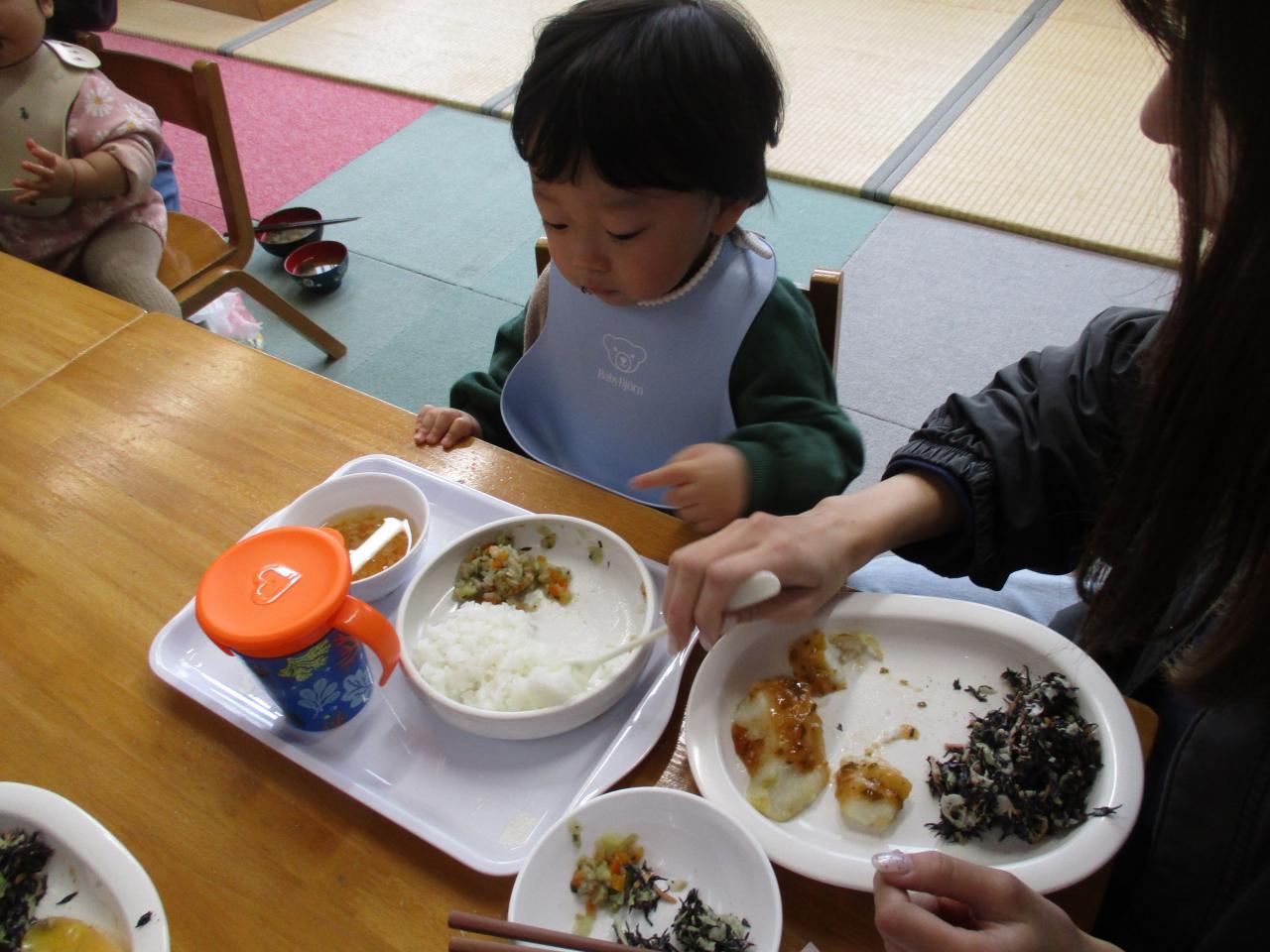 ぼくは離乳食です 軟飯・食べやすいように刻みや食材にも工夫がされてました