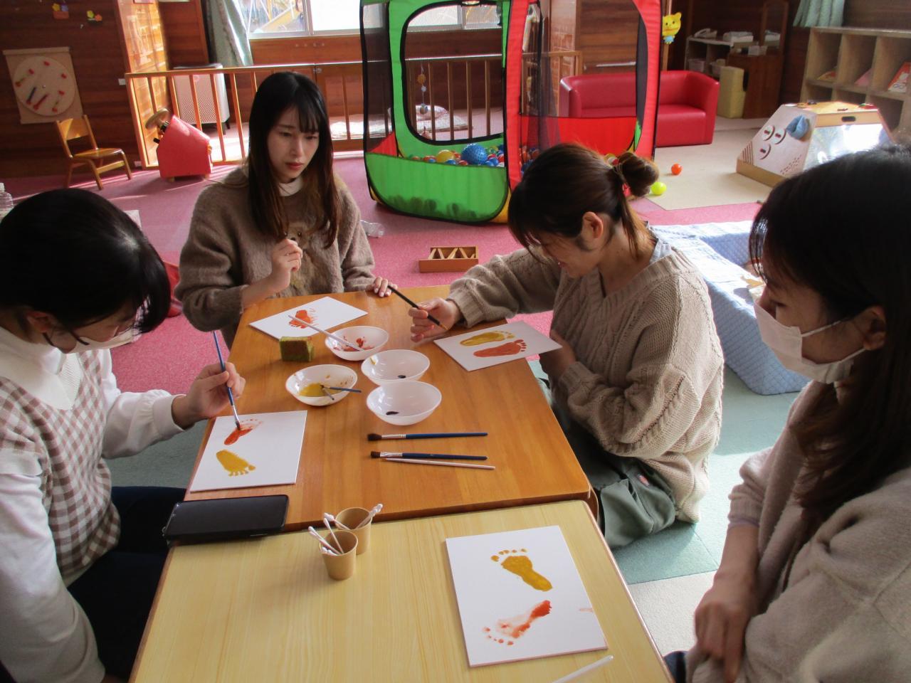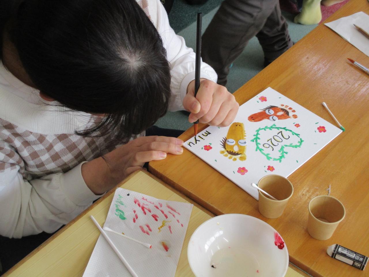 小野千菊さんを講師に迎えて今年の干支である馬の足型アートを教えて頂きました