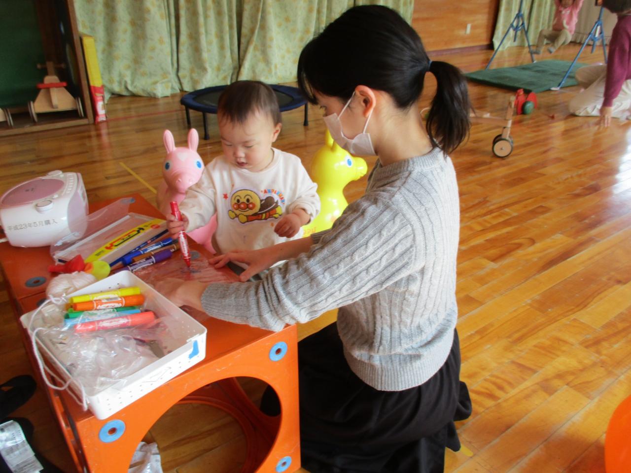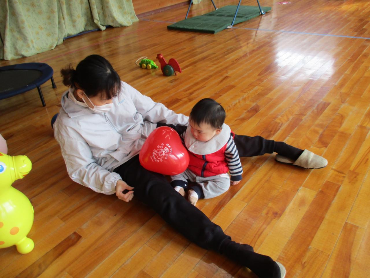 ナイロン袋に絵をかいて紐をつけて持って走ったりお母さんに風船を膨らませてもらい遊びました