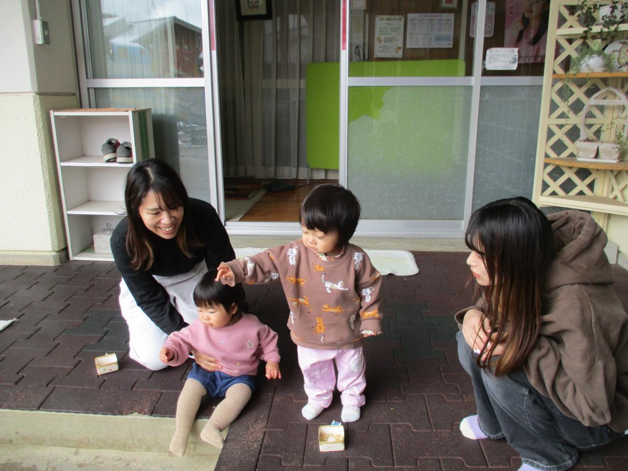 テラスから おには~そと ふくは~うち ぽろぽろっとうまくまけました❣