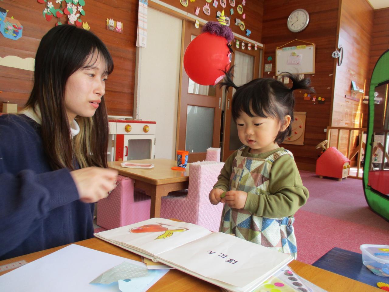 絵本を見たりしながら僕もシール貼ったよ 😀