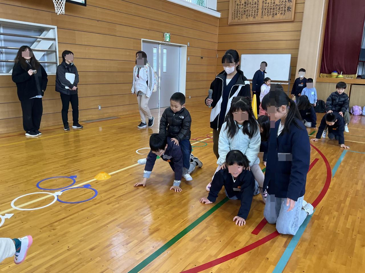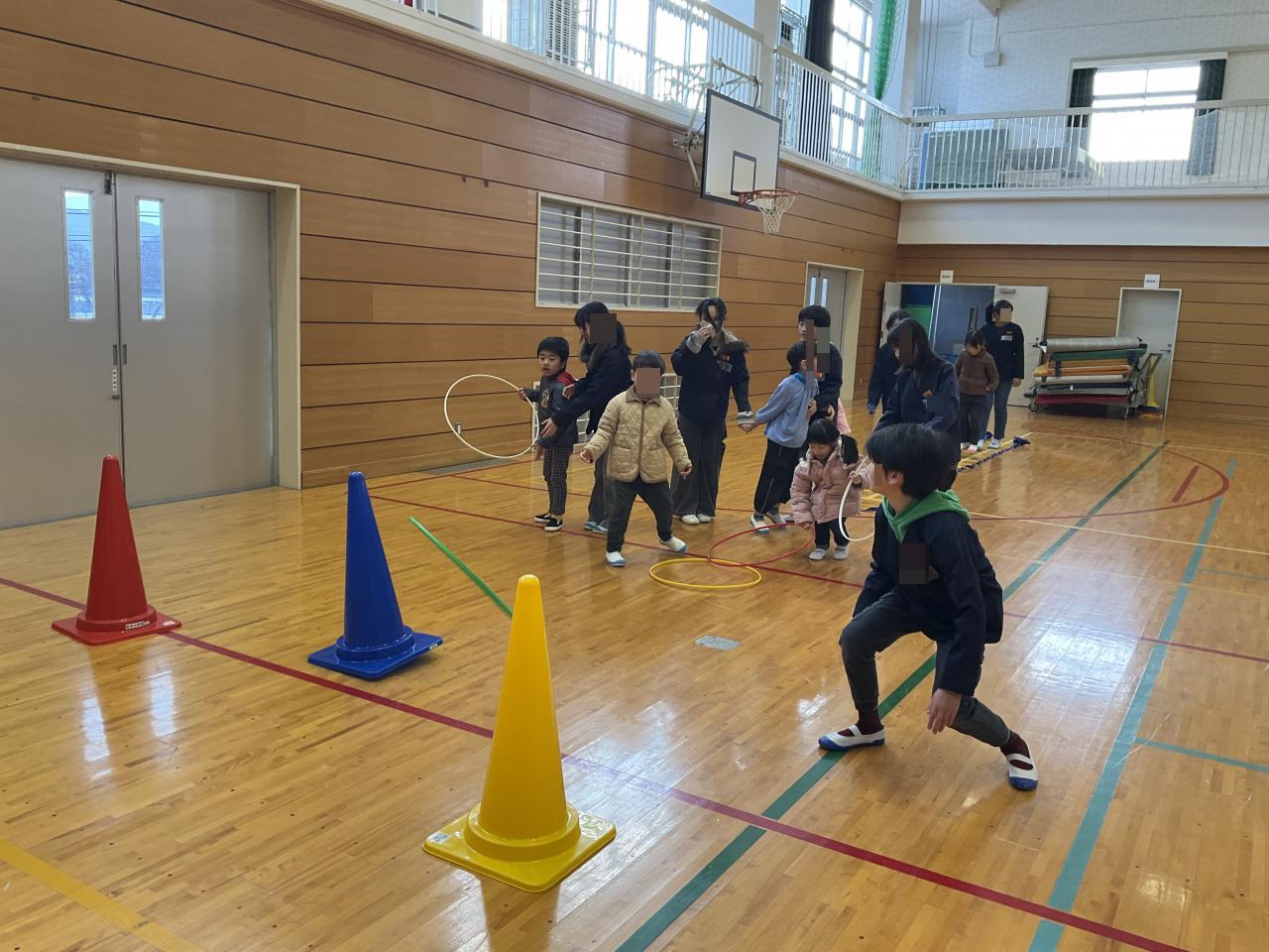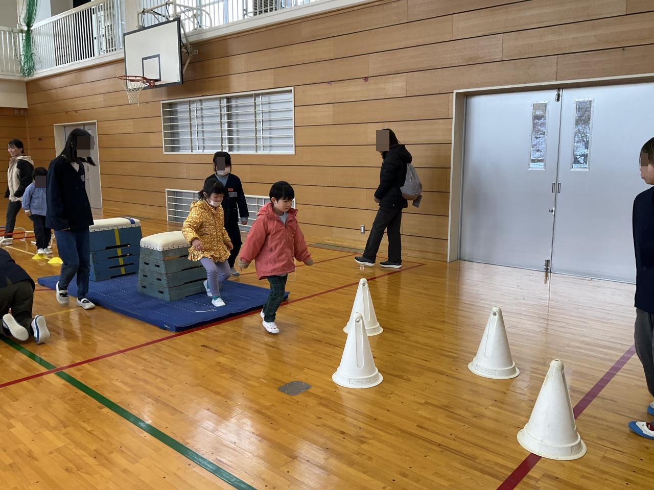 体育館でお兄さん、お姉さんとペアになり、だるまさんがころんだや、サーキット遊びをしました🏃✨とても優しく教えてもらい、子どもたちの笑顔がたくさん見られる時間となりました😆