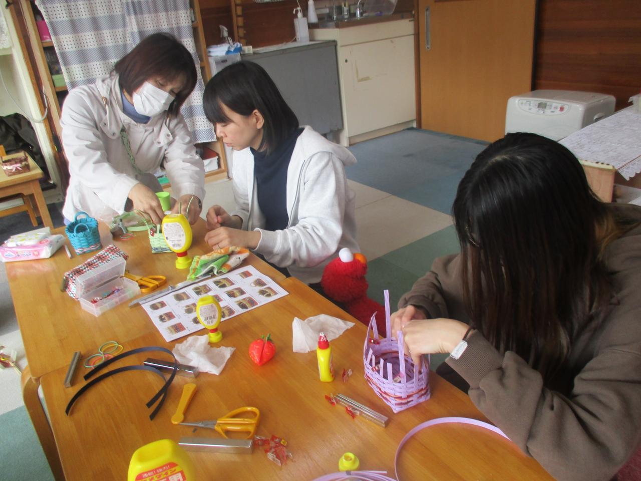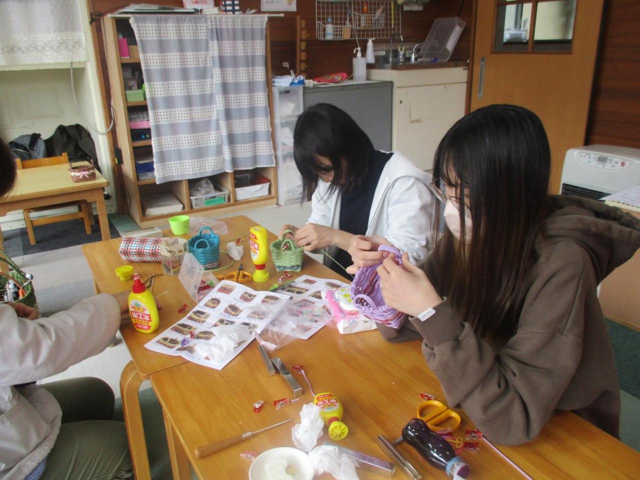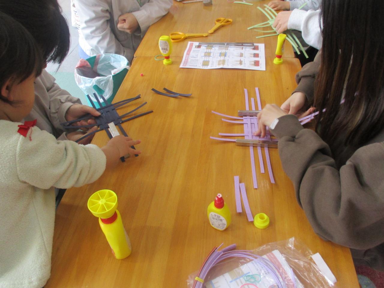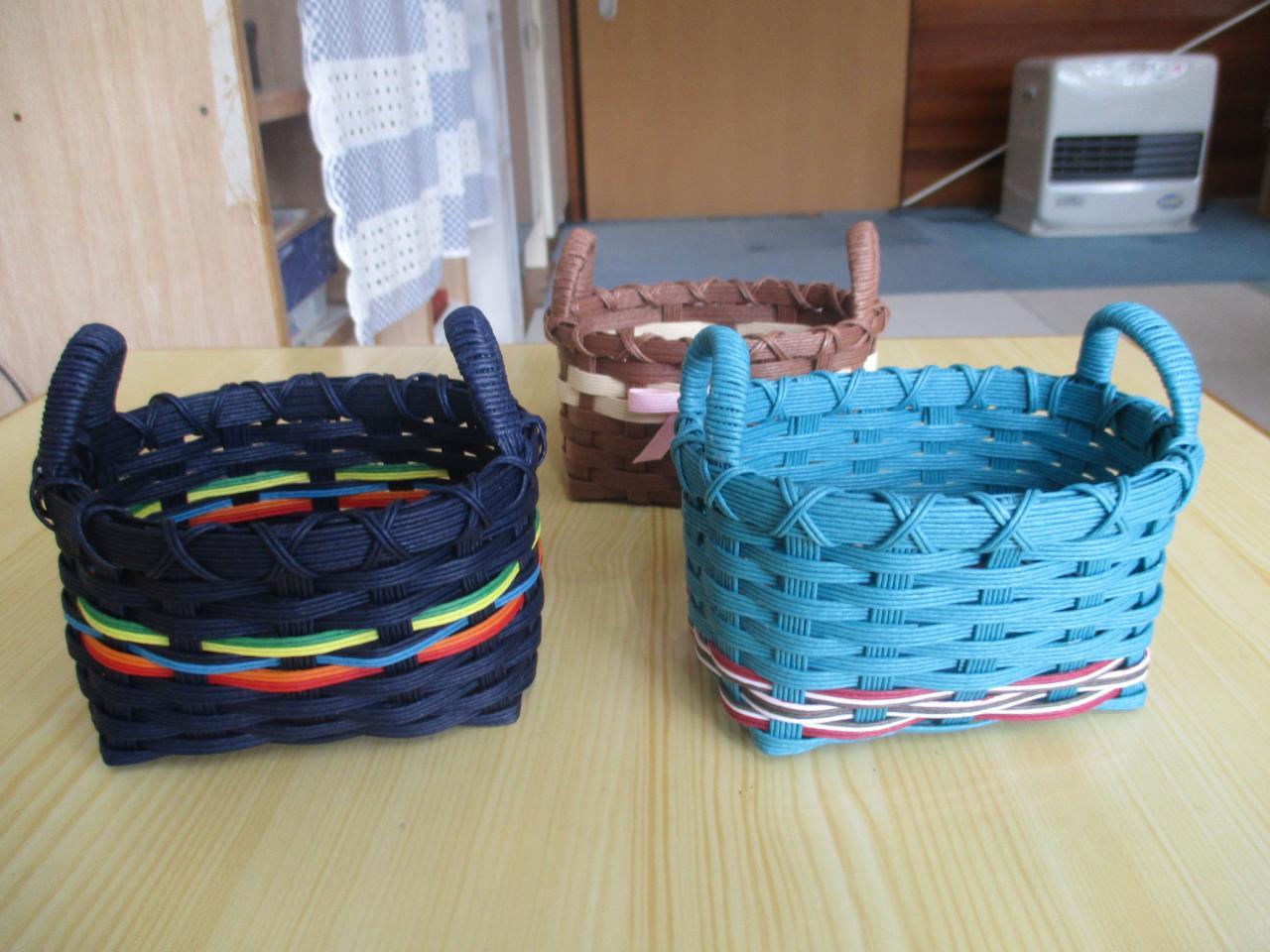 講師を迎えてクラフトバンドを使ってかごを作りました 無言になるくらい一生懸命取り組まれていました😀