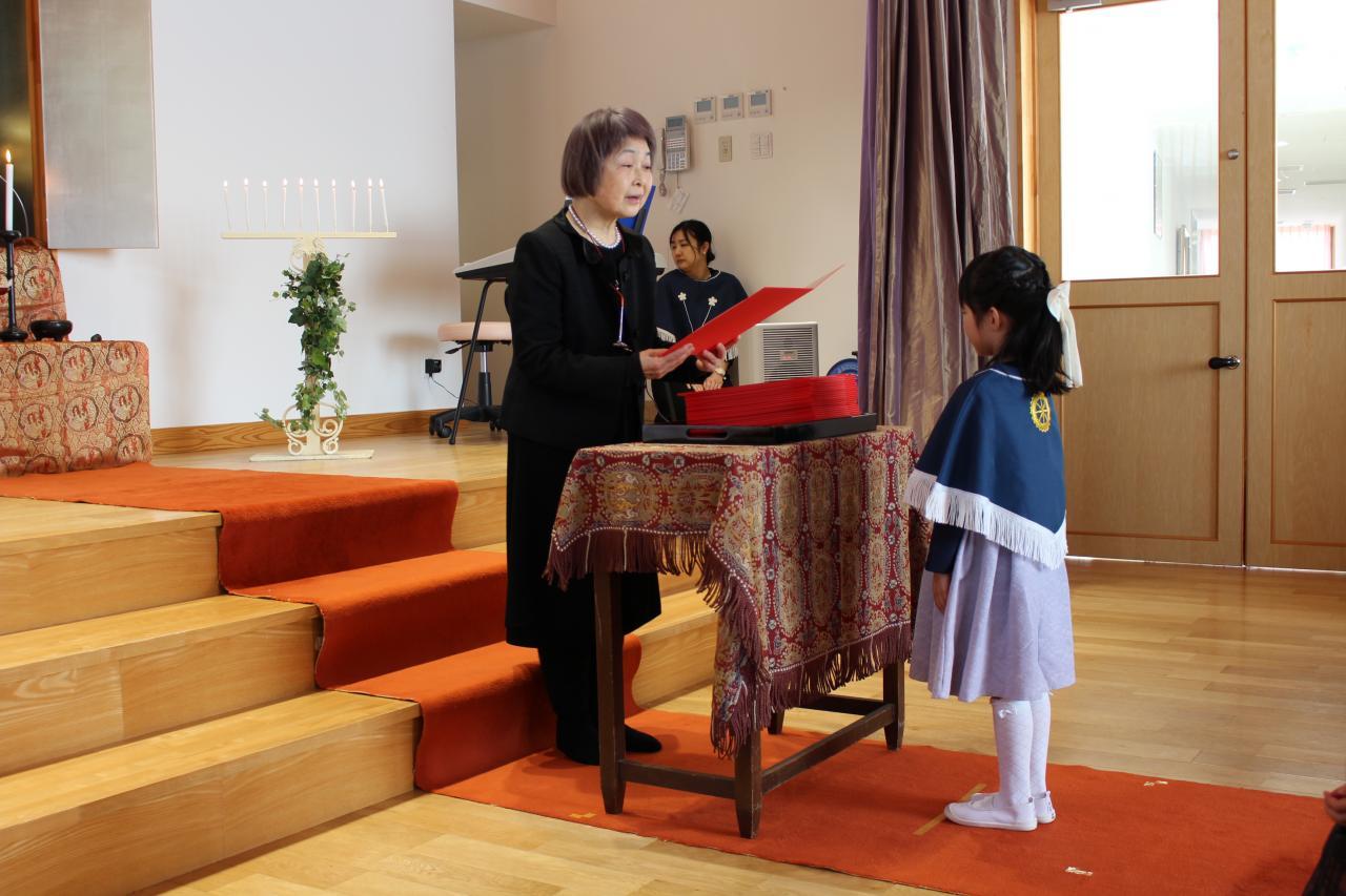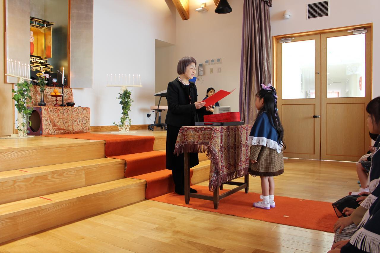 園長先生から卒園証書受け取った子どもたちは、キラキラした表情と共にたくましい姿が見られ、心も身体も大きく成長したことを感じました。