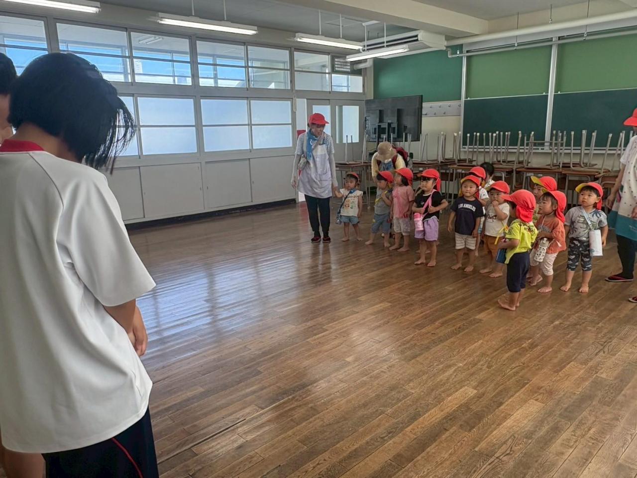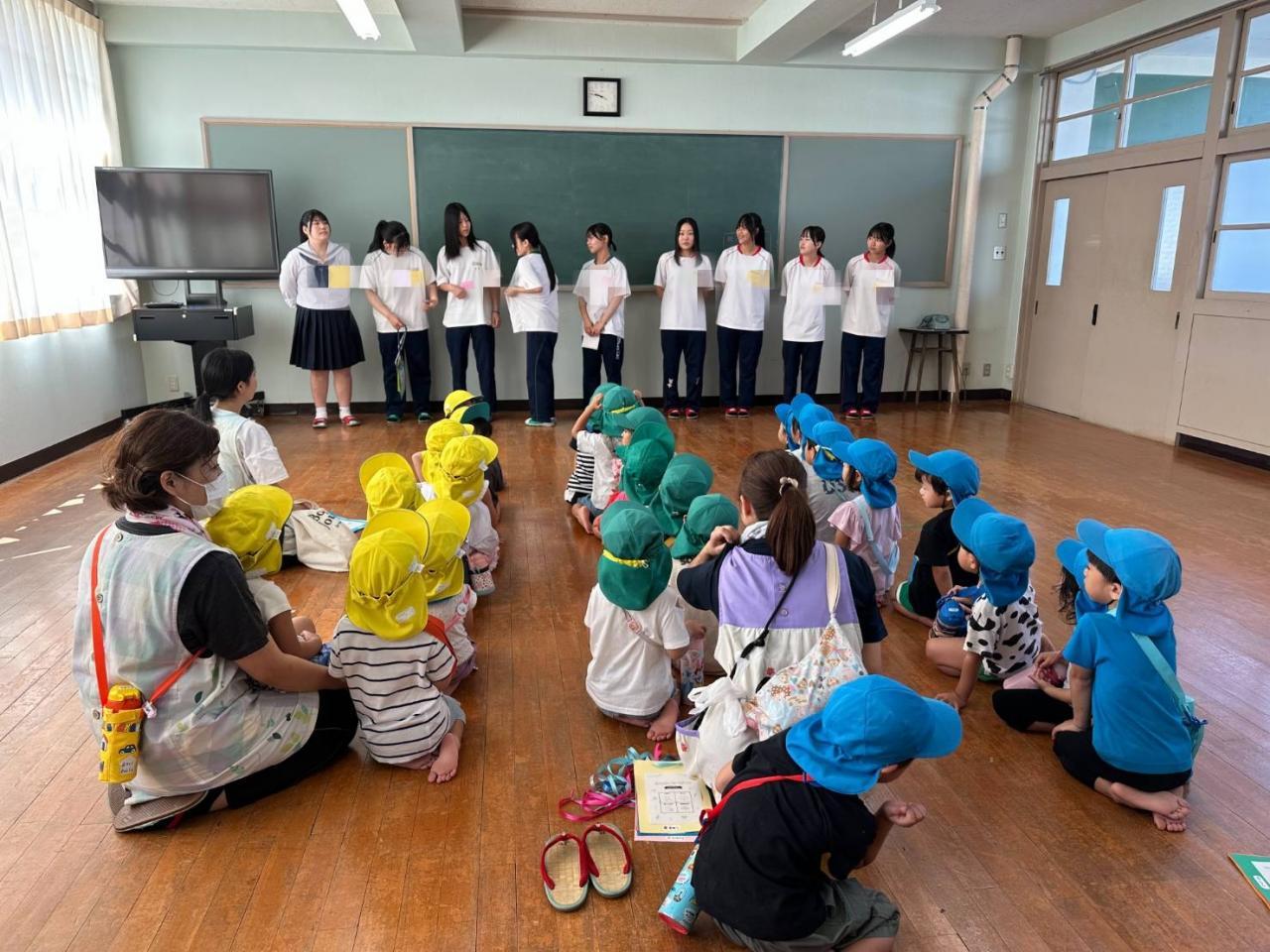 夏まつりの招待を受け、まつ、たけ、うめ、すみれ組さんは高校へ行って来ました😄