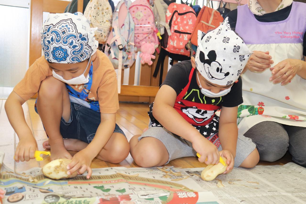 今日は、保育園の畑で摂れた夏野菜を使ってカレー&ピザパーティーをしました🍛🍕