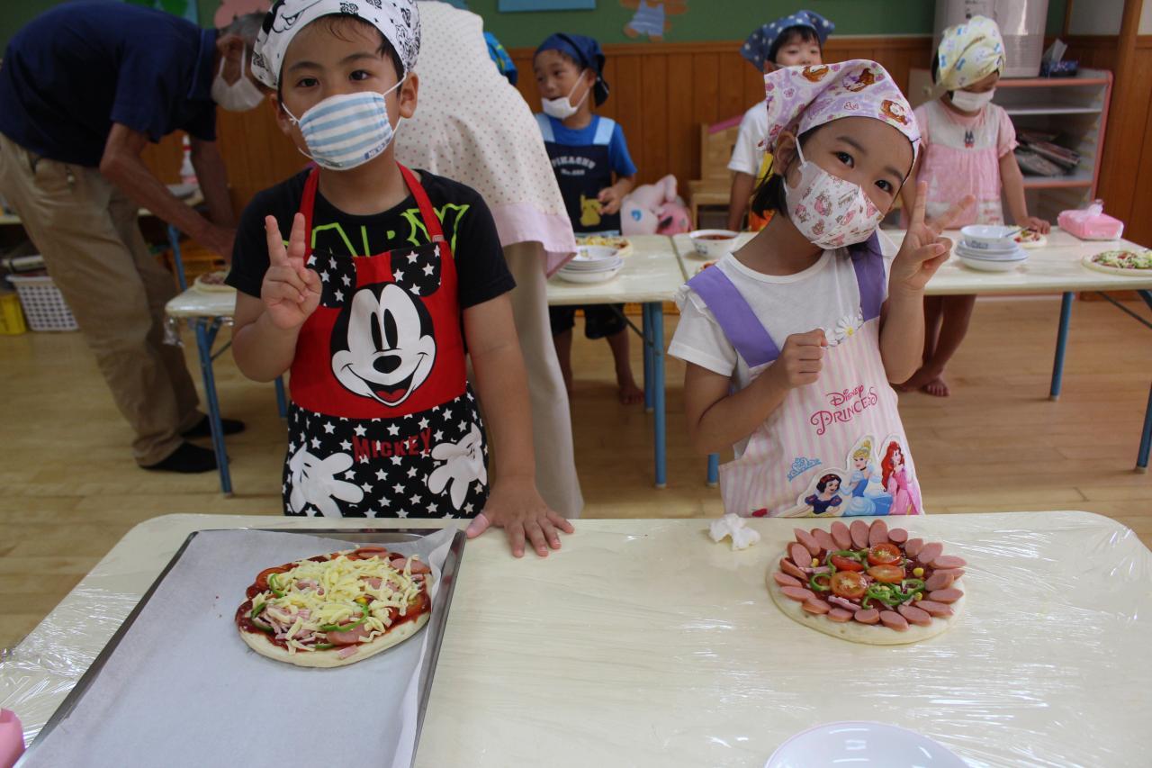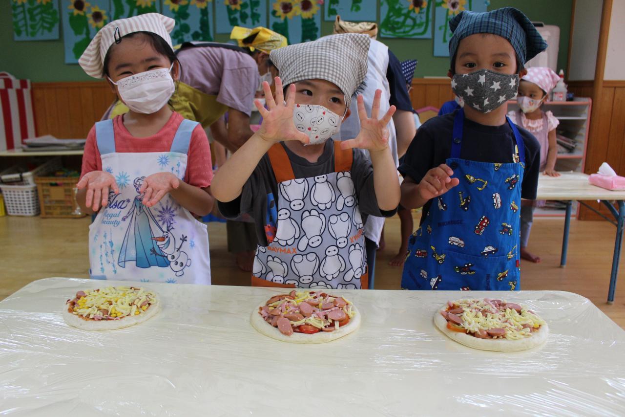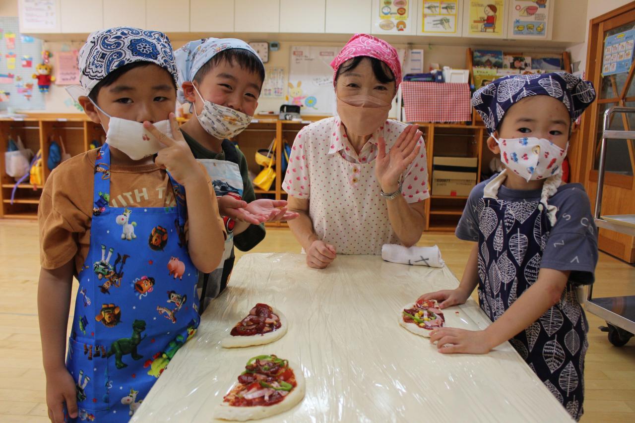 皆が切ってくれた野菜やトッピングしてくれたピザは、調理の先生に仕上げをお願いしました😄