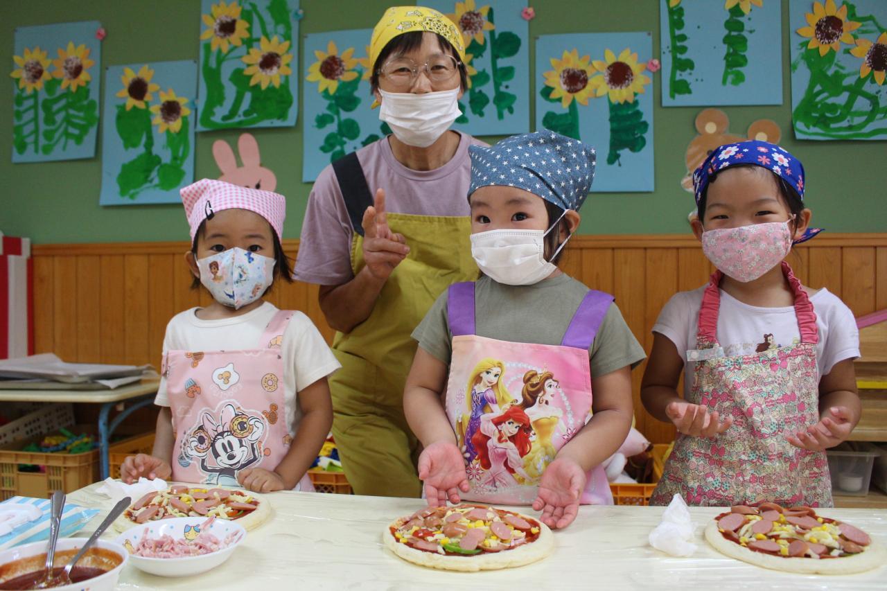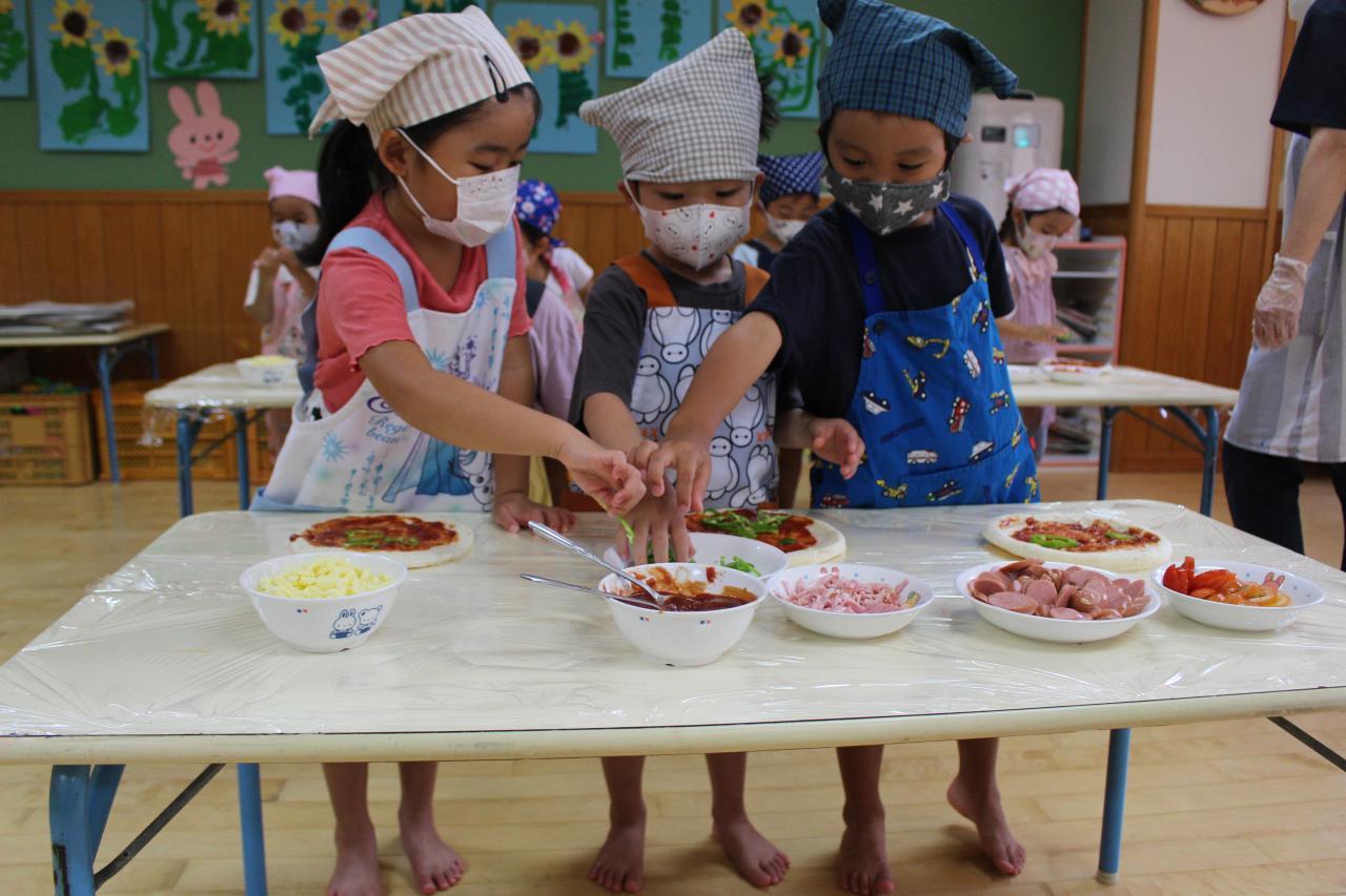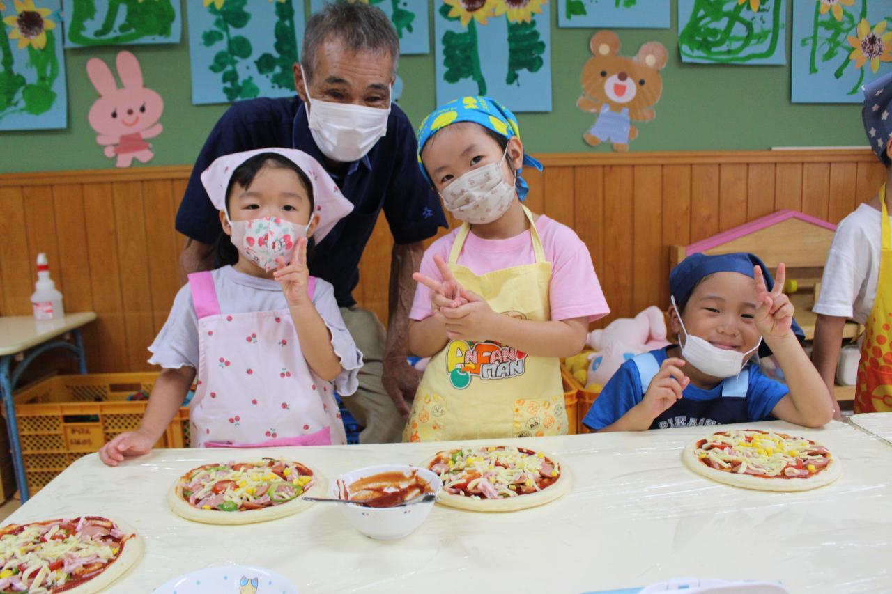 皆が切ってくれた野菜やトッピングしてくれたピザは、調理の先生に仕上げをお願いしました😄