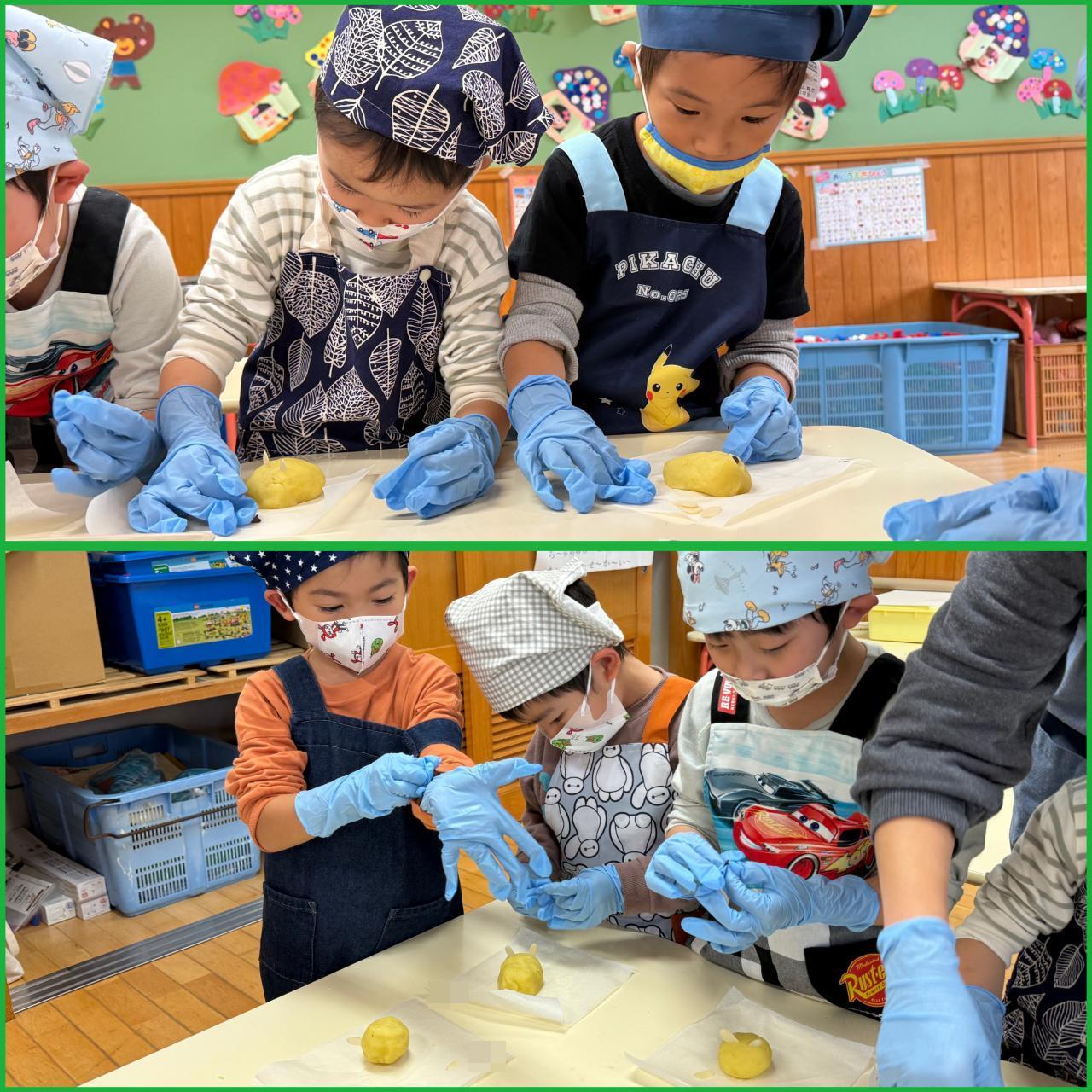 朝からスイートポテト作りを楽しみにしていたまつ組さん。上手に形を作って、可愛いウサギさんスイートポテトが完成しました🥰