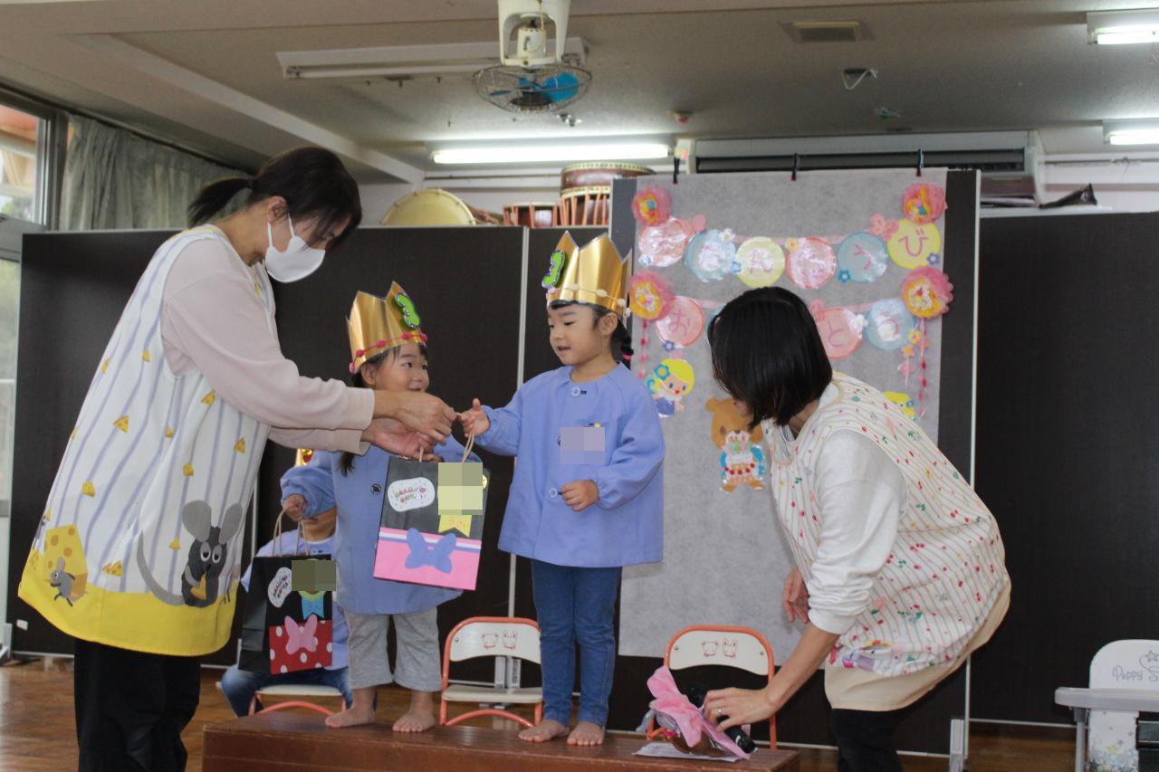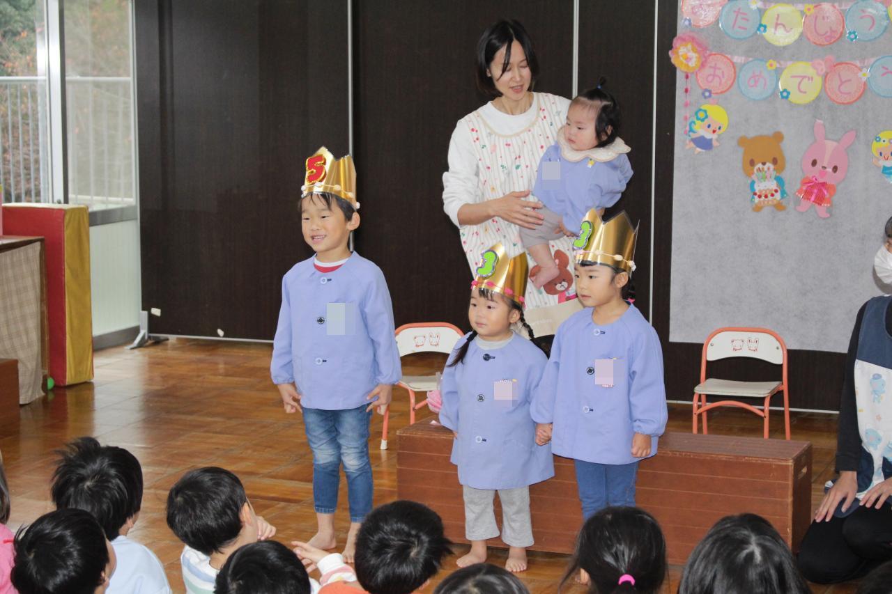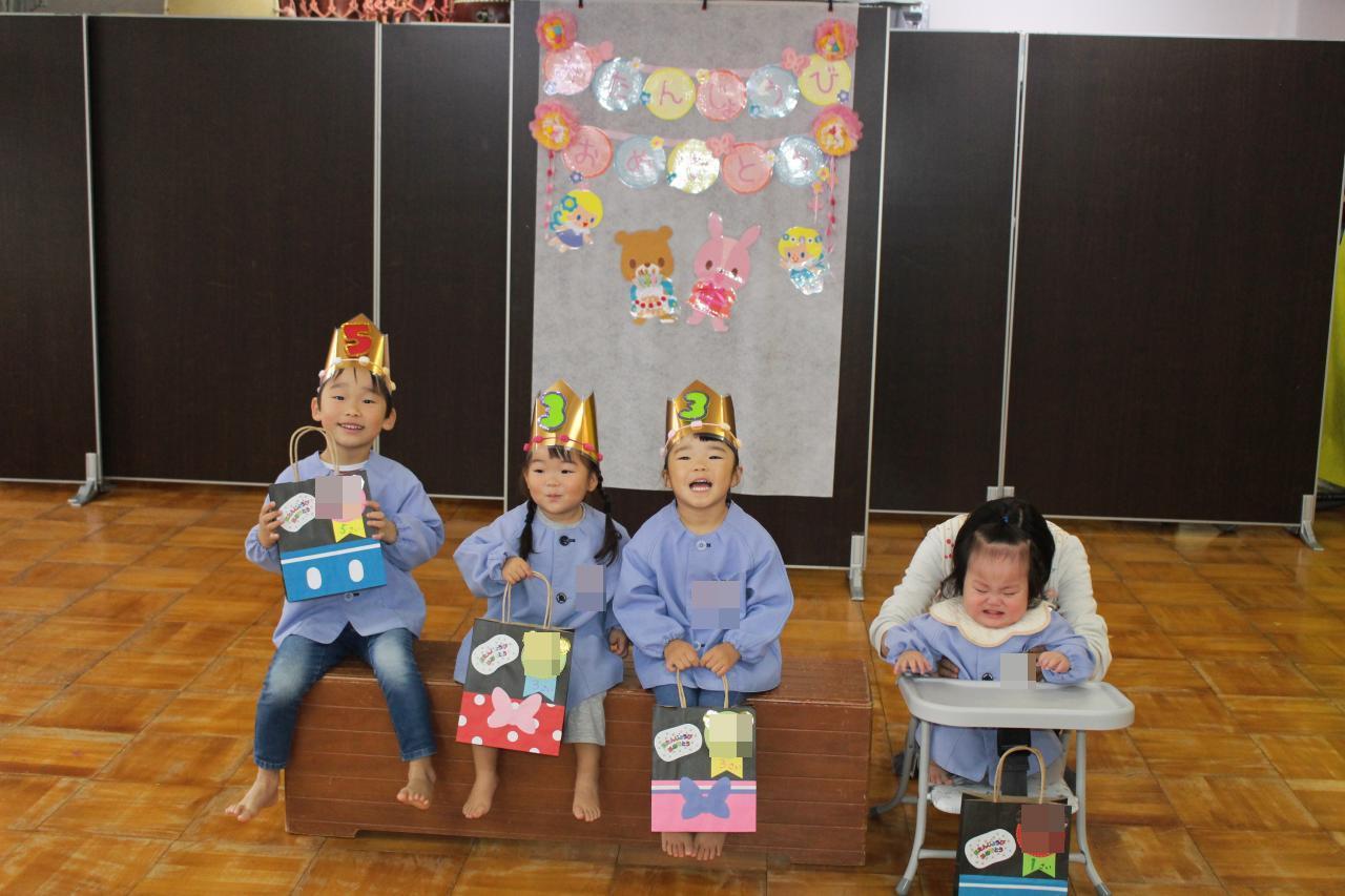 今月はたんぽぽ組1名、うめ組2名、まつ組1名の計4名のお友達をお祝いしました🍰