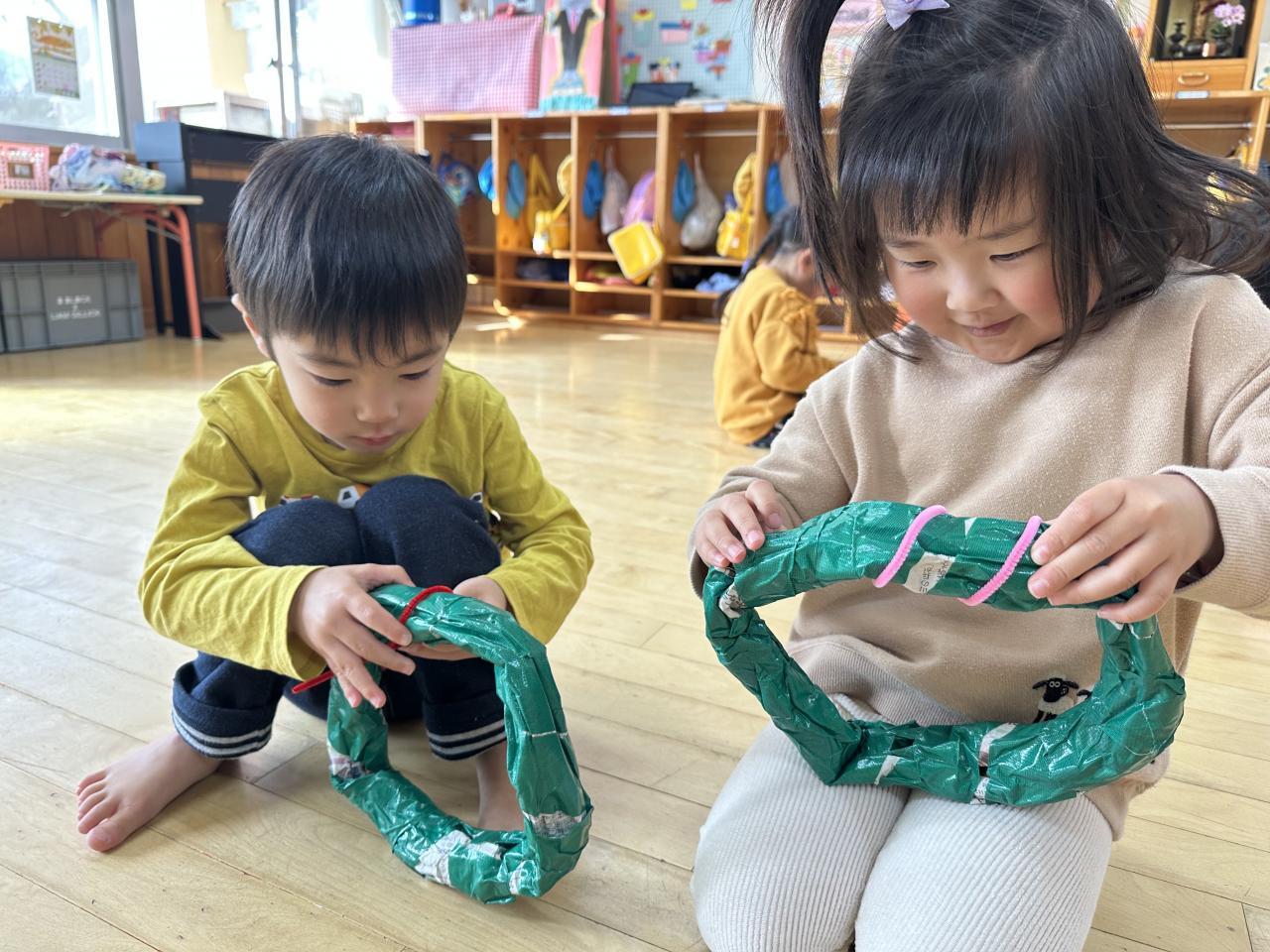 じゃんけんして勝ったらサンタさん、負けたらトナカイになって、2人組で楽しみました😊