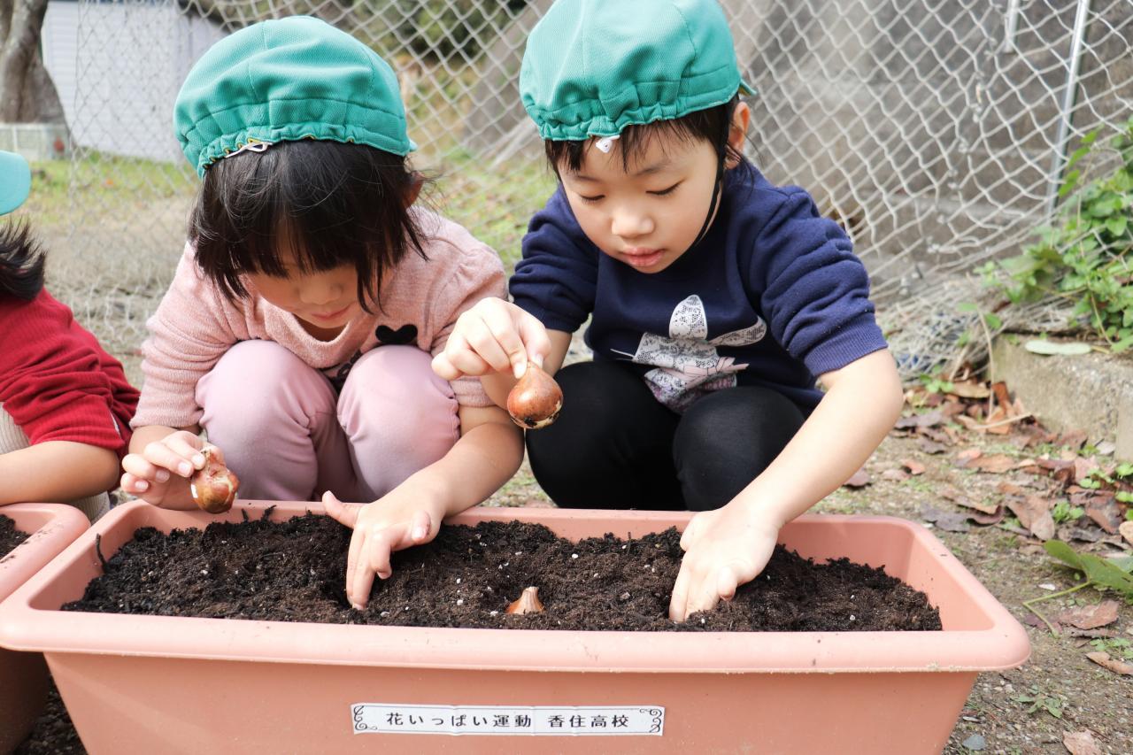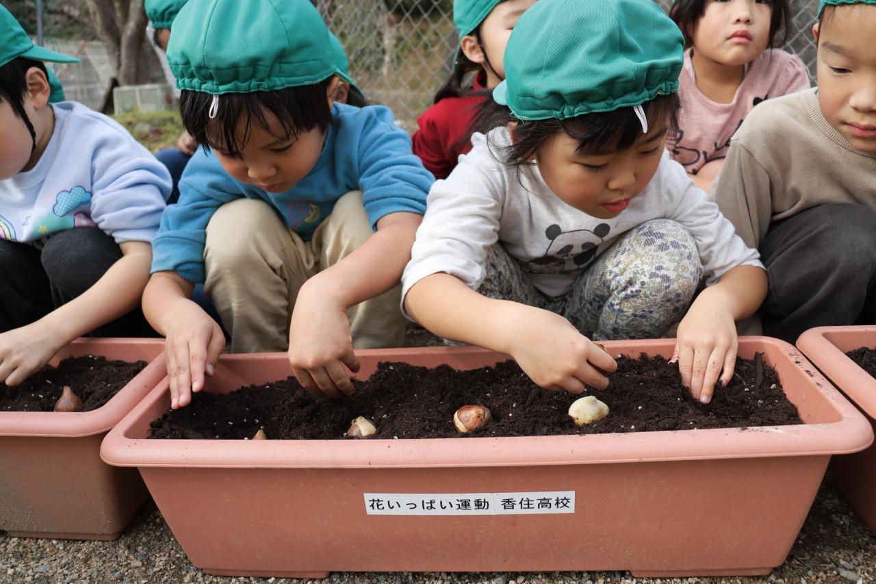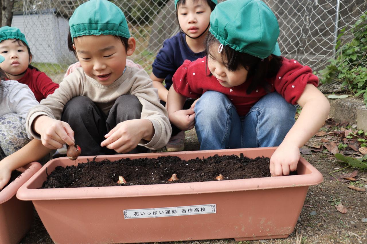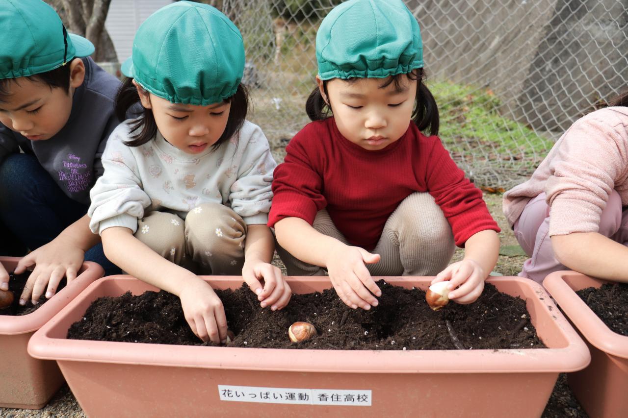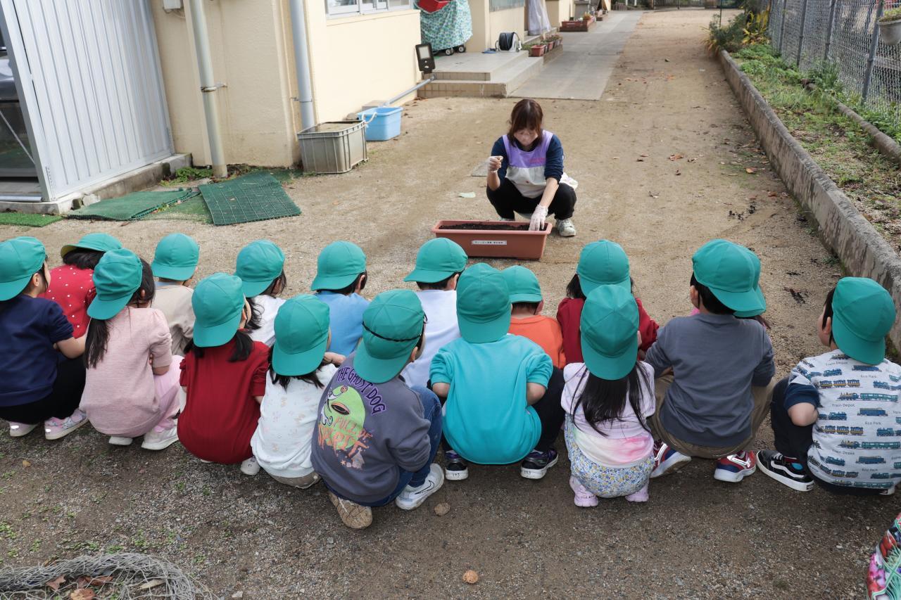 お手本を見た後は、いざ実践!優しく土をかけてあげていました☺️ 皆が幼稚園になる頃には元気なチューリップが咲いてくれるといいね!