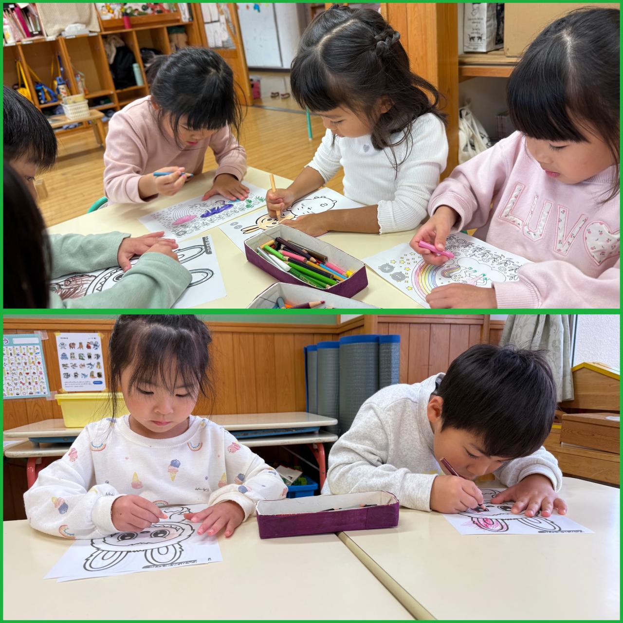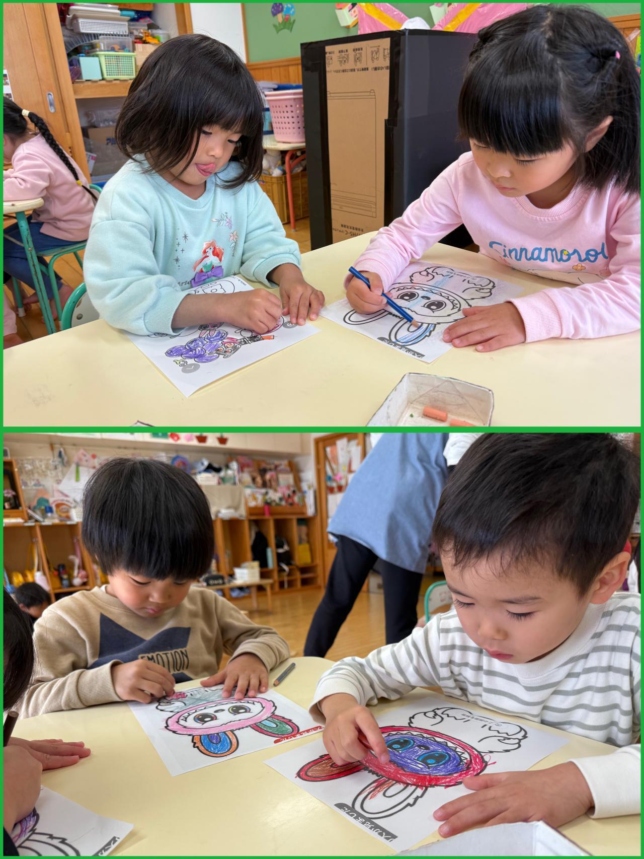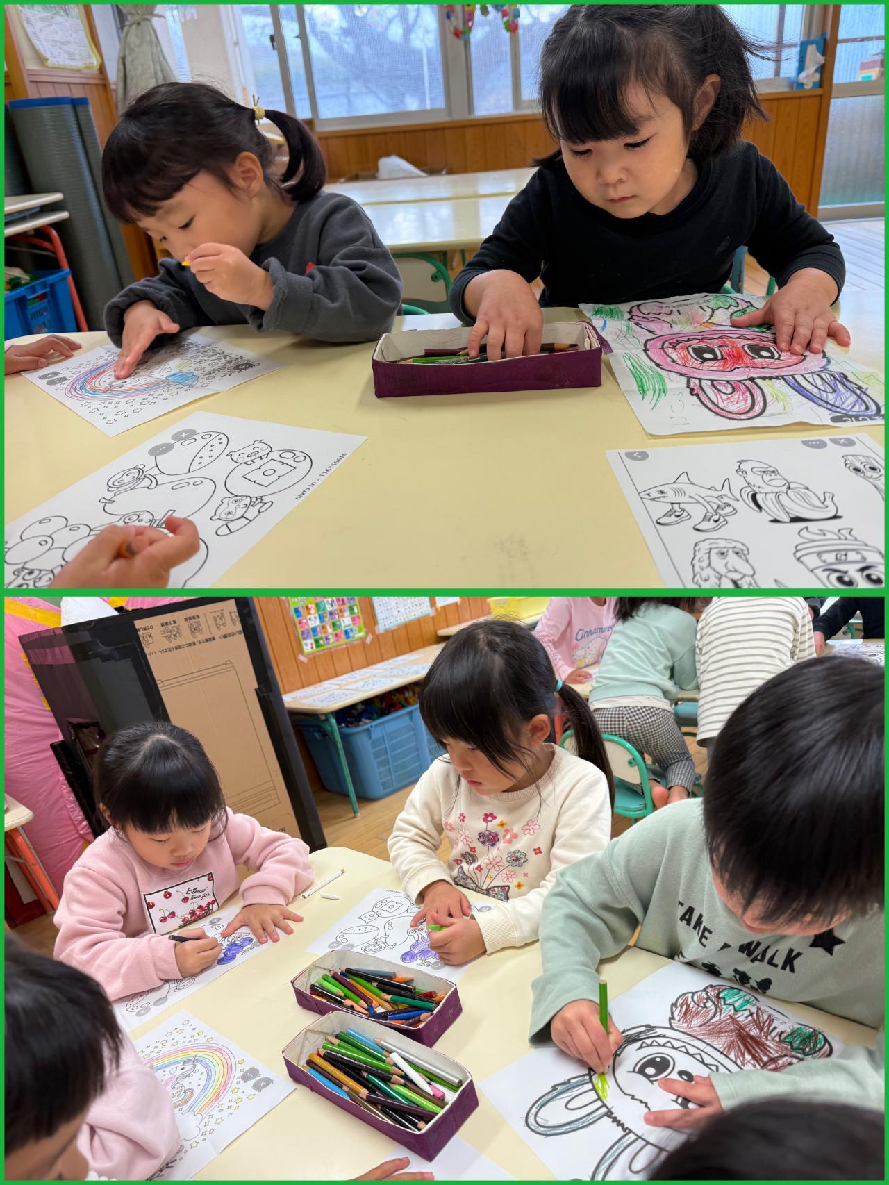 そんな中、まつ組ブームになっているのが塗り絵!たくさんのお友達が長い時間集中して、塗り絵を楽しんでいます♪