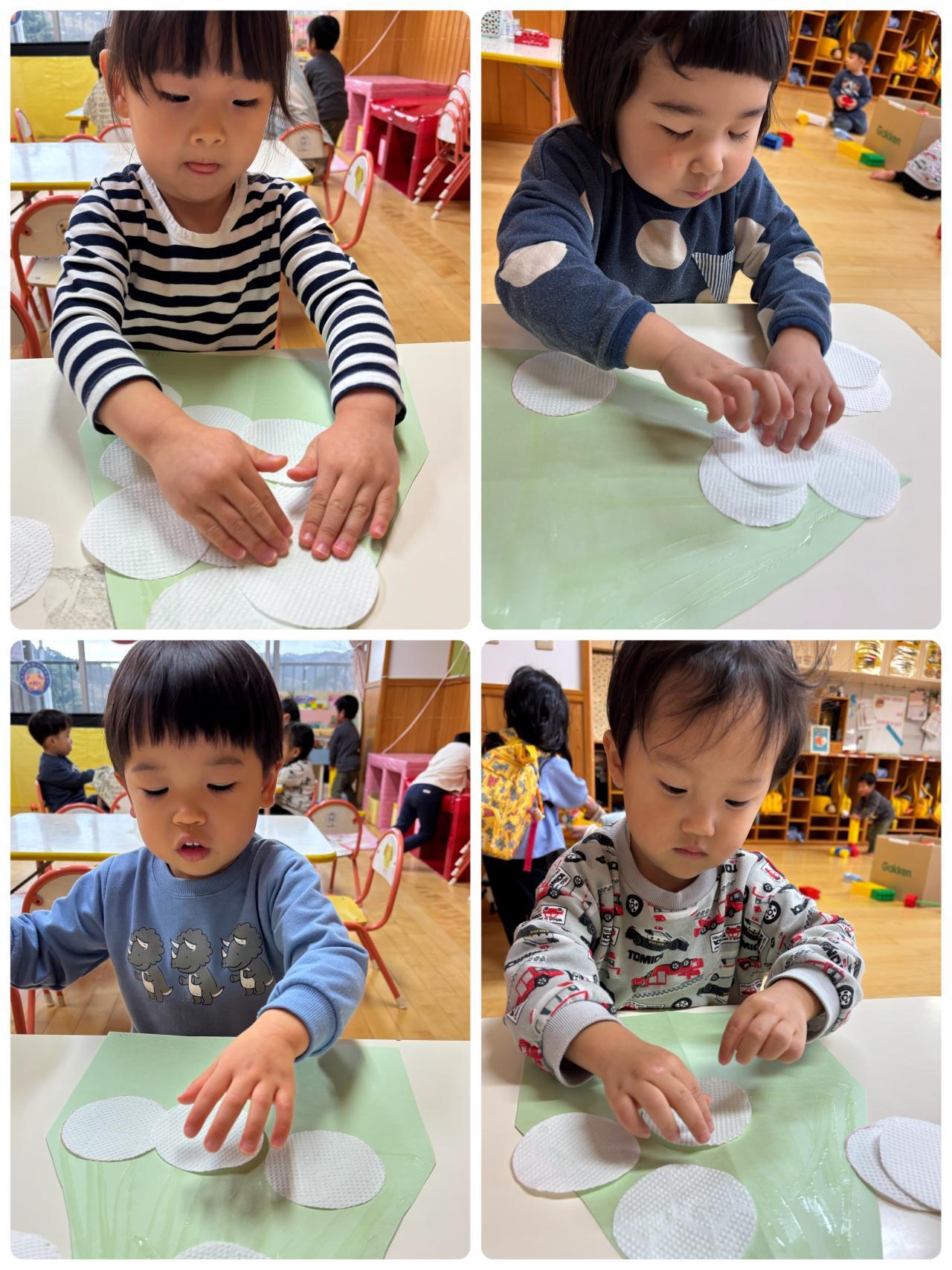 まず、画用紙に丸く切ったキッチンペーパーを貼っていきます🙌🏻